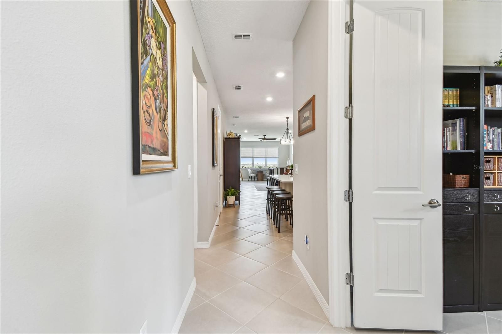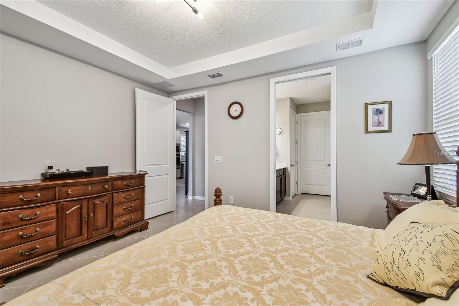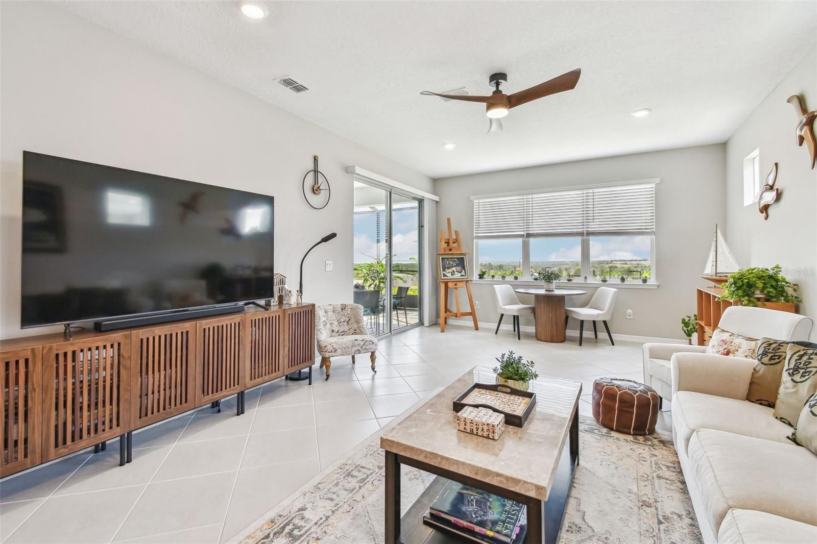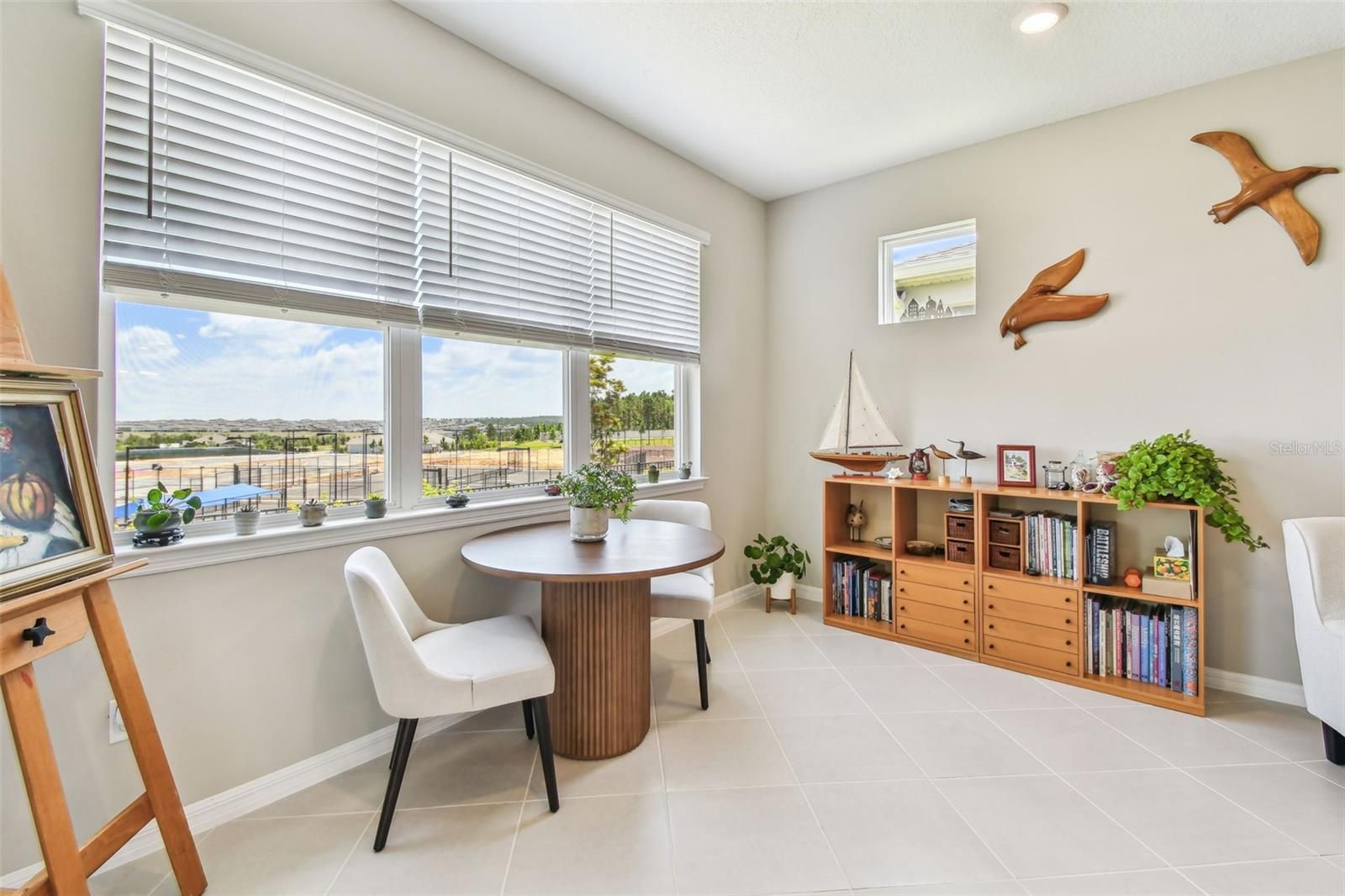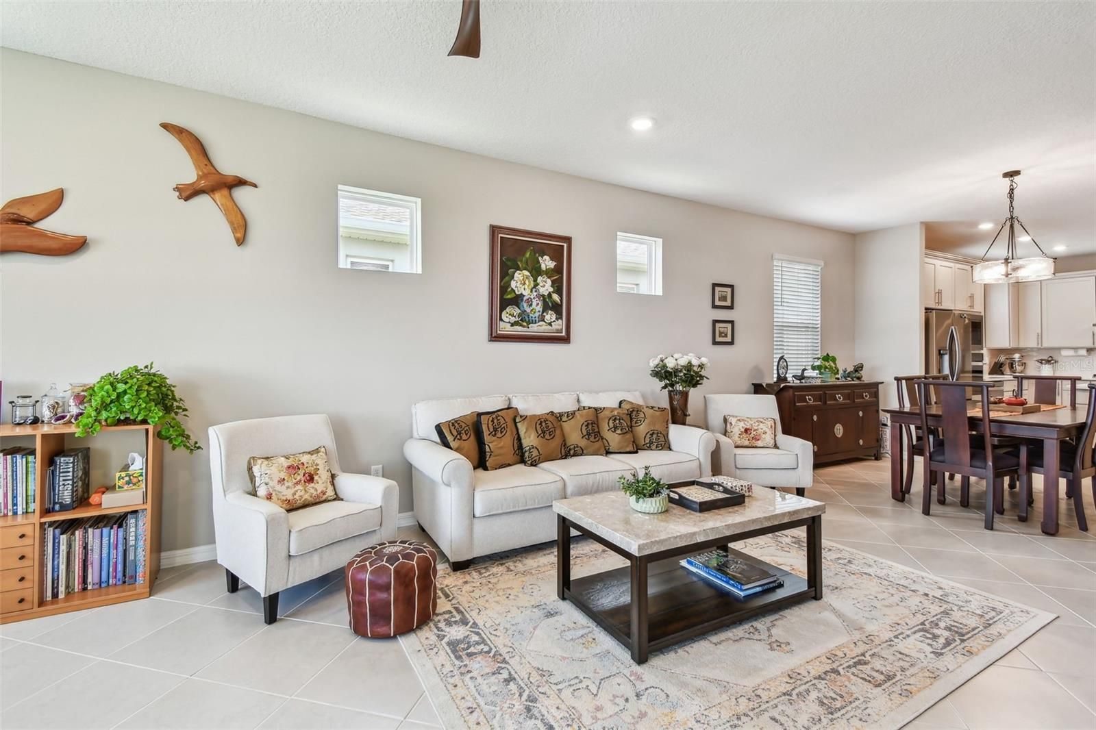 OWNERS MOTIVATED!!! Welcome to one of the most STUNNING VIEWS in all of Del Webb Minneola! This gorgeous Contour model is LOADED with upgrades and located in one of the best lots in the neighborhood!!! With NO REAR NEIGHBORS on a CUL DE SAC, this home is located on one of the highest points in the community and has clear views of LAKE APOPKA from your backyard! From the moment you drive up, you are greeted with beautiful curb appeal. The stone on the garage and the wood trim accents around the roof line and entry way bring about elegance! The glass front door brings about so much natural light from the covered porch! Inside you'll appreciate the high ceilings, 8ft doors, blinds, and extended tile floors throughout! NO CARPETS!! To the right by the entrance is a beautifully decorated office/flex room with extra windows to enjoy the space, which is complete with french doors. The GOURMET KITCHEN features upgraded Frost cabinets with crown molding, quartz countertops, a beautiful tile backsplash, and upgraded appliances. The dining space is very spacious and overlooks the OVERSIZED gathering room (extension adds an additional 10ft of living space!) You'll love all the natural light from the box windows and large triple window overlooking the vistas. The primary bedroom features a tray ceiling and modern light fixture as well as a double window overlooking the lanai. The ensuite primary bath is stunning. You'll be drawn to the shower featuring upgraded tile to the ceiling with a transom window, upgraded shower head, built in seat, and a frameless glass enclosure. It's like your very own spa at home! There's also tons of counter and storage space in the vanity cabinets with quartz countertops. The secondary bedroom is also spacious and has great storage space. The guest bath comes with a tiled tub/shower, upgraded shower head, and cabinets with quartz countertops as well. The laundry room has an upgraded laundry package adding beautiful cabinets for added storage and a polished look. Outside on the EXTENDED covered lanai and cage you can enjoy the incredible view of Lake Apopka and the Orlando skyline in the distance. The lanai has prewiring/preplumbing for an outdoor kitchen to really transform the space into a backyard oasis! The irrigation system covers both the front and rear yards (builder no longer offers it in the rear), making lawn care effortless. The home comes complete with gutters, a water softener system, and whole house water filtration system installed! This is BETTER THAN NEW!!! WASHER / DRYER Included! The community covers high speed internet, streaming channels, and all landscaping and irrigation included with the HOA fees! Not to mention some of the best amenities in Clermont/Minneola to enjoy!! There is even an onsite restaurant coming soon once the clubhouse is finished. Wondering what to do? Reach out to the onsite Lifestyle Director to help you plan your next activity schedule! It's a great place to build community! Outside the community you'll be able to ride your GOLF CART to shopping, restaurants, and MORE with the new commercial plaza being built just south of the community, including the highly anticipated CROOKED CAN brewery and food hall! The brand new Minneola Hospital is also minutes down the street. To secure the BEST DEAL in Del Webb Minneola, schedule your private tour today!