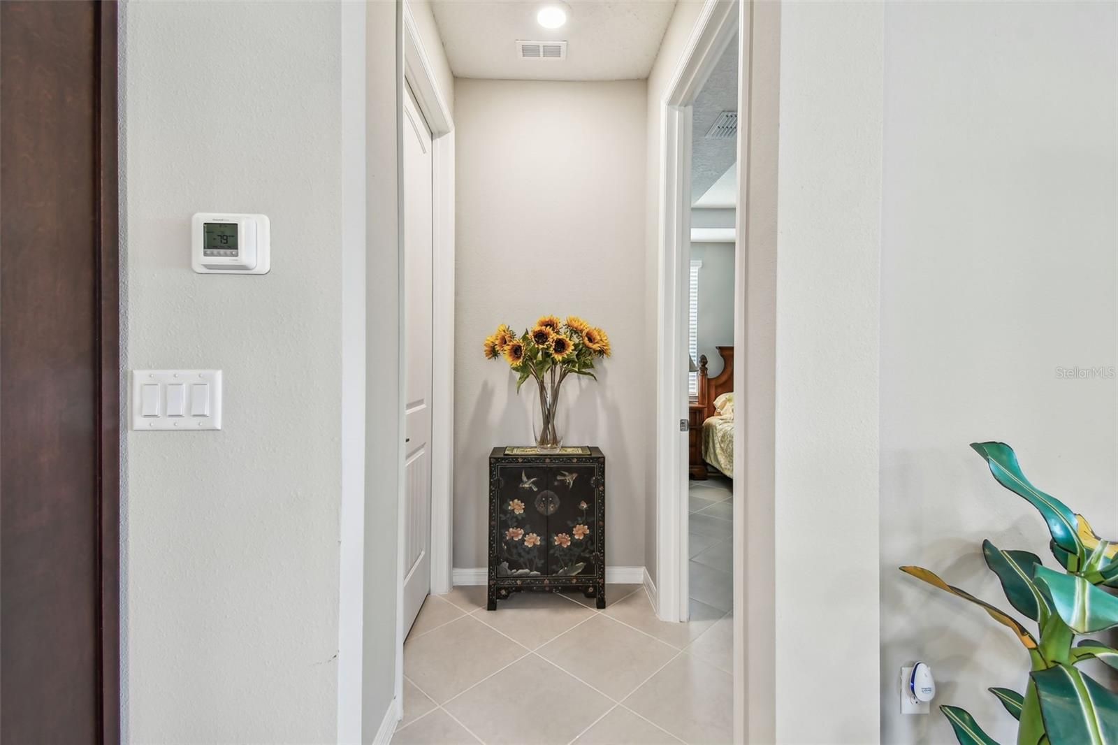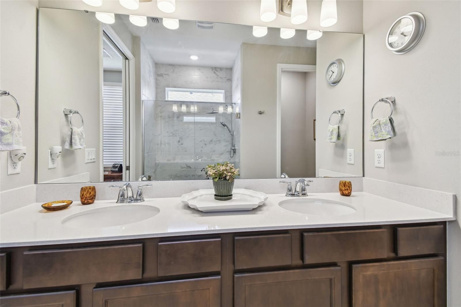 - Ceiling Fan(s), High Ceilings, Kitchen/Family Room Combo, Open Floorplan, In-Wall Pest Control, Main Level Primary, Split Bedrooms, Stone Counters, Thermostat, Walk-In Closet(s)