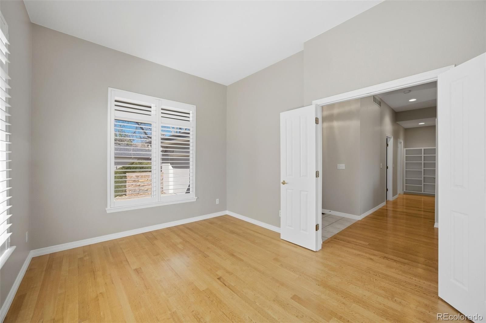 Welcome to this stunning ranch-style home in Littleton's desirable Riverwalk Community! Nestled directly alongside the Littleton Golf Course, this property is perfect for golf and outdoor enthusiasts. Step inside to find elegant hardwood floors, freshly painted, vaulted ceilings, and an abundance of natural light that enhances the open-concept living area. On cool Colorado evenings, enjoy the warmth and tranquility provided by the gas fireplace. The inviting layout includes an open kitchen with stainless appliances,eating space and a pantry. Opening up to the family room and dining area that overlooks the picturesque golf course, making it an excellent space for entertaining family and friends. The spacious primary suite features a walk-in closet and a luxurious five-piece en-suite bathroom, complete with a relaxing soaking tub. For those who work from home or need a creative space, there's a dedicated office with French doors and a functional desk area. The second bedroom, adorned with hardwood floors, just steps away from a secondary full bath, making it a perfect guest retreat. The partially finished basement offers a third bedroom and 3/4 bath, along with a versatile space that can be tailored to your needs—whether as a second living area, craft room, or extra storage. Experience low-maintenance living within a community that boasts a beautiful clubhouse, outdoor pool, sauna, and hot tub. Enjoy the convenience of no yard work or snow shoveling, allowing you to focus on more enjoyable activities.