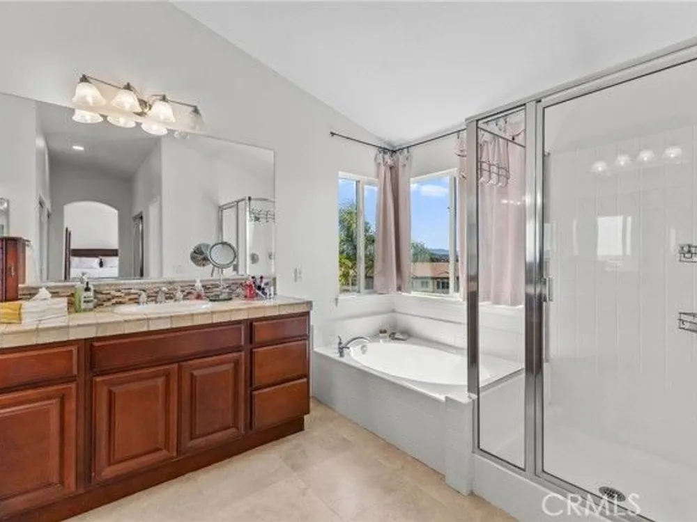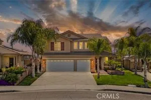 This move-in ready home located in a highly sought after area of Menifee. With over 3,100 square feet of living space and three-car garage this home offers plenty of space. As you enter the front door you are greeted with a two-story foyer. The engineered Harwood as you enter gives the family and dining rooms a touch of elegance. The large main bedroom upstairs offers an en-suite bath with dual sinks, a generous soaking tub, a shower, and a spacious walk-in closet. Additional guest bedrooms, a guest bath, and an oversized bonus area finish out the second floor. The convenience of the interior laundry room with plenty of cabinets and a utility sink complete the well-designed layout. The home is situated in a great location. This home boasts a prime location just outside Menifee Lakes Golf Course, offering easy access to the new shopping center, Loma Linda Medical Center, restaurants, and more.