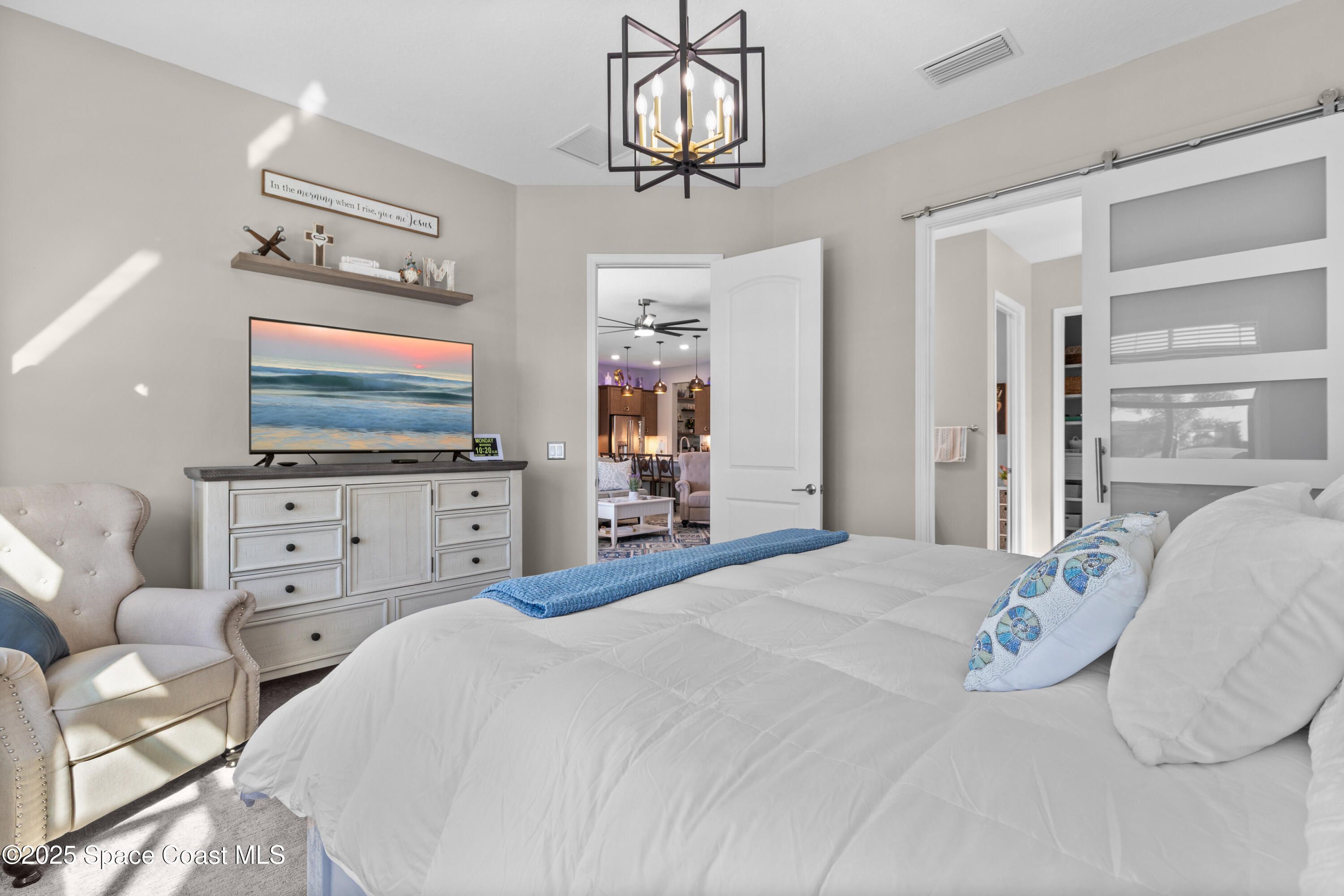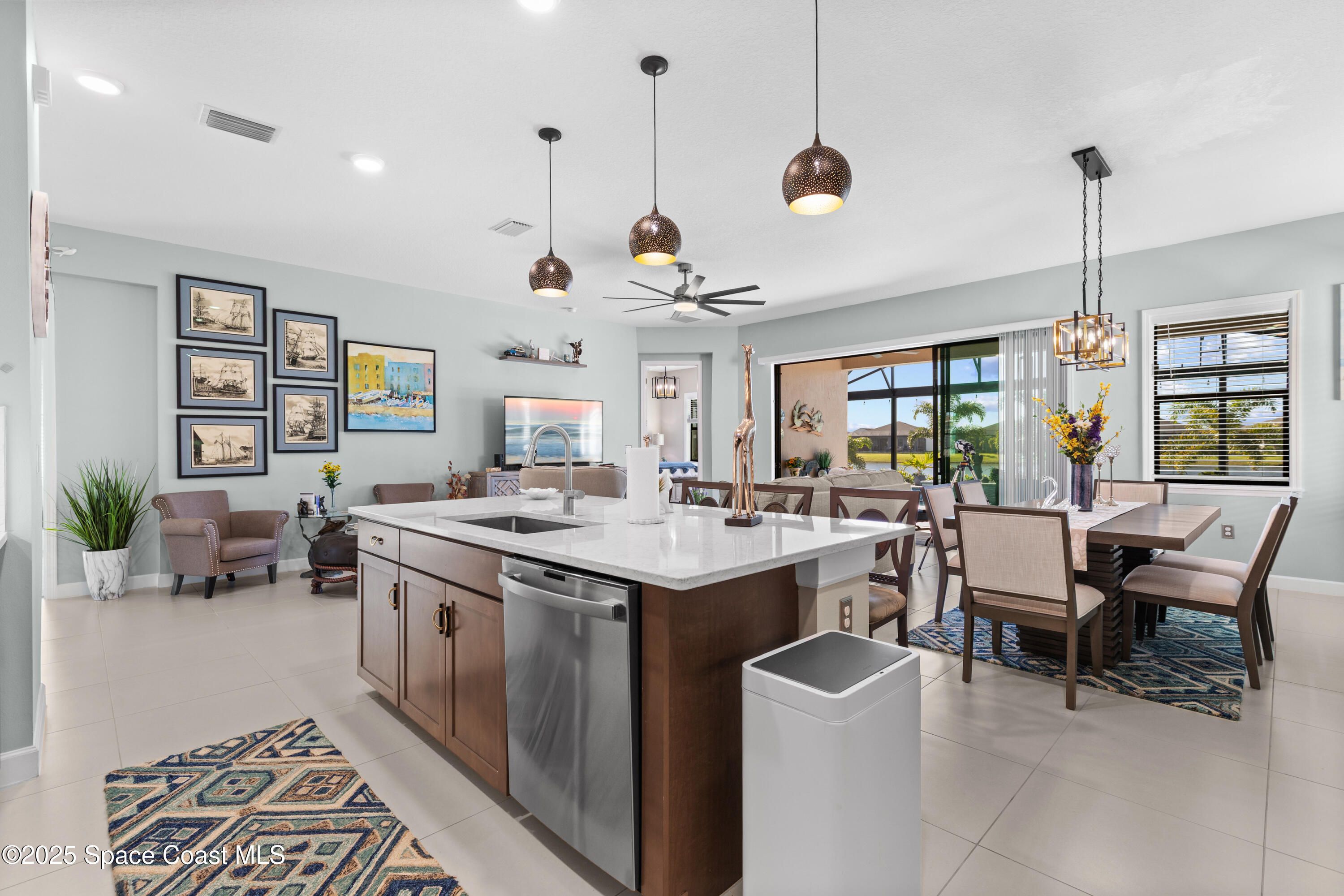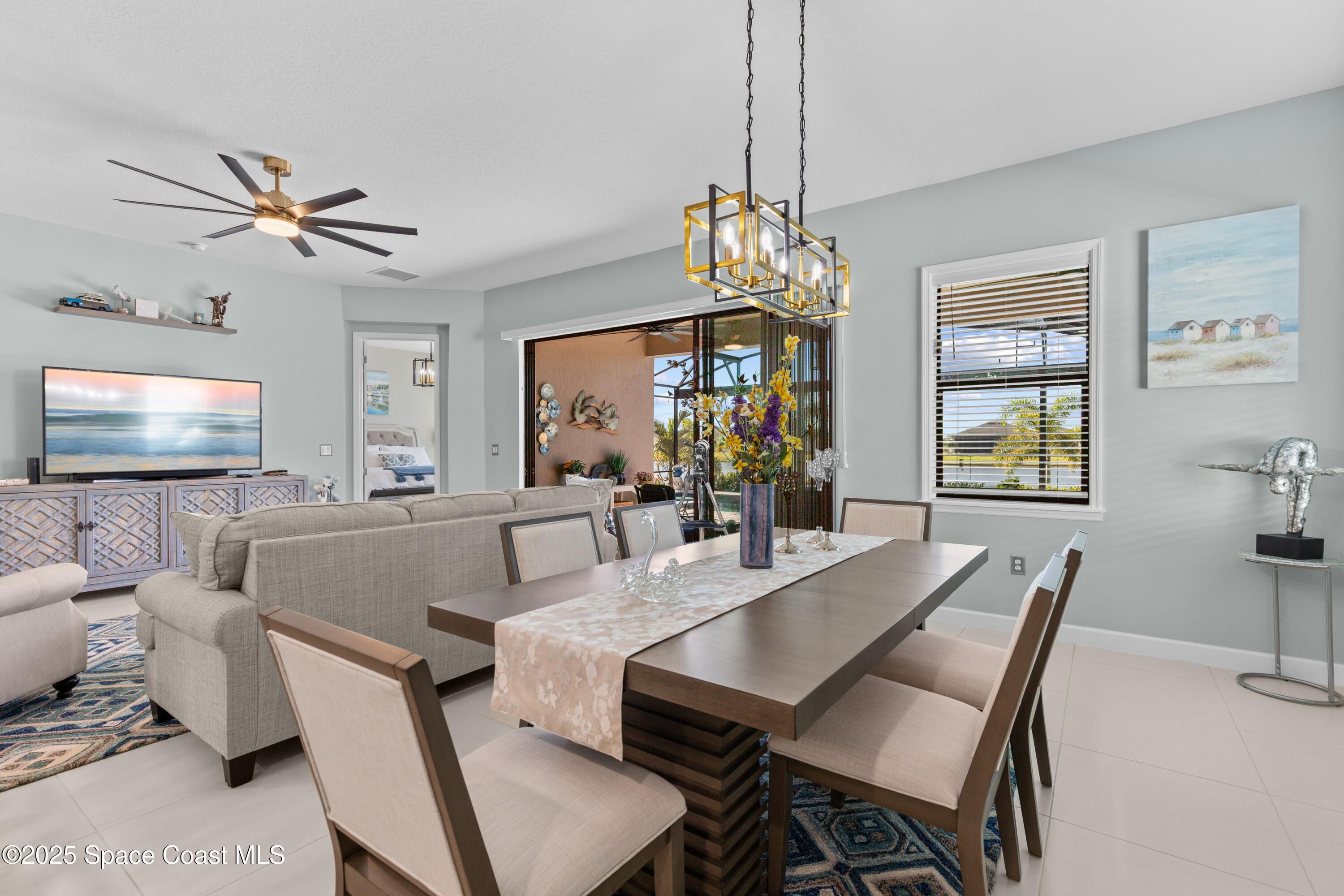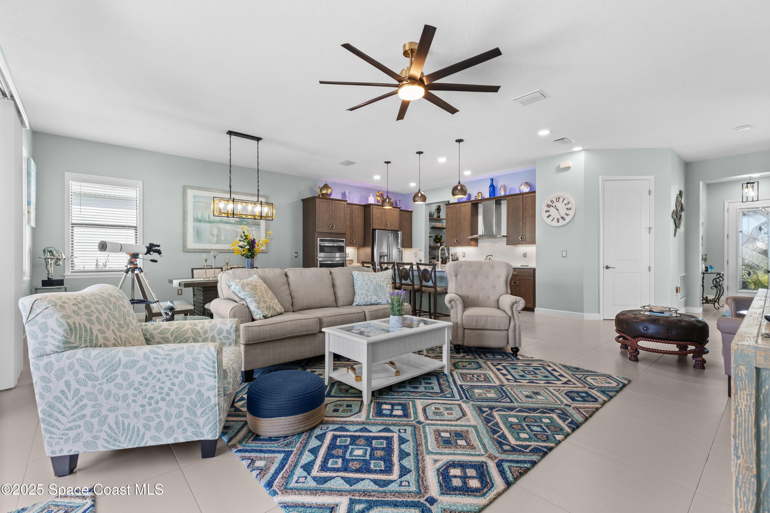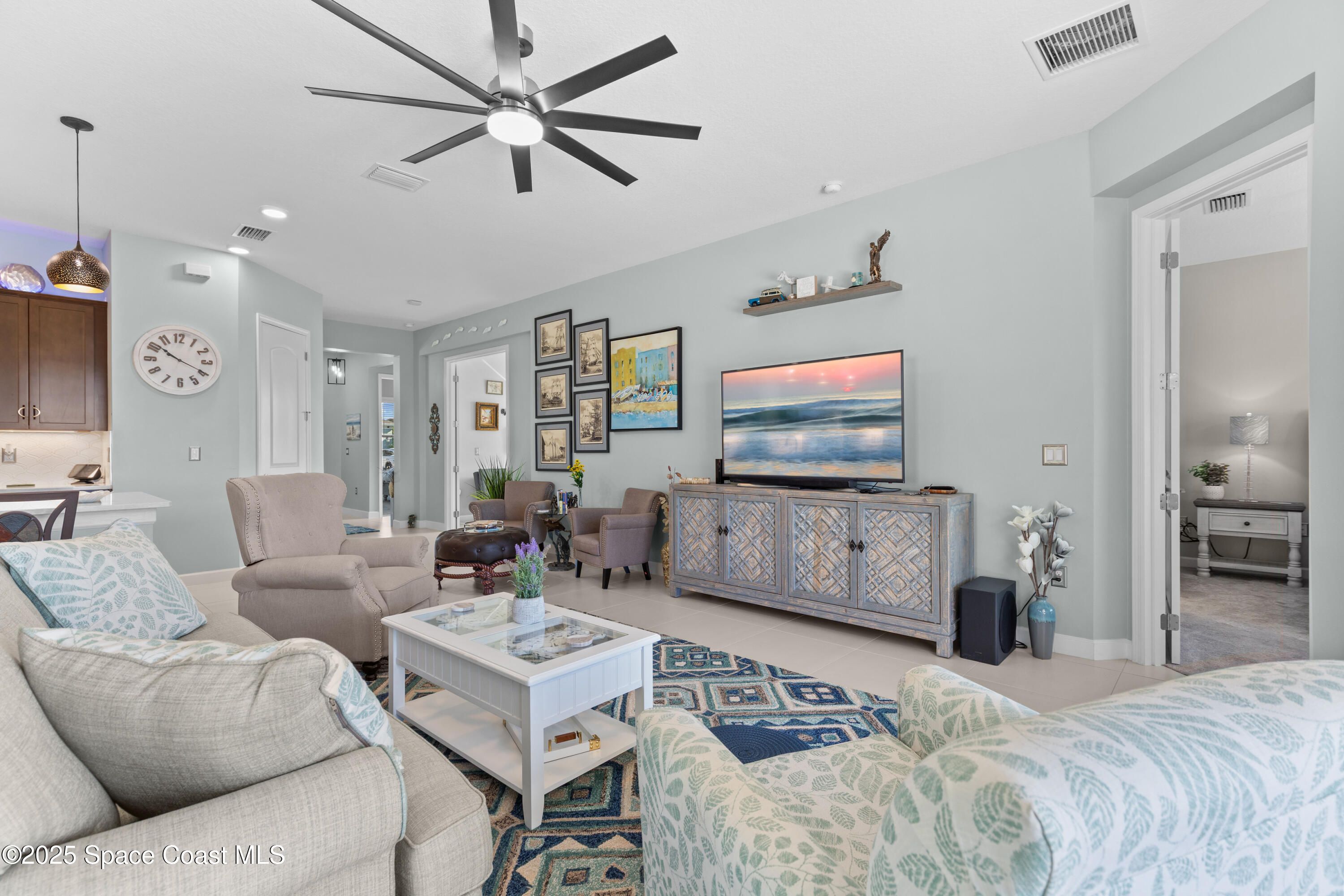 Discover luxury and tranquility at 2768 Millennium Circle, a stunning partially furnished lakefront retreat in Viera's premier 55+ Bridgewater community. This 2BR/2BA + bonus home (built 2020, upgraded 2024) showcases open-concept living, gorgeous sunset lake views, and a chef's kitchen with a brand-new refrigerator. 2024 enhancements include a screened saltwater pool with a paver deck, smart app controls, waterfall, jacuzzi, and heating system; all-new professional tropical landscaping; interior and exterior paint and lighting; irrigation system; and epoxy-coated garage floor. The designer primary suite features an upgraded fully tiled shower and custom walk-in closet. Stylish upgrades and partial furnishings make this home truly turnkey. Bridgewater residents enjoy resort-style living with pickleball, tennis, clubhouse, fitness center, theater, and a sparkling resort style community pool.
