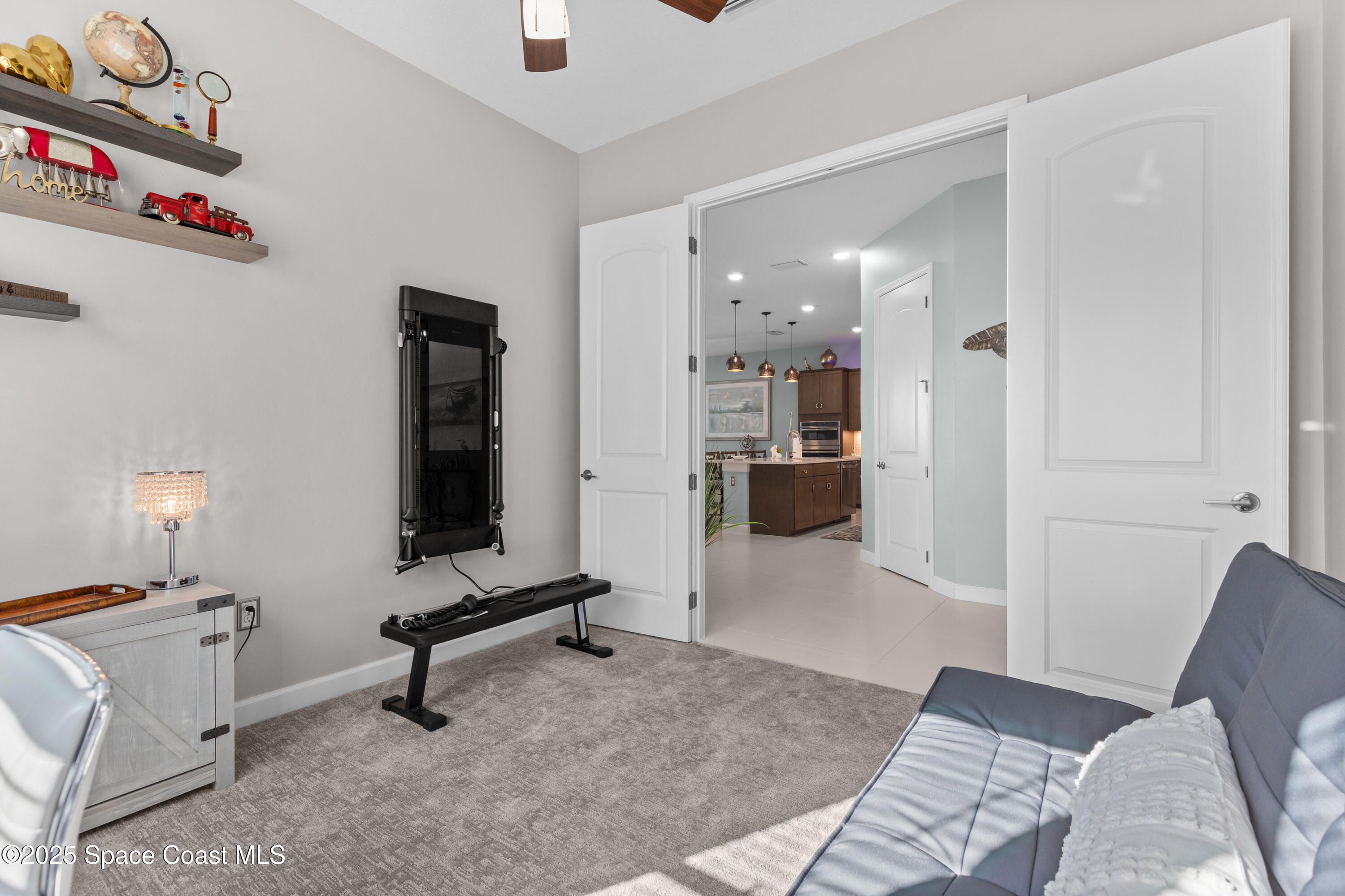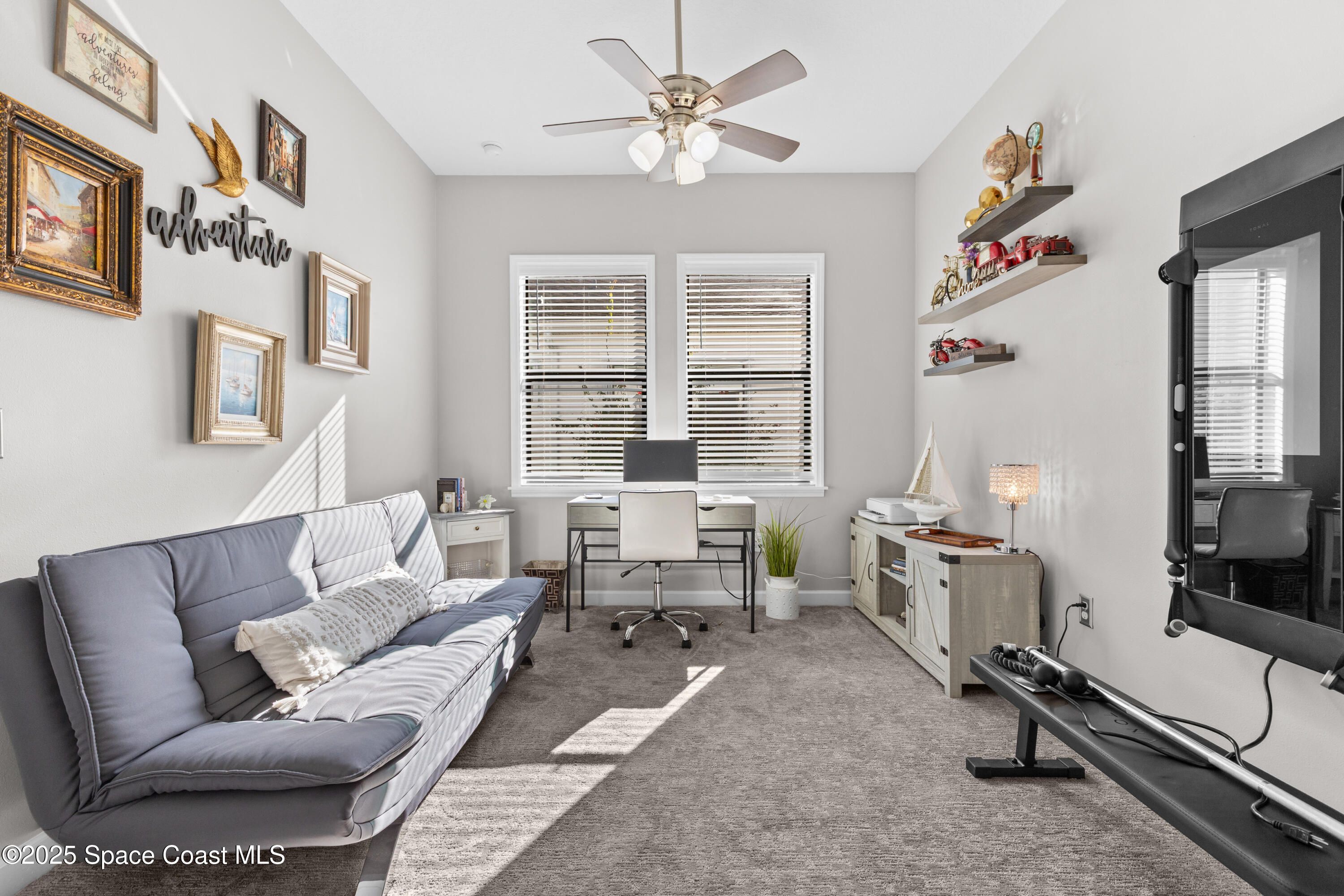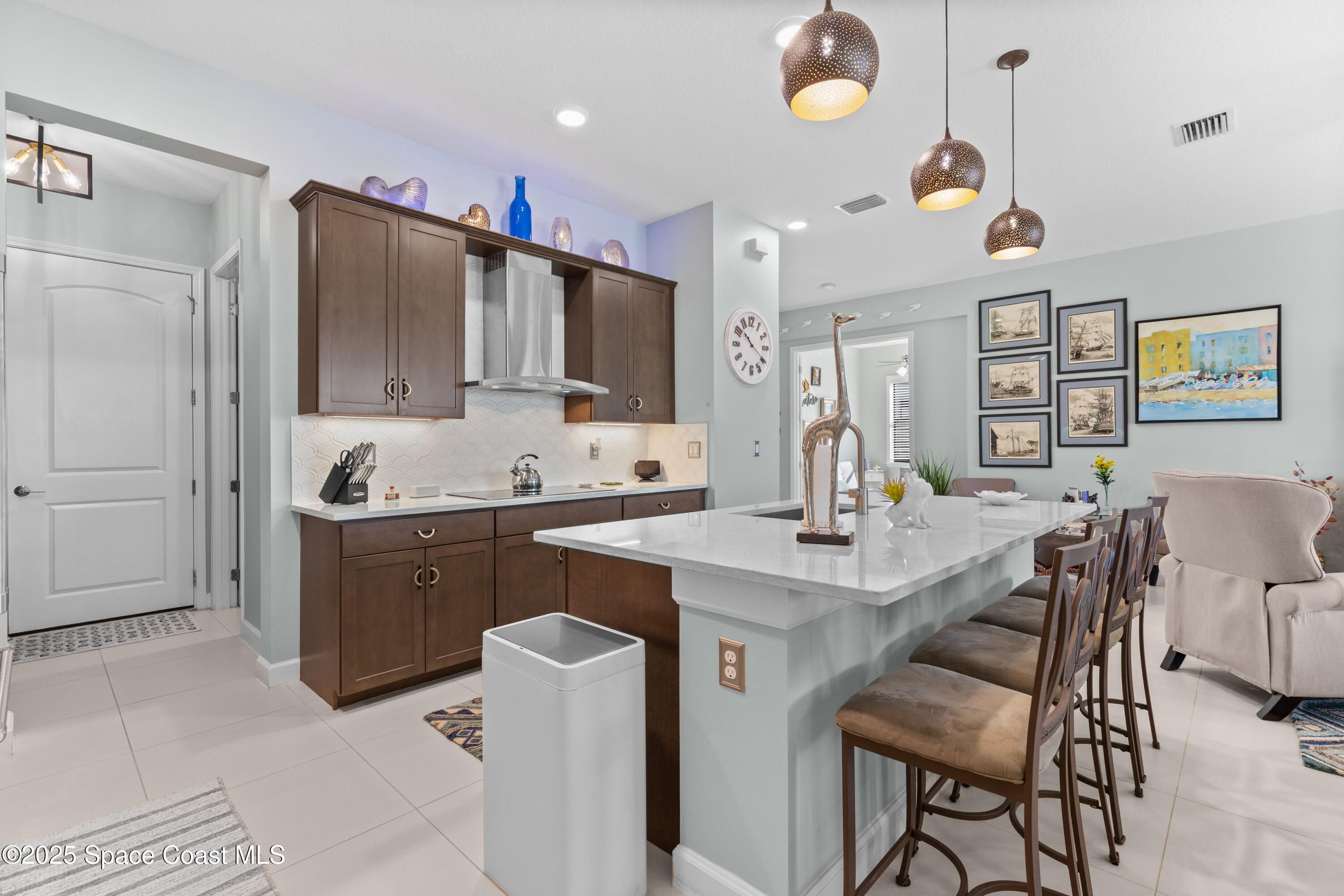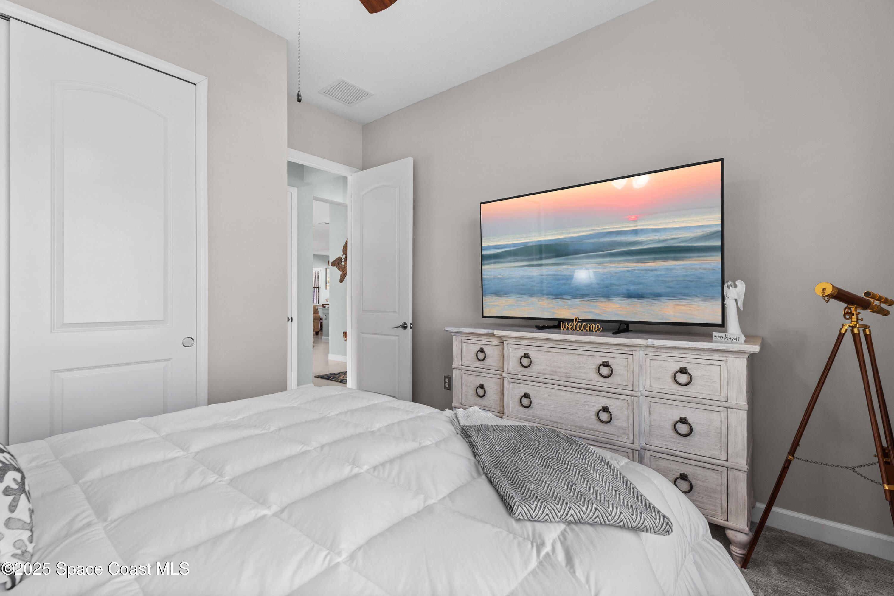 Discover luxury and tranquility at 2768 Millennium Circle, a stunning partially furnished lakefront retreat in Viera's premier 55+ Bridgewater community. This 2BR/2BA + bonus home (built 2020, upgraded 2024) showcases open-concept living, gorgeous sunset lake views, and a chef's kitchen with a brand-new refrigerator. 2024 enhancements include a screened saltwater pool with a paver deck, smart app controls, waterfall, jacuzzi, and heating system; all-new professional tropical landscaping; interior and exterior paint and lighting; irrigation system; and epoxy-coated garage floor. The designer primary suite features an upgraded fully tiled shower and custom walk-in closet. Stylish upgrades and partial furnishings make this home truly turnkey. Bridgewater residents enjoy resort-style living with pickleball, tennis, clubhouse, fitness center, theater, and a sparkling resort style community pool.