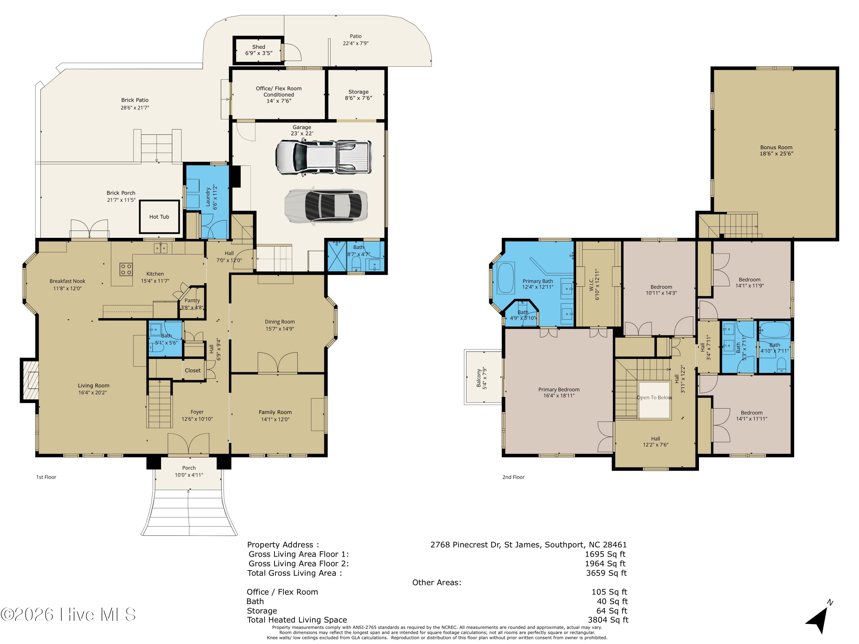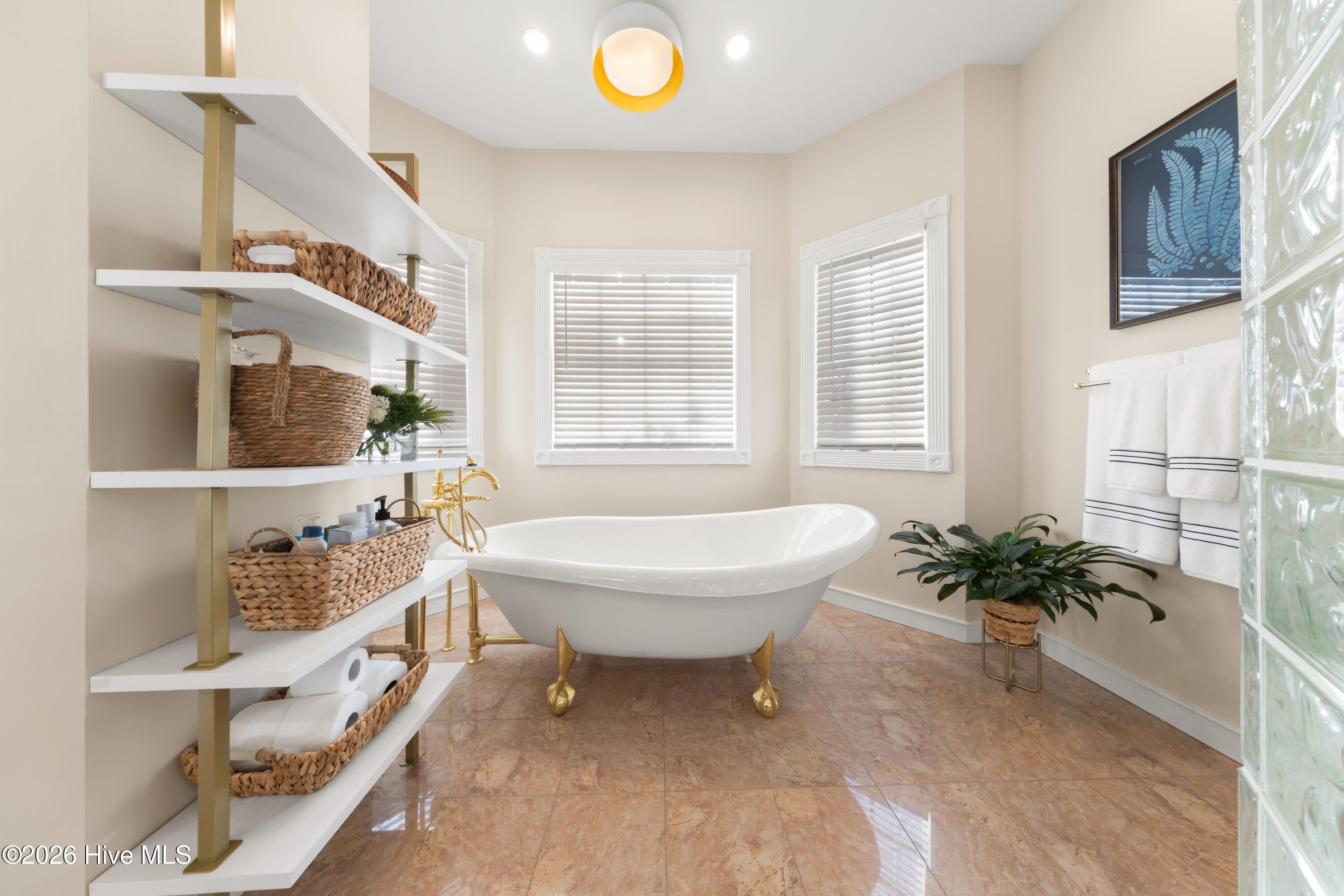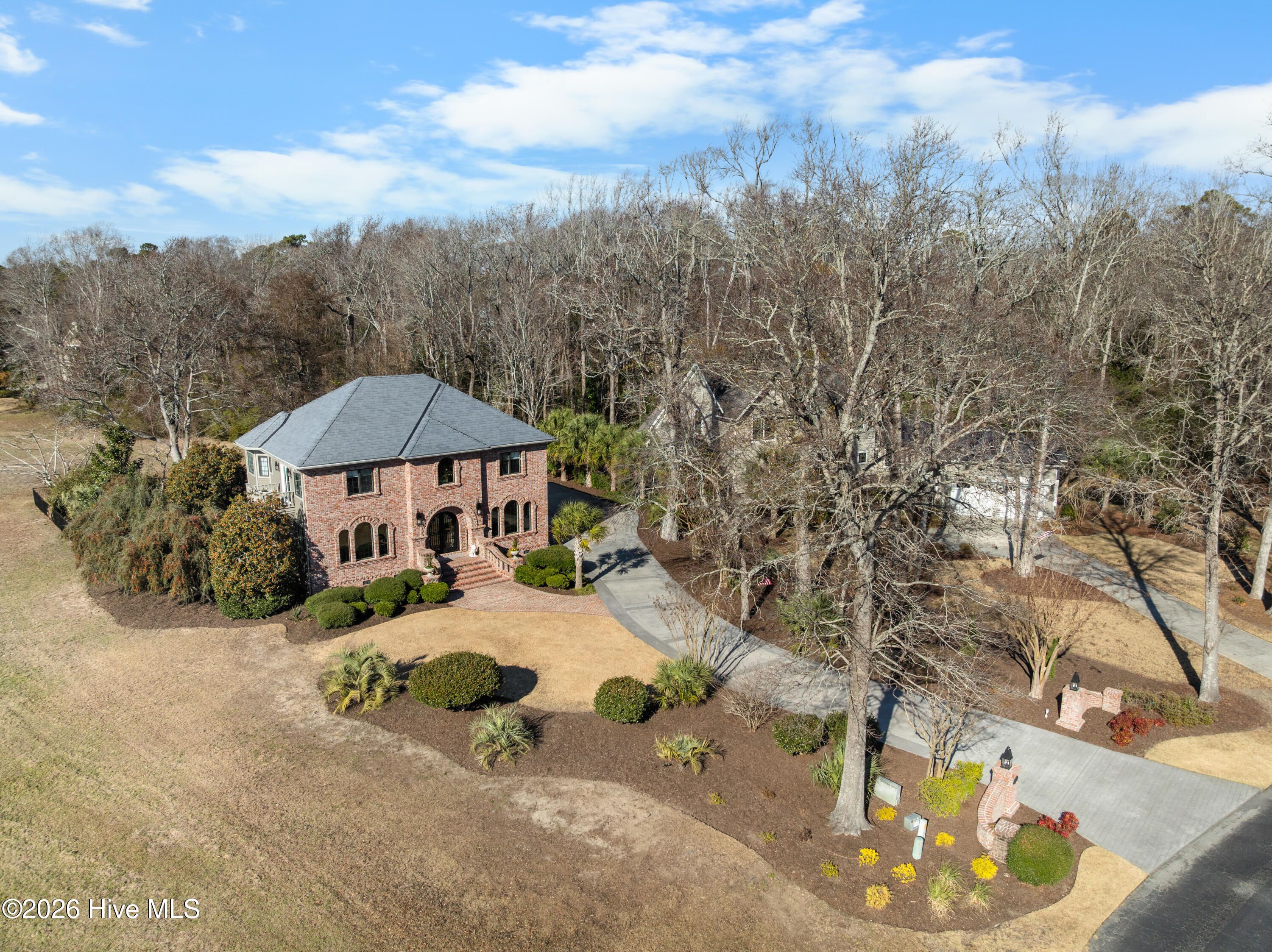 Offered furnished with refined, curated selections, this custom brick masterpiece stands as a true estate on Pinecrest Drive, located directly across from the Intracoastal Waterway. Ideally positioned in a premier second-row setting within St. James Plantation, the home's striking façade features classic masonry, a DaVinci simulated slate roof, and custom wrought-iron doors that create an unforgettable first impression. Inside, the home unfolds with refinished hardwood floors, substantial crown molding, and sun-filled living spaces softened by custom woven wood treatments. The kitchen blends timeless charm with modern convenience, featuring stainless appliances, a decorative feature wall, custom antique pantry doors, and designer lighting. Formal living and dining areas are estate-caliber, while the family room offers thoughtful functionality with brass floor outlets and elevated aesthetics. Retire to the luxurious owner's suite, a private sanctuary featuring a balcony with sweeping views of the Intracoastal Waterway. The spa-inspired bath offers a freestanding claw-foot 'birthday bathtub,' stone flooring, and abundant natural light. A private bonus room provides flexible space for a home office or studio. Outdoor living is effortless with a spacious brick patio, retractable awning, manicured fenced yard, and a brand-new outdoor saltwater hot tub. The garage offers exceptional versatility with a renovated bathroom, office/wine room, and heating. Behind the scenes, the home is mechanically superior with a fully encapsulated crawl space, dehumidifier, and whole-house water filtration. Refined Interiors & Curated no detail has been overlooked in the interior presentation. The rich hardwood floors have been professionally sanded, refinished, and stained to perfection, complemented by substantial crown molding and updated decorative switch plate covers. Practicality meets elegance with tinted front-facing windows that protect furnishings while softening natural light, and brass floor outlets in the family room for seamless furniture arrangement. In the kitchen, the culinary experience is enhanced by a new stainless-steel dishwasher, a professional-grade Delta black faucet, and curated lighting. Distinctive touches, such as custom antique pantry doors and new Emtek French door hardware, artfully blend vintage character with modern luxury. Bed, Bath & Sanctuary The commitment to quality extends to the private quarters. The owner's spa bath has been refreshed with new brass faucets to complement the stone flooring and freestanding tub. Secondary spaces reflect equal care, featuring updated lighting, including a charming shell chandelier in the guest bedroom and new mirrors in the Jack-and-Jill bath, ensuring a cohesive aesthetic throughout the residence. Structural Integrity & Mechanical Peace of Mind Beyond the visual grandeur, extensive structural and mechanical upgrades ensure long-term value and efficiency. The home features a fully encapsulated crawl space equipped with a dehumidifier, alongside new HVAC ductwork, whole-house air duct cleaning, and a new attic fan for optimal climate control. A whole-house water filtration system provides purity at every tap, while professionally cleaned gutters with installed guards minimize maintenance. Versatile Garage & Exterior Enhancements The garage transcends standard utility, offering exceptional versatility with a renovated bathroom, a dedicated office or wine room, a new door opener, and an outdoor-rated heater for year-round comfort. The estate's exterior presence is further polished by custom brass exterior light fixtures and professional landscape uplighting, ensuring the home remains a breathtaking landmark on Pinecrest Drive, both day and night.