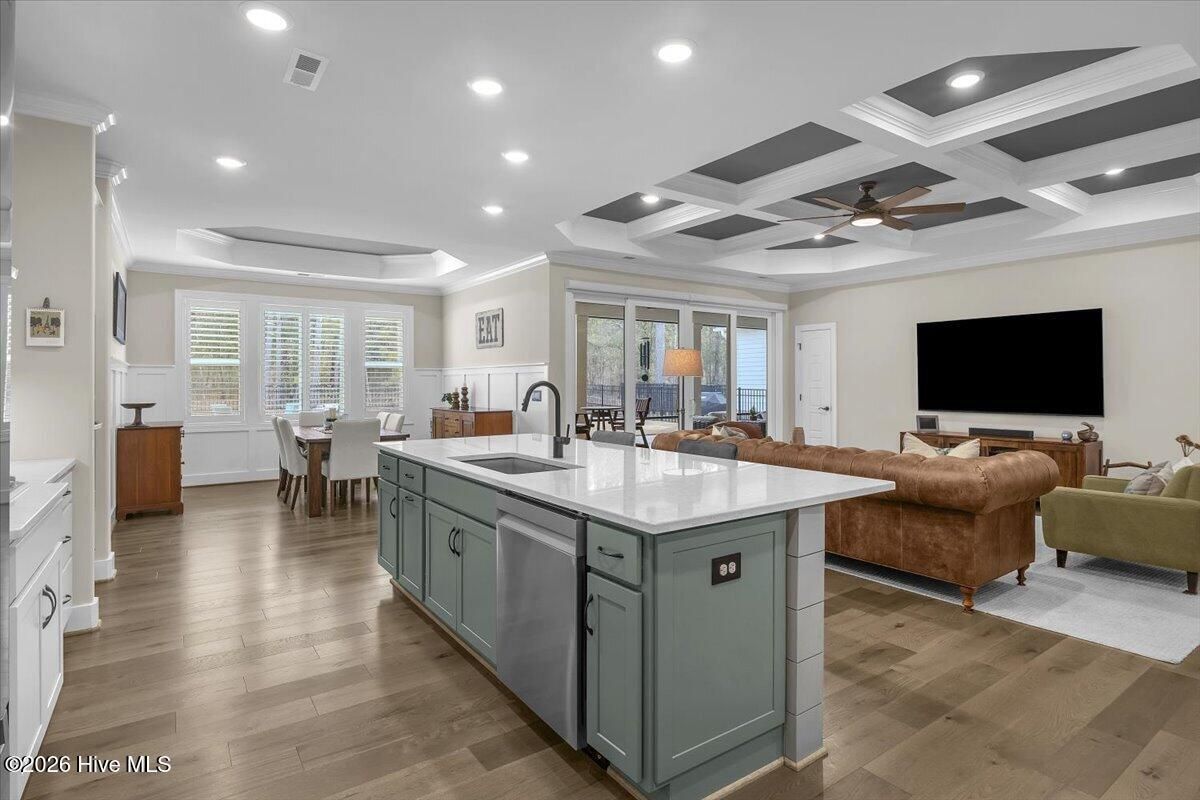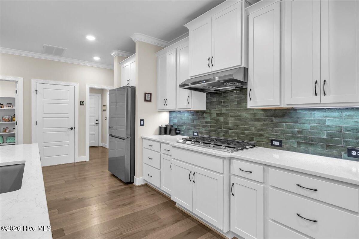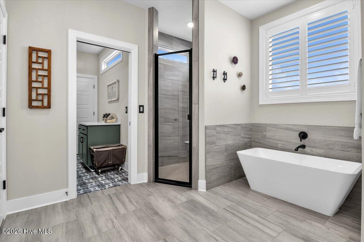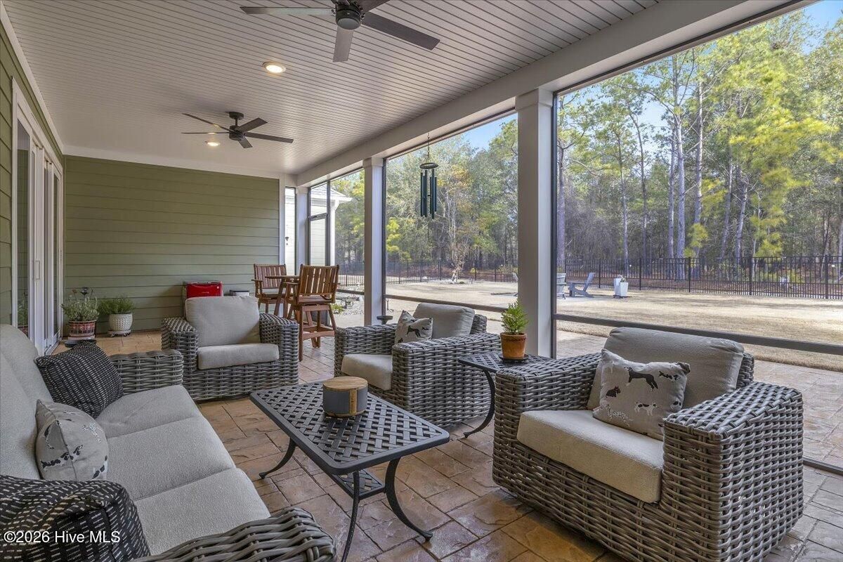 Located on a quiet nature preserve homesite in Compass Pointe, this beautifully crafted 2025 Kent Homes residence offers exceptional privacy, thoughtful design, and effortless one-level living. The appealing elevation features a covered front porch and a highly desirable 2.5-car front-inside entry garage, blending curb appeal with everyday functionality. Inside, the open-concept layout spans 2,266 square feet and is designed for comfort and flow. The welcoming foyer opens to a forward-facing private office with French doors, leading into the living room, expansive kitchen, and dining area—ideal for both entertaining and daily living. A split floor plan provides privacy for guests and owners alike. The spacious primary suite features a walk-in closet with custom built-ins and a spa-inspired bath with dual vanities, freestanding soaking tub, tiled walk-in shower, water closet, and custom slide-out storage. The laundry room is conveniently located just off the primary suite. Two additional bedrooms, a tiled walk-in guest shower, powder room, and abundant floored storage—including an unfinished bonus room—add to the home's exceptional livability. Interior highlights include LVP flooring throughout (no carpet), quartz countertops, an oversized island, custom soft-close cabinetry, stainless steel appliances, Zephyr hood, 5-burner range, coffered ceilings, crown molding, pocket doors, and plantation blinds. Outdoor living shines with an oversized screened porch and stamped concrete patio overlooking the preserve, offering a peaceful backdrop for entertaining or quiet evenings. A black aluminum fenced yard with dog-friendly screening and a paver walkway leading to a private firepit patio complete the setting. Compass Pointe residents enjoy resort-style amenities including the Grand Lanai Amenity Center, pools, lazy river, fitness center, tennis and pickleball courts, on-site dining, scenic trails, and access to the Rick Robbins Championship 18-hole golf course (memberships available). Gated and conveniently located near shopping, medical facilities, golf, historic downtown Wilmington (15 minutes), and Wrightsville Beach (30 minutes), this home captures the essence of luxury coastal livingwhere every day feels like a getaway.