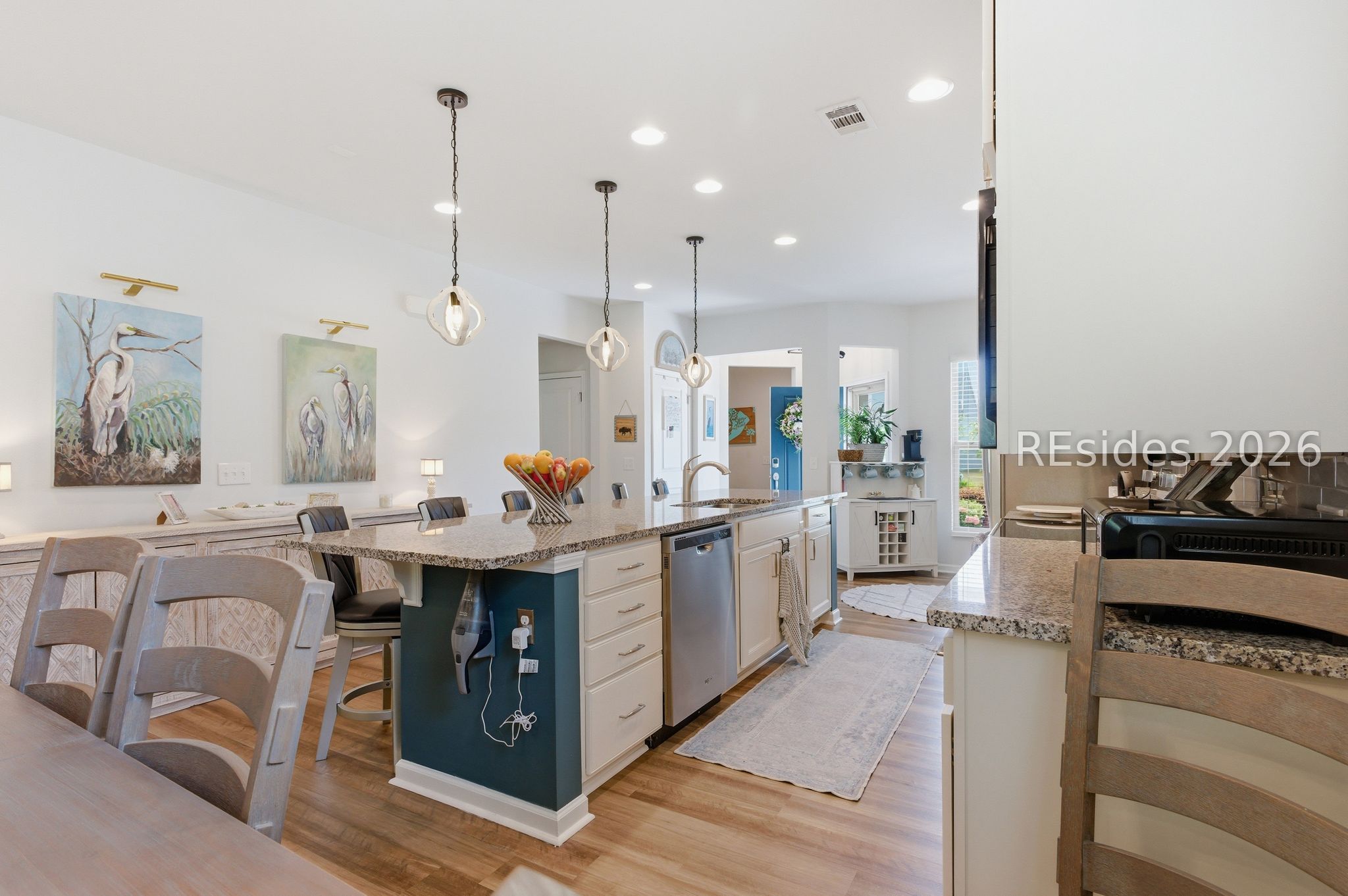 Welcome to 277 Springtime Court in Sun City Hilton Head North! Enjoy the best of 55+ Active Adult Lowcountry living in this beautifully appointed Steel Creek model with loft, offering a versatile 3-bedroom, 3-bath layout designed for comfort, flexibility, and entertaining. The main level features 2 bedrooms and 2 full baths, while the upper level provides a private guest retreat complete with a spacious loft, walk-in closet, and full bath-ideal for visiting family & friends, hobbies, or a home office.This open-concept home showcases luxury vinyl plank flooring throughout and a stunning gourmet kitchen with granite countertops, stainless steel appliances, and a generous breakfast bar overlooking the main living area. The light-filled Carolina room adds additional living space, while the screened lanai with cathedral ceilings and ceiling fan offers a peaceful, private outdoor setting-perfect for relaxing or entertaining. Additional highlights include ample storage, a widened side yard for added privacy, and a quiet cul-de-sac location. Conveniently situated near the Argent gate and near the new golf cart bridge providing easy access to Sun City West and its newest amenity center, as well as just minutes from the Lakehouse Amenity Center. Experience the active adult lifestyle with world-class amenities, golf, fitness, and social opportunities that make Sun City Hilton Head the Lowcountry's premier 55+ communities.
