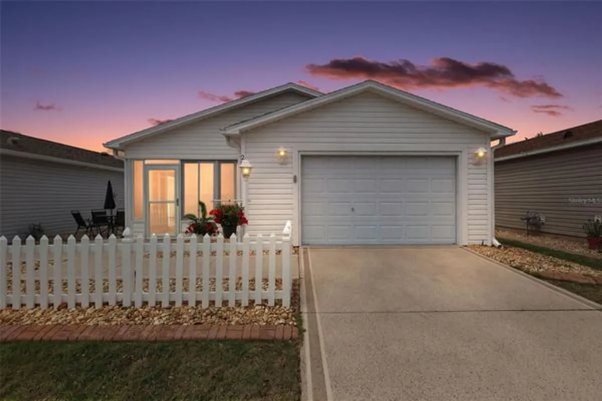 Enjoy the ease of Florida living in this BEAUTIFULLY REMODELED and FULLY FURNISHED 2/2 Colony Villa featuring an UNDER-AIR, ENCLOSED LANAI- IDEALLY LOCATED in the highly sought after Caroline - between County Roads 466 and 466A and JUST MINUTES to LAKE SUMTER LANDING with shopping, dining, and live nightly entertainment! LOW BOND - only$3,405.42! This FURNISHED villa combines modern upgrades, functional design, and low-maintenance living—ready for you to enjoy from day one! DECORATIVELY PAINTED drive and walkways, TROPICAL landscaping in curbed, stone-accented beds creates a bold first impression that welcomes you into the UNDER-AIR ENCLOSED lanai with TILE floors and SOLAR SHADES. This FABULOUS space adds an additional 110sf of versatile, year-round living area! Whether you’re enjoying a quiet morning coffee, unwinding with a good book, or entertaining guests, this inviting retreat offers the perfect setting to relax in style. Inside, the spacious living and dining rooms boast an OPEN CONCEPT layout with SLIDING GLASS doors that open to the SPACIOUS side patio, seamlessly blending indoor and outdoor charm and offering the perfect spot for grilling and outdoor dining. UPGRADES include LUXURY VINYL PLANK flooring THROUGHOUT offering both beauty and easy maintenance; THREE SOLAR TUBES that bathe the home in NATURAL LIGHT; and CUSTOM PLANTATION SHUTTERS that add a touch of elegance. The UPDATED kitchen is the highlight of the home, blending style and functionality with eye-catching soft teal cabinetry that adds a FRESH, MODERN pop of color. Thoughtfully designed with PULL-OUT SHELVING, the cabinets offer easy access and smart storage solutions to keep everything organized. Gleaming GRANITE countertops are perfectly complemented by a TILE backsplash. STAINLESS appliances with GAS cooking, complete the contemporary look, while a spacious PANTRY closet ensures plenty of room for storage. The inviting COUNTER-HEIGHT, EAT-IN breakfast bar and quaint dinette create a natural gathering spot—ideal for casual meals or entertaining guests while staying connected to the heart of the home. The primary suite offers a GENEROUS WALK-IN closet and a sliding BARN DOOR leading to the en-suite bathroom, complete with a WOOD vanity topped with GRANITE and a TILED WALK-In shower with frameless glass. Bedroom two includes a built-in closet and the second bathroom features a WOOD vanity with GRANITE top, tub and shower combination, and a hall LINEN closet. Completing the package is an 18’x22’ garage boasting an EPOXIED floor, dedicated laundry nook with shelving, utility sink, and a whole-house Nova water filtration system. DON’T MISS YOUR OPPORTUNITY to make this INCREDIBLE HOME YOUR OWN! The Village of Caroline offers an UNBEATABLE LOCATION - ONLY MINUTES from Lake Sumter Landing - where you’ll find an array of shopping, dining, and live nightly entertainment! You’ll also be close to Mallory Hill and Arnold Palmer Country Clubs and Championship Golf Courses. Health enthusiasts will love the proximity to the Lake Miona Regional Recreation Center and Fitness Trail. Also nearby to Coconut Cove Recreation Center; Caroline Neighborhood Pool; additional recreation centers, golf, pickle ball, swimming pools, and more! PLEASE WATCH OUR WALKTHROUGH VIDEO of this AMAZING MOVE-IN READY HOME in a FABULOUS LOCATION and call today to schedule your Private Showing or Virtual Tour!
