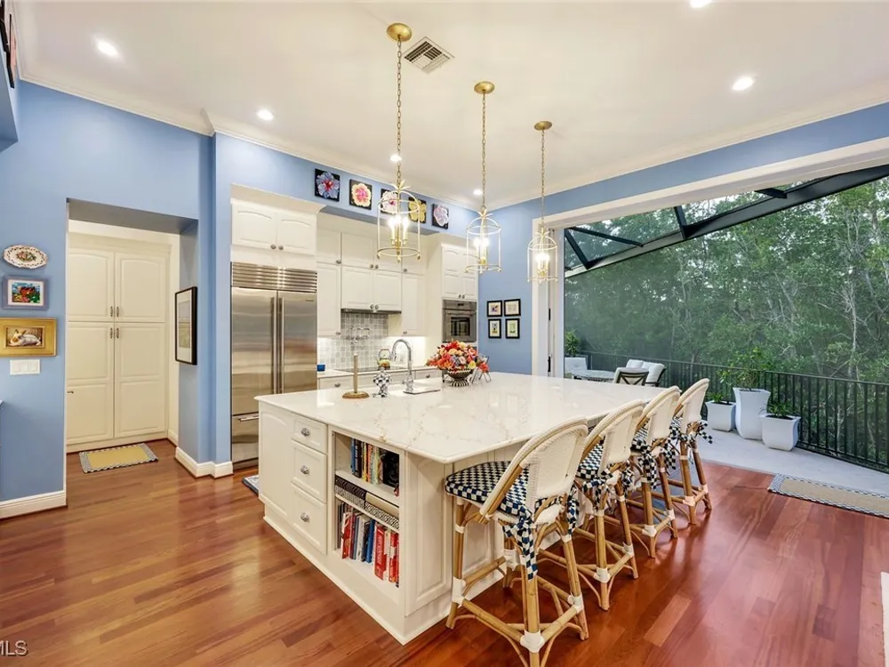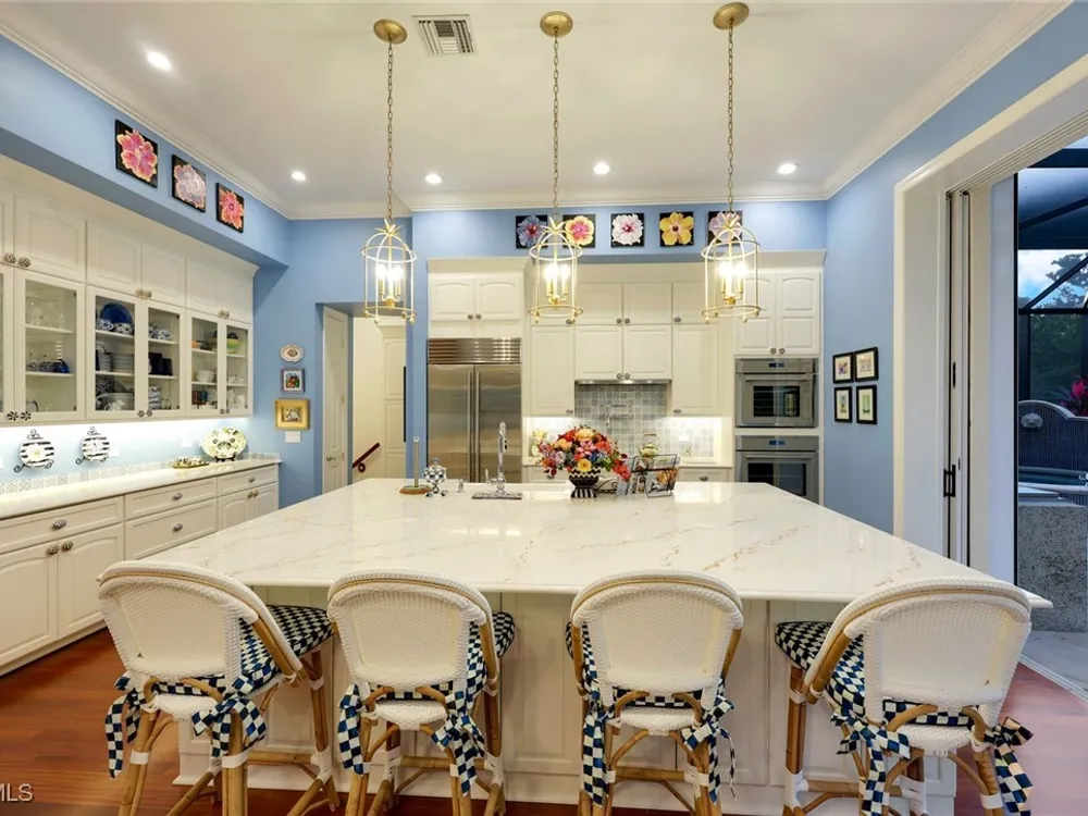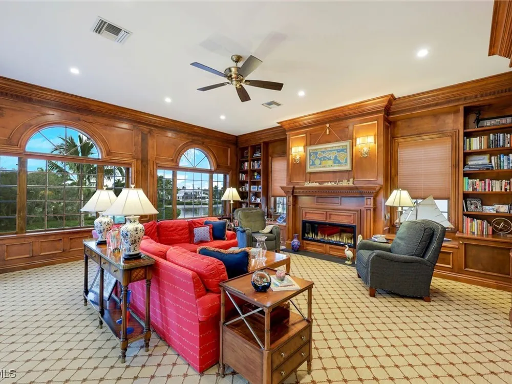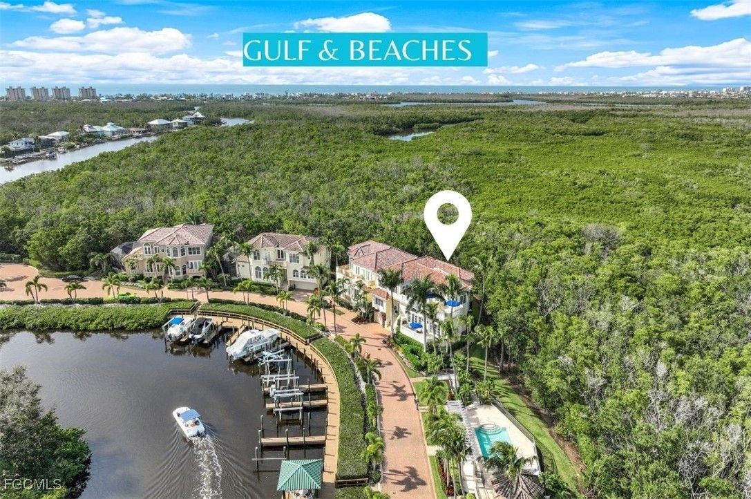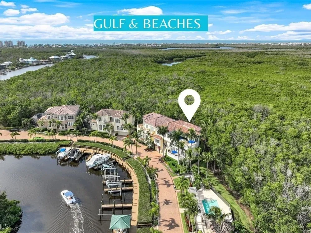 Welcome to Marina Isle at Bonita Bay, an ultra-exclusive gated enclave of only 14 waterfront residences, designed for the boating and water-lifestyle enthusiast. This exceptional multi-level Mediterranean retreat offers TWO PRIVATE BOAT SLIPS with lifts and direct Gulf access just steps from your door - the ultimate convenience for those who live life on the water. From the moment you arrive, the home’s architectural presence and meticulous updates make a lasting impression. Inside, discover 4 bedrooms, 4 baths, and a richly appointed wood-lined den with fireplace, complemented by French doors opening onto balconies that overlook the Imperial River. The residence also features a heated spa, and a spacious garage and storage level, creating a perfect blend of elegance and function. The home’s French-Parisian interior showcases vivid personality and craftsmanship throughout each room. The residence sits adjacent to the community pool for effortless sun lounging and social enjoyment, with alfresco dining and entertaining spaces that flow from front to back. No detail was overlooked in the home’s recent enhancements, which include: New tile roof and 7” gutters, Panoramic lanai cage with Noseeum screens, Remodeled kitchen, baths, and laundry room, Full exterior and interior repainting, Whole-home Generac generator with propane tanks, California Closets and Electric shutters on all windows and doors for complete storm protection. Bonita Bay residents enjoy access to five championship golf courses, 18 tennis courts, 10 pickleball courts, a world-class fitness and spa complex, six dining venues, 12 miles of walking trails, and private beach shuttle service to the Bonita Bay Beach Park on the Gulf.