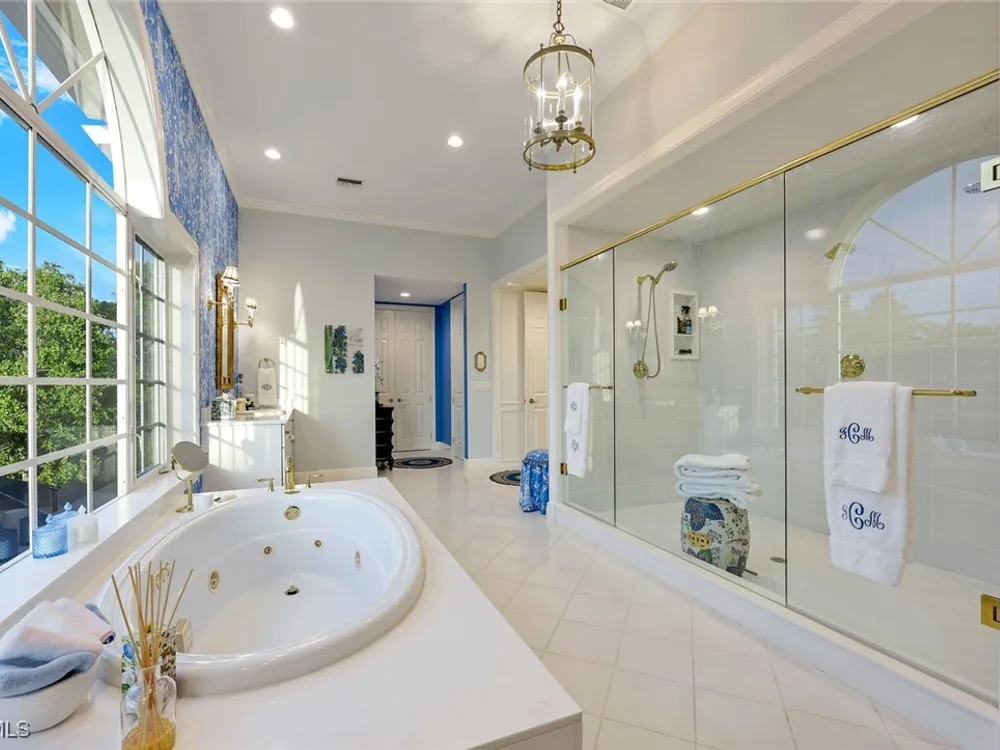 - Wet Bar, Bathtub, Closet Cabinetry, Dual Sinks, Eat-in Kitchen, French Door(s)/Atrium Door(s), Fireplace, High Ceilings, Jetted Tub, Kitchen Island, Multiple Shower Heads, Pantry, Separate Shower, Upper Level Primary, Bar, Walk-In Closet(s), Window Treatments, High Speed Internet, Split Bedrooms