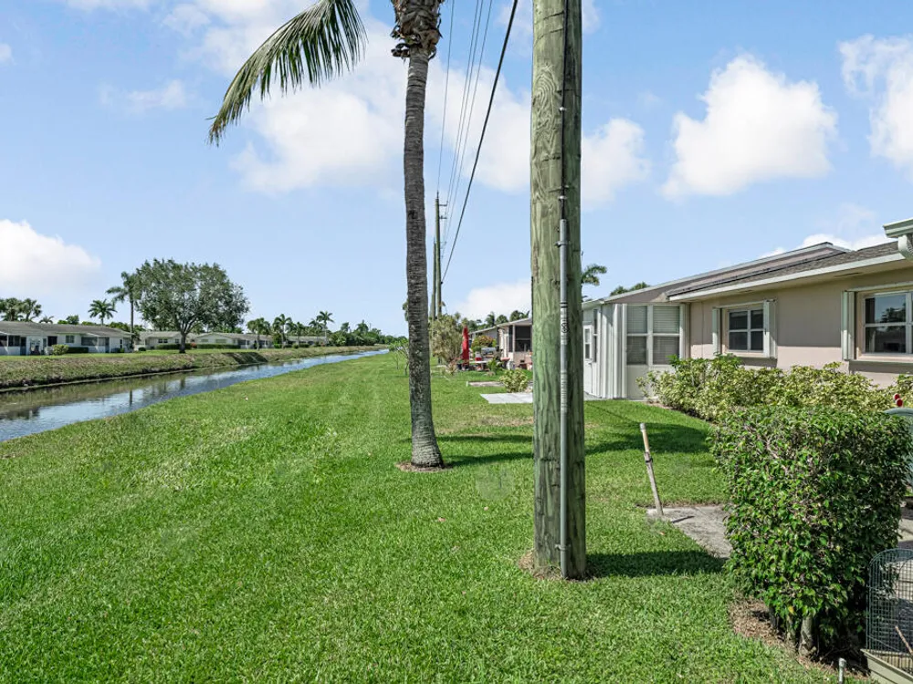 Affordable cozy 2-bedroom, 1-bathroom home featuring tile flooring throughout and a open backyard with a peaceful canal view. Enjoy the convenience of hurricane shutters, plenty of storage, and a dedicated parking spot just steps from your front door. The low monthly condo fee covers water, lawn care, cable, and internet. Located in the desirable 55+ community of Dudley, residents enjoy access to a clubhouse, pool, sauna, fitness center, auditorium, shuffleboard and horseshoe courts, billiards room, workshop, and a full calendar of activities. Perfectly situated in the heart of Palm Beach County--just minutes from shopping, dining, entertainment, and Palm Beach International Airport.