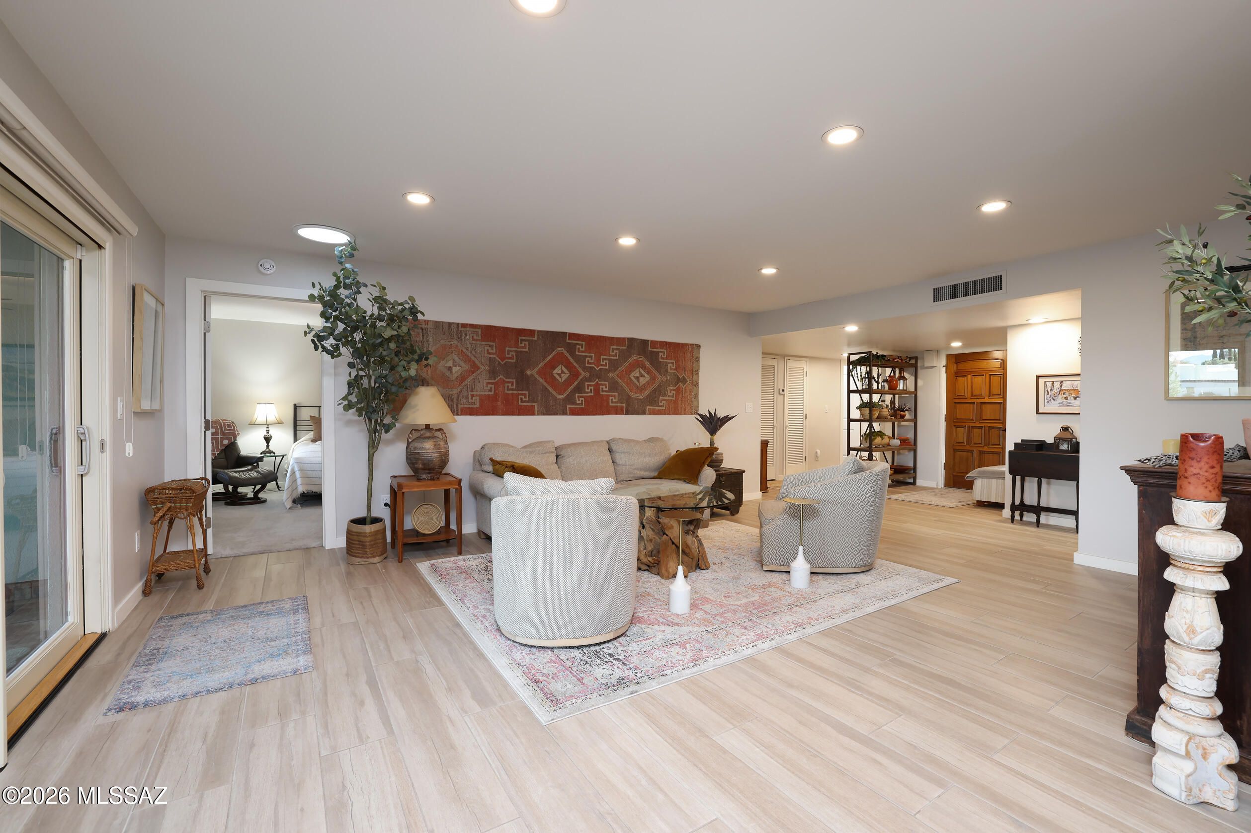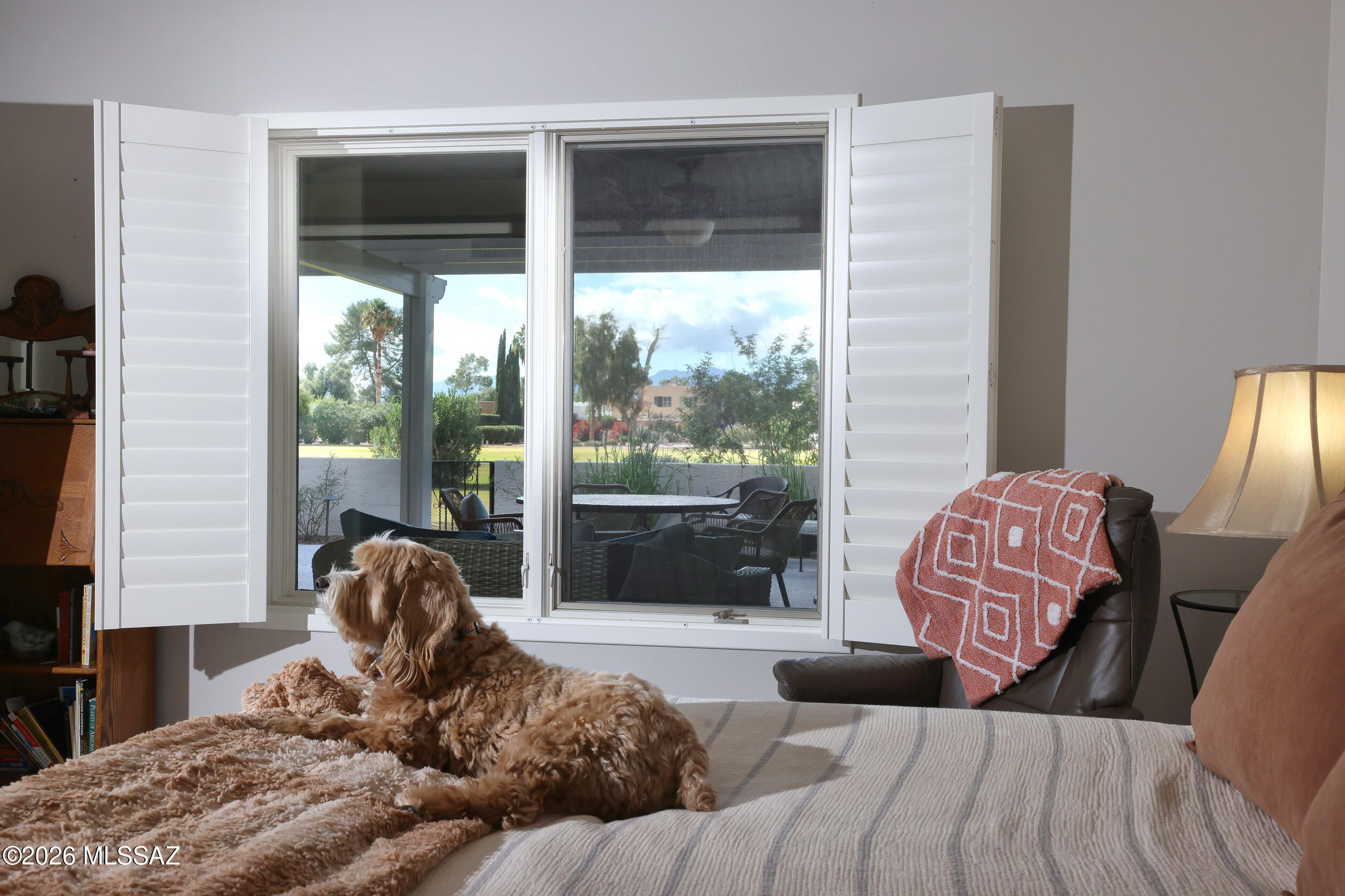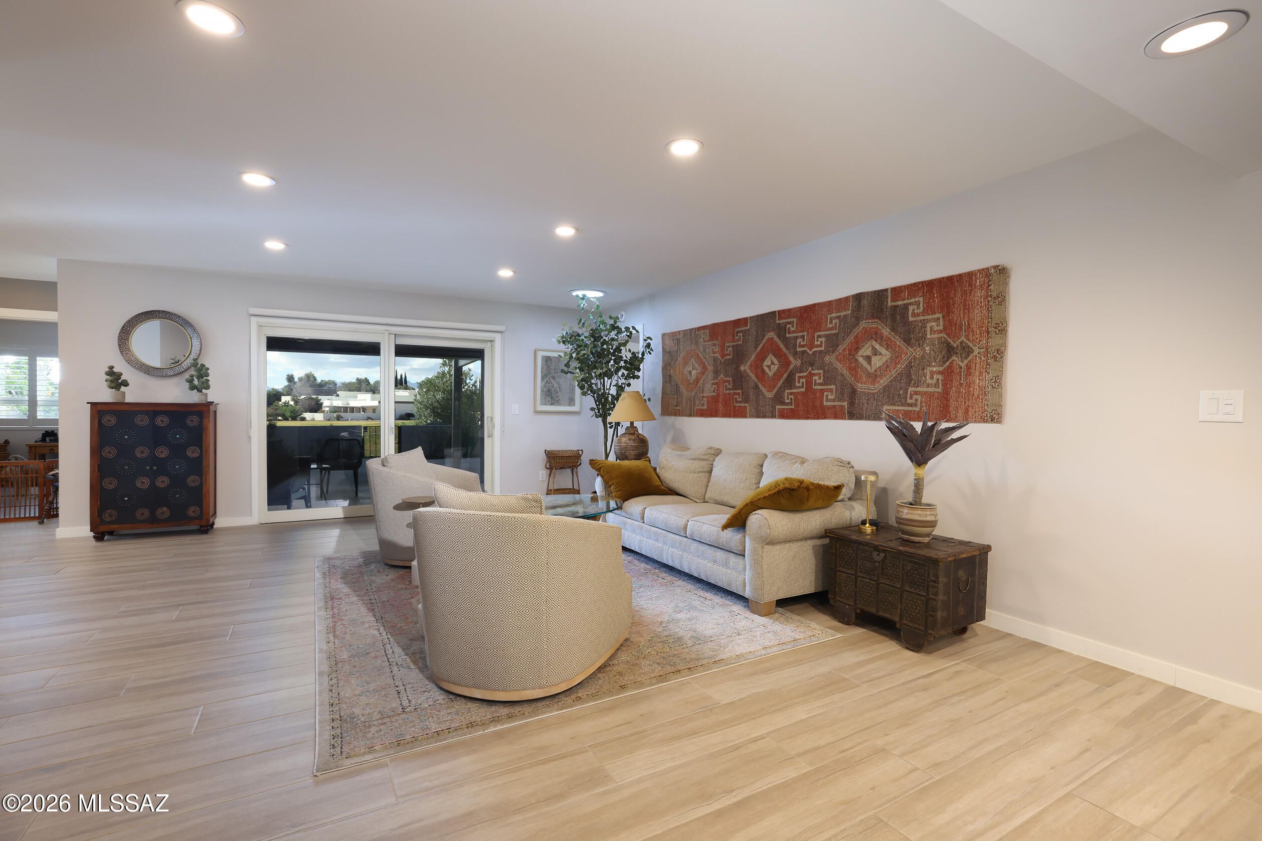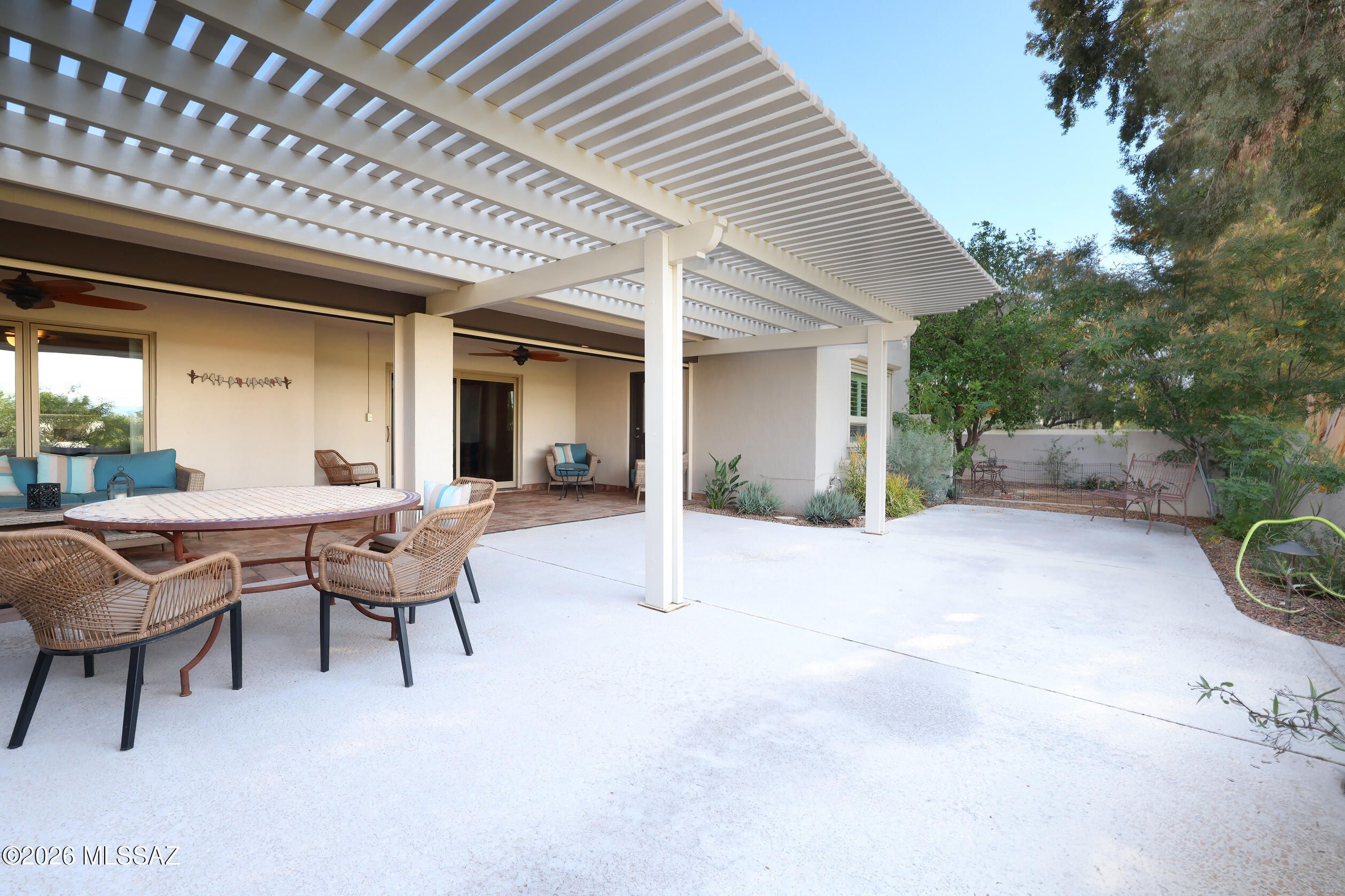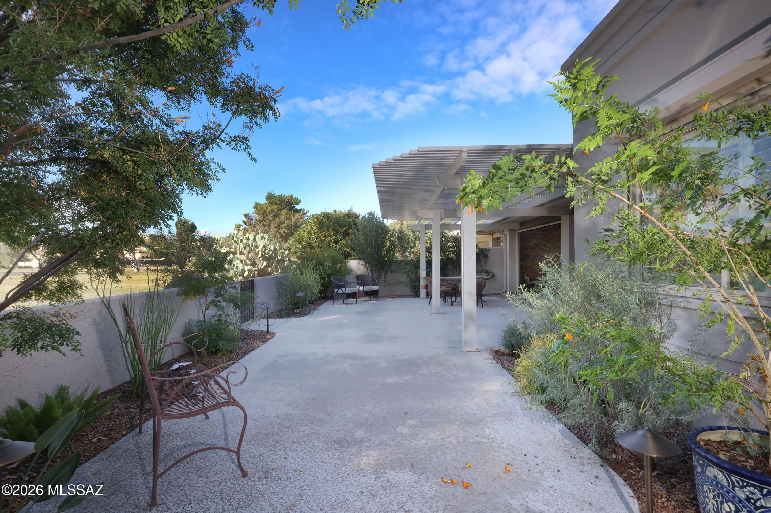 Sophisticated retreat ideally positioned on hole 14 of Catalina course in a gated, adult community at Omni Tucson Nat'l. Meticulously remodeled with premium finishes, the home features a chef-inspired kitchen w/ two-tone custom cabinetry, quartz counters, stainless GE appliances & more. Open living & dining spaces create a seamless flow for entertaining, complemented by upgraded lighting. Inviting & serene courtyard entry with ambient lighting. Covered patio w/ roll-down shades captures sweeping golf course & distant vista mtn views. Secluded side yard & patio provide a peaceful retreat. Primary suite is a luxurious sanctuary with spa-style bath, soaking tub, walk-in closet. separate shower & custom dual vanity. Guest bath is elegantly upgraded. Den w/ murphy bed. 2 Car + golf cart garag