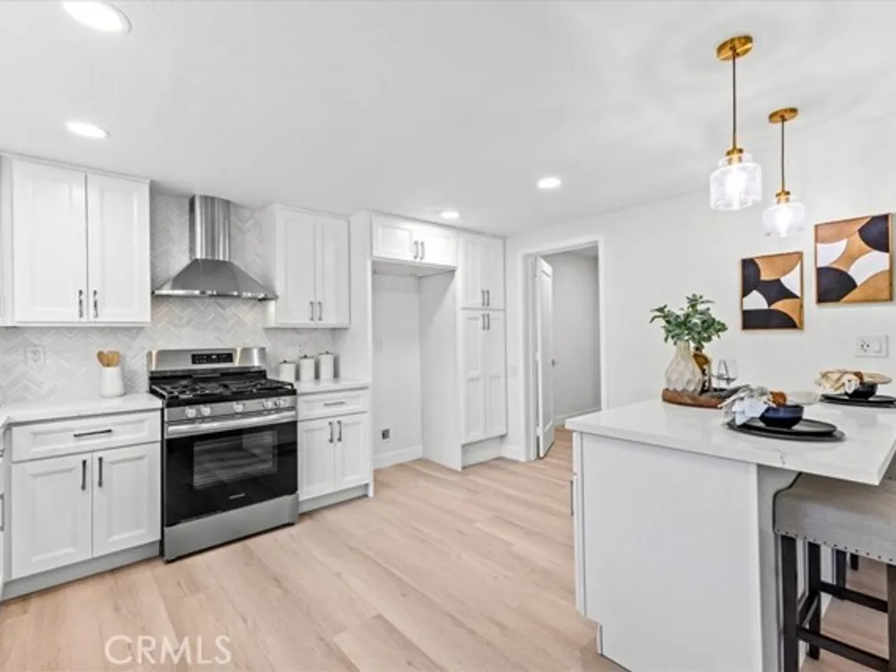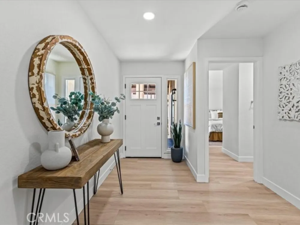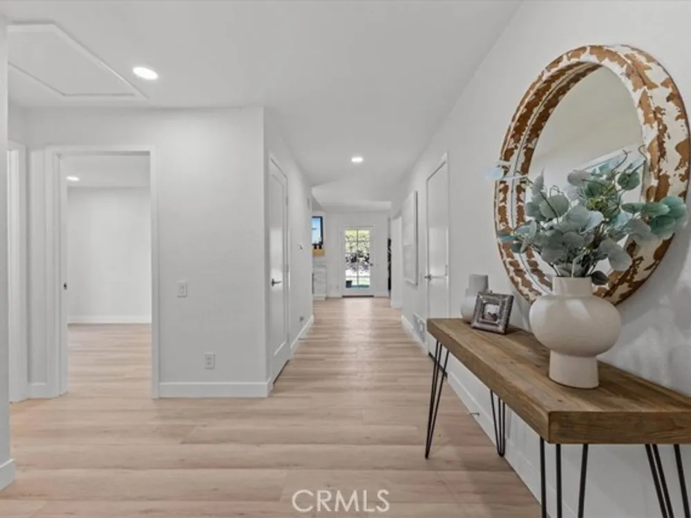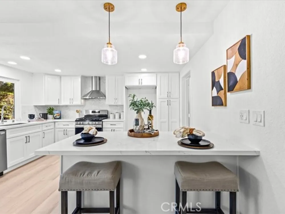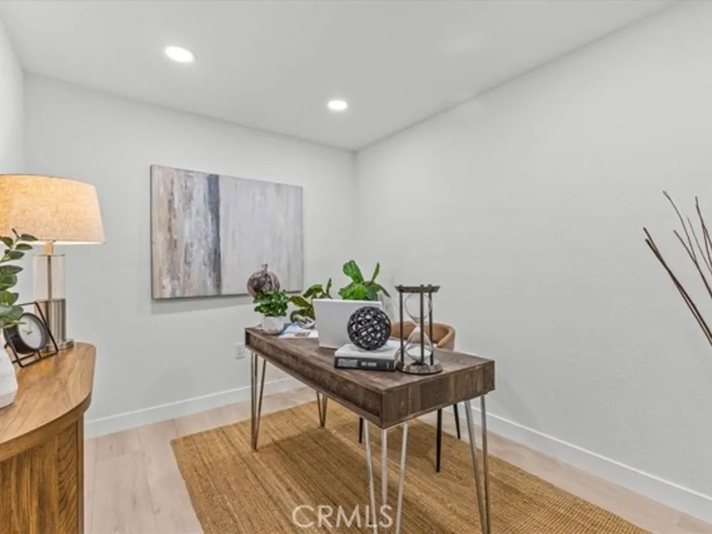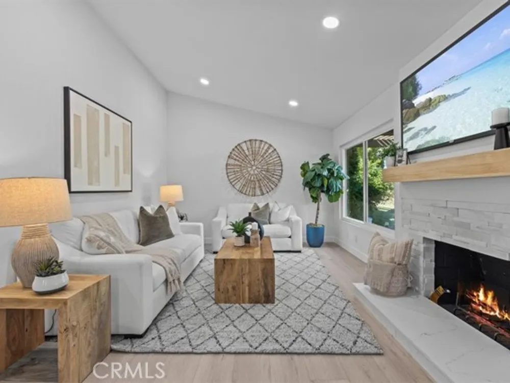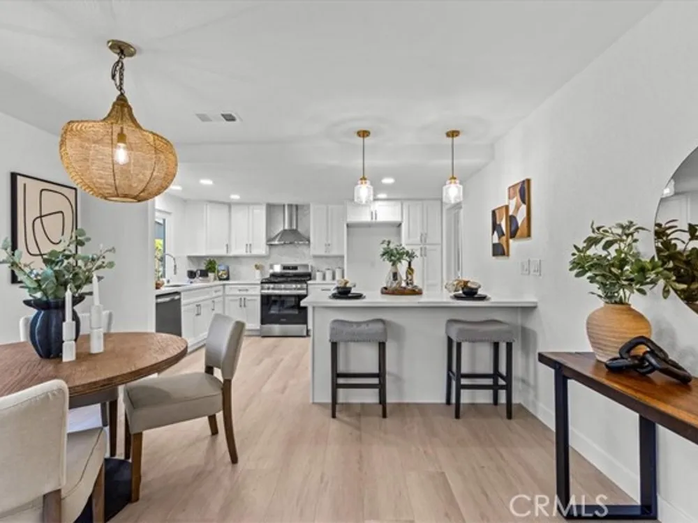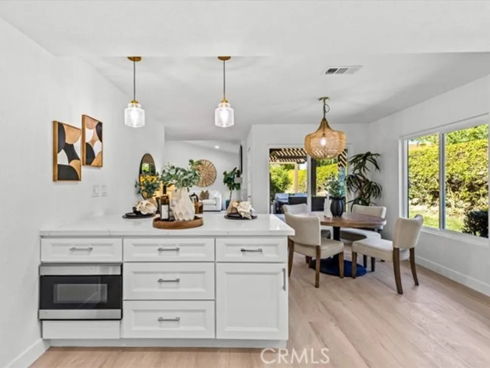 Welcome to this extraordinary remodeled 2 beds + an office/den home in Casta del Sol, 55+ living, where modern design and everyday comfort meet in perfect harmony. Every inch has been reimagined with quality materials and timeless details to create a home that feels both luxurious and inviting. This thoughtfully redesigned layout offers flexibility for work, relaxation, and entertaining. The former outdoor atrium has been fully converted with permit into an indoor laundry room and office/den, adding valuable square footage and functionality. Step inside to discover an open-concept floor plan with high ceilings, new dual-pane windows, and waterproof vinyl flooring flowing seamlessly throughout. The living room boasts a brand-new stacked stone fireplace, setting a stylish focal point while filling the space with warmth and character. The chef-inspired kitchen shines with all-new cabinetry, quartz countertops, marble backsplash, new stainless-steel appliances, and a large island with barstool seating-ideal for entertaining guests or casual everyday meals. Elegant brass wire weave pendants, a raindrop single drum pendant, and champagne bronze hardware add sophistication and designer flair. Outdoor living is just as impressive, featuring new pavers on the driveway and side patio, a br