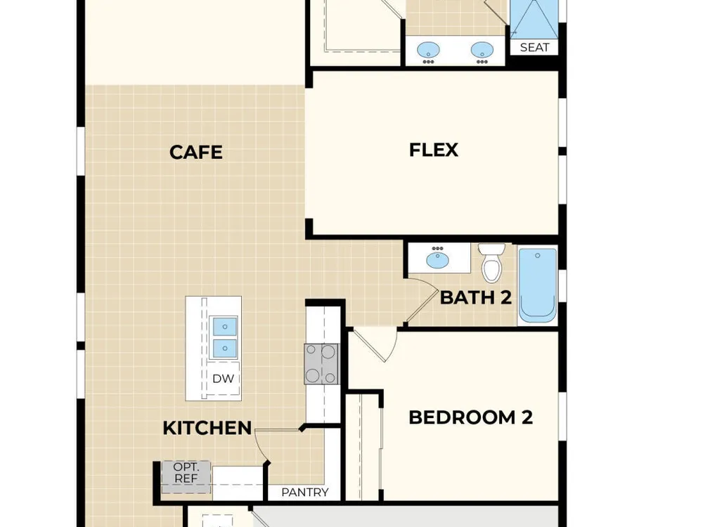 The Pine floor plan from the Grove Collection, offering 1,581 sq. ft. of versatile living space. This beautifully designed home features: 2 Bedrooms + Flex Room 2 Bathrooms 2-Car Garage Key Features: Open-Concept Living: The spacious great room flows into a well-appointed kitchen, creating an ideal space for both daily life and entertaining. Flex Room: Perfect for a home office, hobbies, or additional guest space. Owner's Suite: Includes a walk-in closet and an en suite bathroom, offering a private retreat. Lanai: Covered outdoor space to enjoy the Florida sunshine. Community Benefits at Reverie at Silverleaf: Reverie at Silverleaf offers exclusive access to world-class amenities tailored for an active and social lifestyle: Clubhouse with a multipurpose room, fitness center, and catering kitchen. Outdoor recreation, including a resort-style pool with sundeck, spa, and pickleball courts.