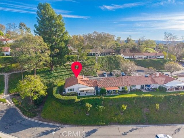 LOCATION. PRIVACY. VIEWS! This beautifully upgraded home in the highly sought-after, guard-gated 55+ community of Casta Del Sol offers one of the most exceptional settings on the market. Located at the very end of a small, quiet cul-de-sac with only seven homes, on a single-loaded street, this property enjoys unmatched peace and privacy with no neighbors across the street, a lush greenbelt, and attached on only one wall—a rare combination that creates an open, serene, and secluded environment. Enjoy breathtaking panoramic views, vibrant sunsets, rolling hills, mature trees, and sparkling city lights from this remarkable location. A charming arched, covered paver entry welcomes you into a bright foyer and spacious living room with vaulted ceilings, a romantic gas fireplace, custom mantel, and beautiful custom-built storage cabinetry that adds both style and function. Large windows showcase the stunning scenery and are accented by high-quality plantation shutters throughout. The remodeled kitchen features newer cabinetry with pull-out drawers, KitchenAid appliances, a farm-style stainless sink, stylish tile work, and a cheerful dining area overlooking those incredible views—making everyday living truly enjoyable. The generous primary bedroom offers a double-door walk-in closet, while the secondary bedroom includes mirrored closet doors that reflect the beautiful front greenery. Step outside to the long, covered private patio—your personal oasis—perfect for relaxing, entertaining, or enjoying the peaceful greenbelt, sunsets, and dazzling city-light views. A garden shed provides extra storage, and the home includes a direct-access garage, private driveway, and—unlike most streets in the community—abundant guest parking right out front. With only 7 homes on this intimate street, parking is plentiful and easily accessible for residents and visitors alike. Notable upgrades include dual-pane windows, plantation shutters, Lennox HVAC system (2018), water heater (2017), and a convenient no-step front entry. Casta Del Sol spans 484 scenic acres and offers resort-style amenities including 2 rec centers, pools, spas, clubhouse, fitness center, tennis, paddle tennis, shuffleboard, billiards, parks, etc. HOA covers trash pickup and exterior painting. End-of-cul-de-sac, single-loaded street, lush greenbelt, panoramic sunset and city-light views with exceptional privacy and parking - a truly rare opportunity and a beautiful place to call home.