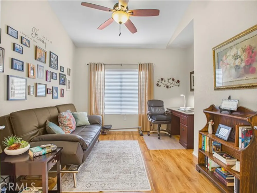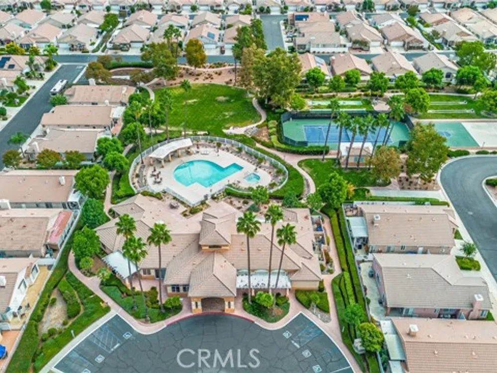 Welcome to your new home in The Club, one of Southwest Riverside County’s most desirable 55+ gated communities. This thoughtfully updated 3-bedroom, 2-bathroom residence offers a fresh take on a popular floor plan, with the option to use the office as a third bedroom. Inside, you’ll find updated flooring, fresh paint, and a unique interior window that opens from the kitchen to the family room, bringing in natural light and creating a bright, open feel. The airy layout is complemented by a neutral palette, ceiling fans, and window coverings throughout. The primary suite features a vaulted ceiling and private en-suite with dual sinks. Step outside to a private, low-maintenance backyard with a covered patio, perfect for morning coffee or evening relaxation. The Club offers resort-style amenities including a clubhouse, pool and spa, tennis courts, gym, BBQ area, library, game room, and optional RV parking. Conveniently located near shopping, dining, and the 215 freeway.