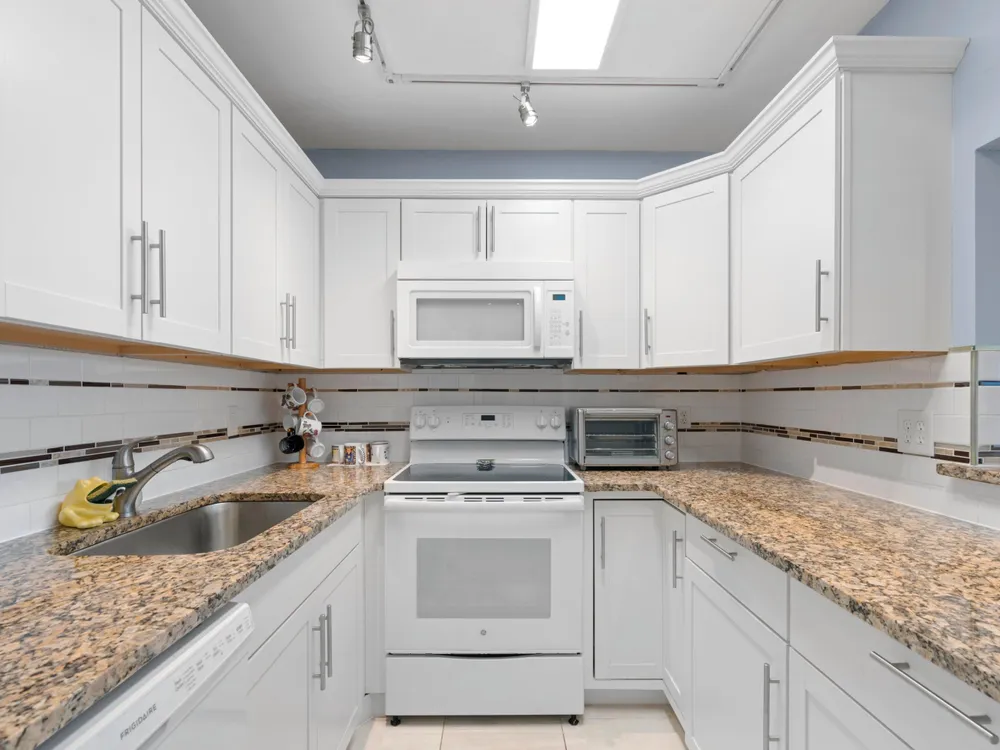 Remodeled one bedroom condo featuring garden view from the balcony. The building got new roof installed in 2025. Tankless water heater was installed in 2024. Wall AC unit was replaced in 2024. Living in this 55+ community ensures an active and engaging lifestyle. The amenities include pools, bocce ball, pickle ball & tennis courts, shuffleboard. The clubhouse features a movie theater, game rooms, billiards, library, and fitness center. Convenient busses and shuttles provide transportation inside and outside of the neighborhood. Close to major roads, Palm Beach International Airport, downtown West Palm Beach & beaches.