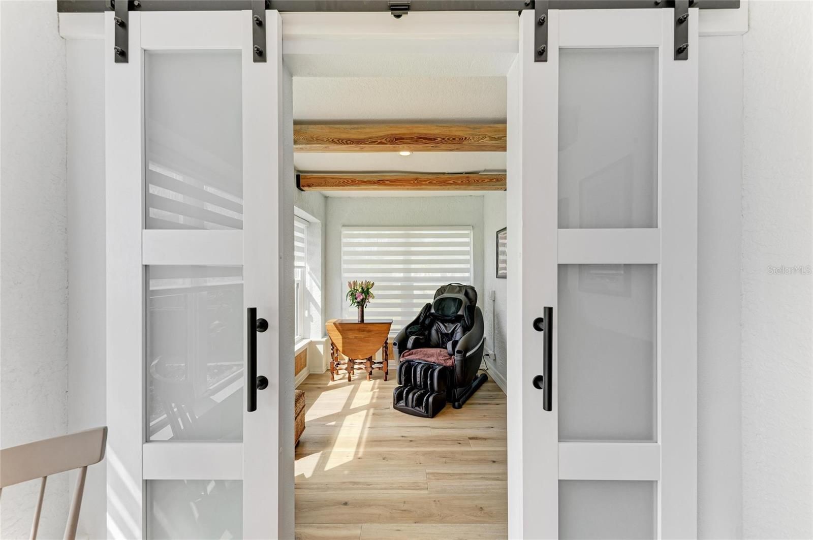 Back on the market and priced to sell this Stunning Fully Renovated 3/2 Home is located in a highly sought-after 55+ Community in Englewood. This 1,796 sq ft home boasts an open floorplan and a thoughtful design that maximizes space while offering luxury and comfort throughout. As you walk into this home you will be in awe of the solid wood entry door and Coretech luxury vinyl flooring that flows seamlessly throughout the entire home, with the exception of the tiled bathrooms, providing a sleek and durable finish. The kitchen is a dream featuring stunning marble countertops and a matching marble backsplash and is equipped with stainless steel appliances and a wood paneled Sub Zero refrigerator to match the cabinets. The large island maintains a built-in dishwasher, sink and storage -perfect for cooking and entertaining. There is a built-In Laundry Closet conveniently located off the kitchen, ensuring practicality without sacrificing style. The spacious family room is enhanced with handmade built-in storage cabinets with display shelving and a bar cabinet, perfect for hosting guests. The Primary suite will be your own private sanctuary with a separate sitting area, a beautifully designed ensuite bathroom featuring a double-sink vanity with LED lighted mirrors, including a defogger option, a glassed-in water closet for extra natural light and three large lighted built-in armoires for maximum organization. Elegant touches throughout this home including natural wood beams in the dining room providing a warm, rustic charm and Wood-framed and glass bifold doors leading into both the primary suite and second bedroom. A two car garage and paver patio in the back round out this fabulous home. Oh and did I mention the roof is part of your HOA fees! Park Forest offers maintenance free living and exceptional amenities including Clubhouse, heated pool and spa, tennis/pickleball courts, bocce ball courts and shuffleboard. There is also boat and RV storage available for a cost. Location is prime as the community is situated close to newly renovated historic Dearborn Street with shopping and great local restaurants and you are only 4 miles to beautiful Gulf coast beaches. Don't miss your chance to own this exceptional home with extraordinary attention to detail and design. Schedule your showing today!