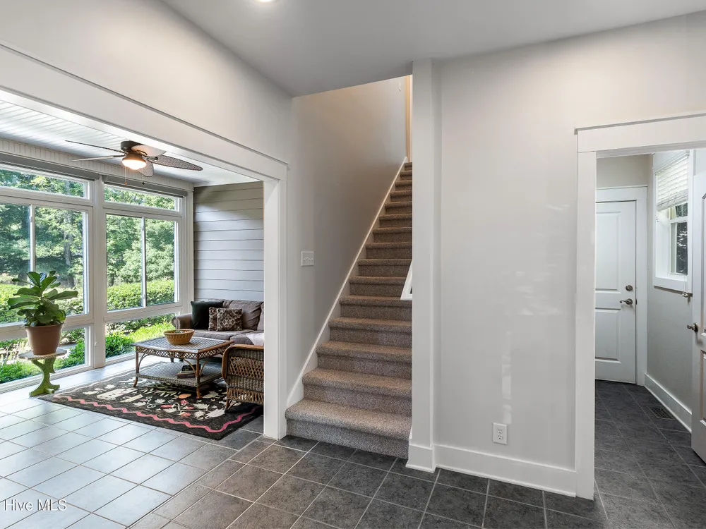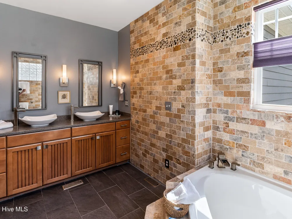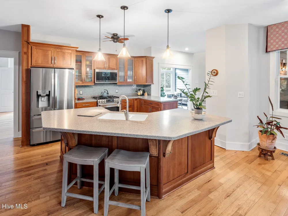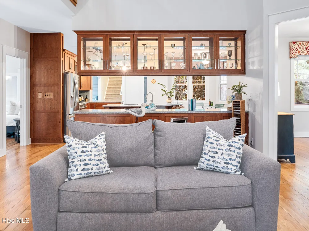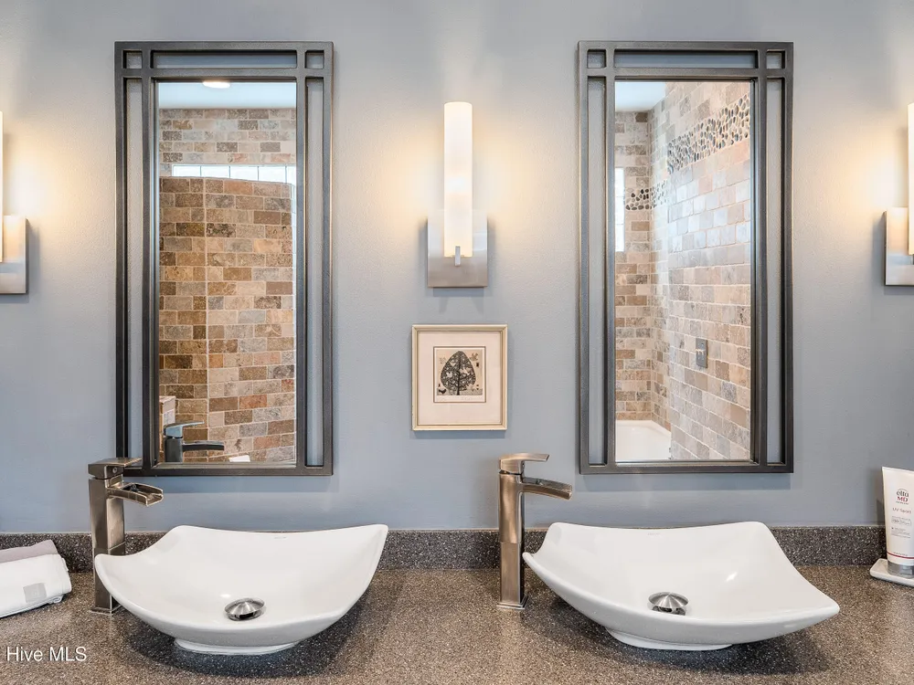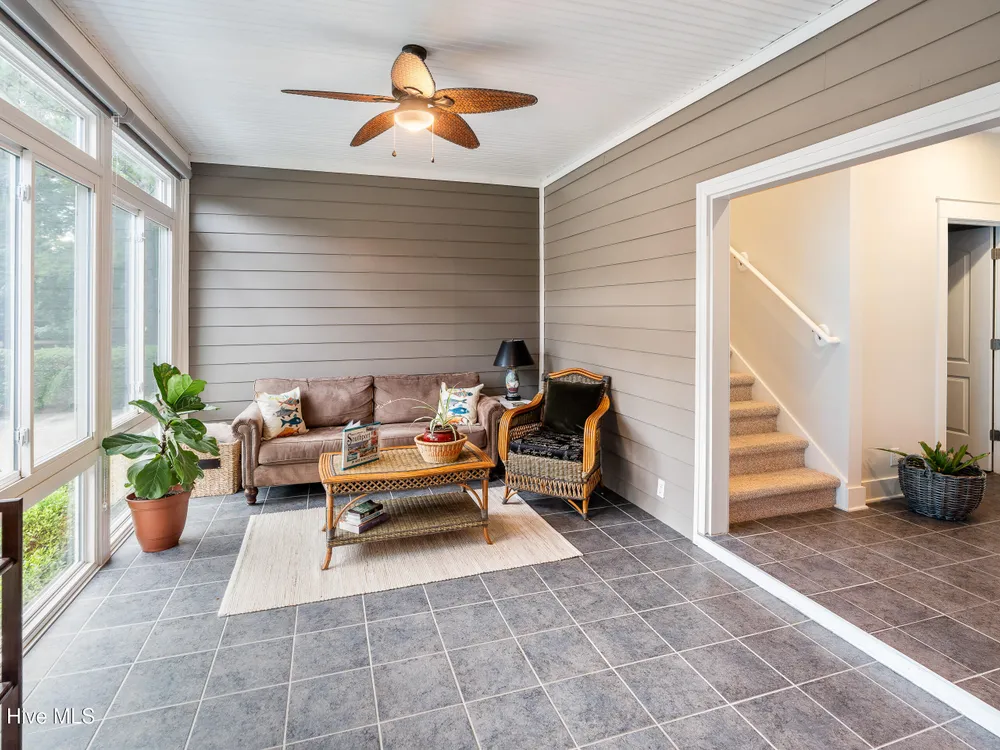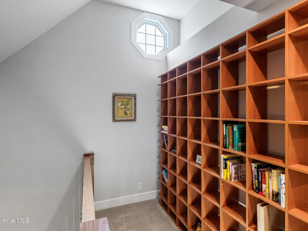 - Blinds/Shades, Solid Surface, Walk-In Closet(s), Walk-in Shower, Vaulted Ceiling(s), Gas Log, Master Downstairs, Kitchen Island, High Ceilings, Ceiling Fan(s)