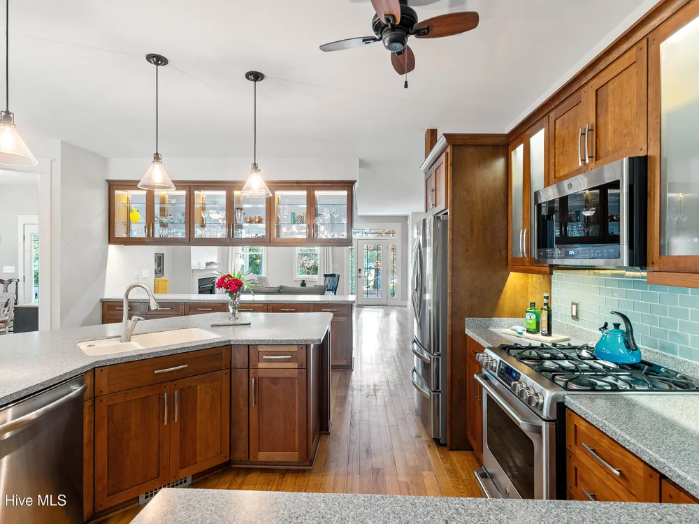 - Built-In Microwave, Dishwasher, Washer, Refrigerator, Gas Cooktop, Dryer, Disposal