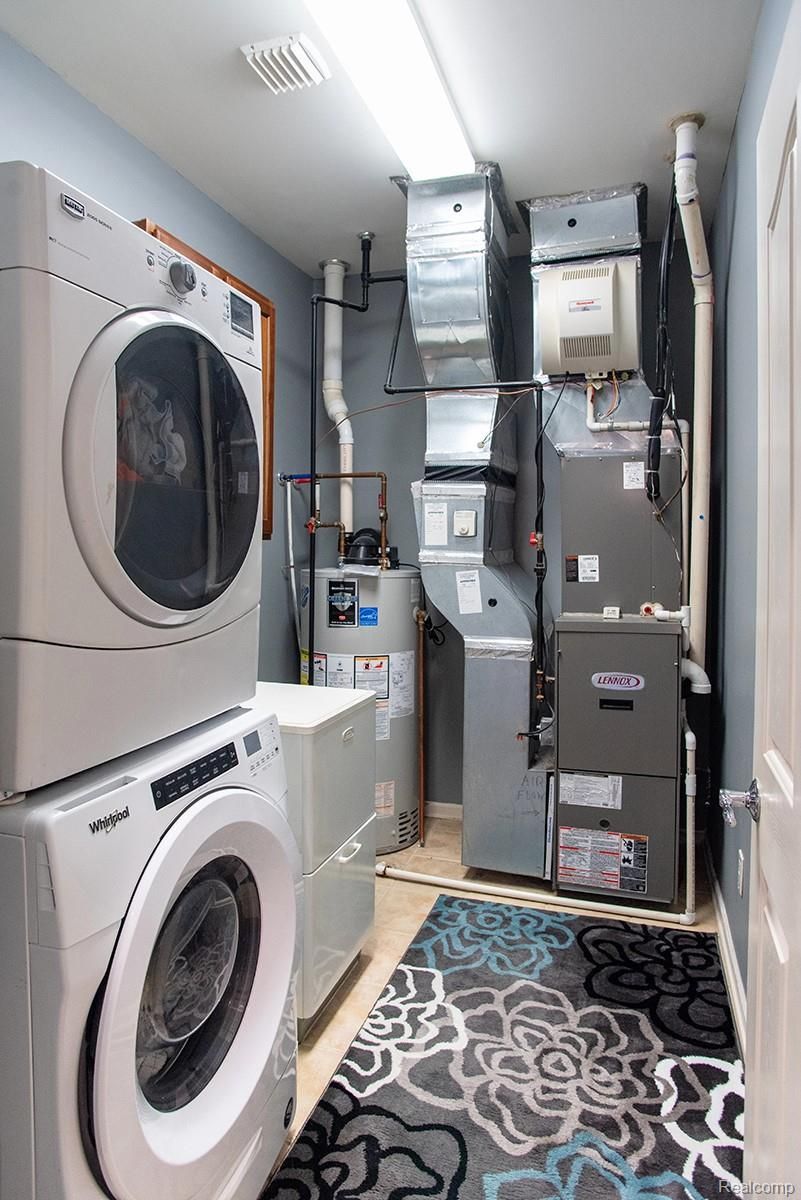 - Dishwasher, Disposal, Dryer, Free-Standing Gas Range, Free-Standing Refrigerator, Humidifier, Ice Maker, Microwave, Stainless Steel Appliance(s), Washer