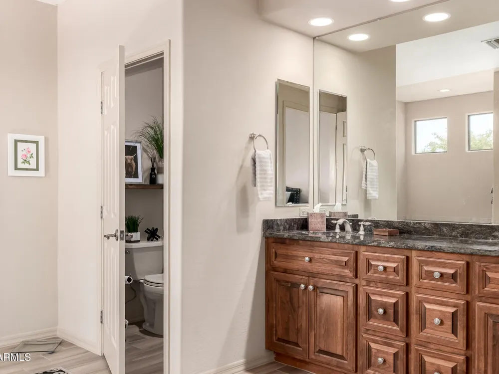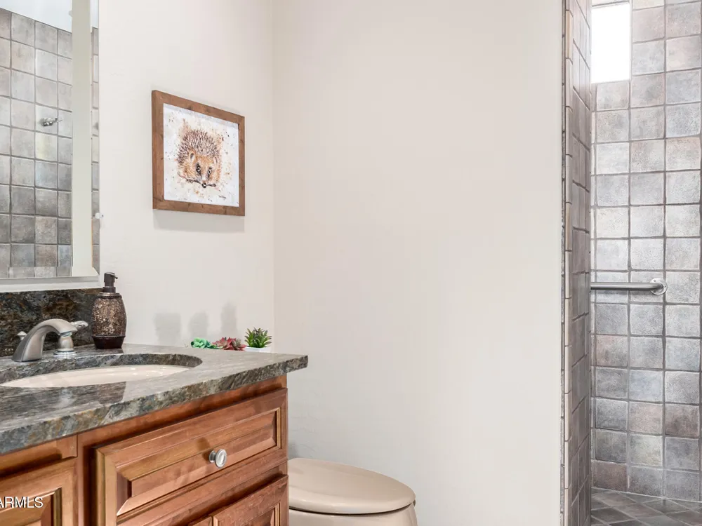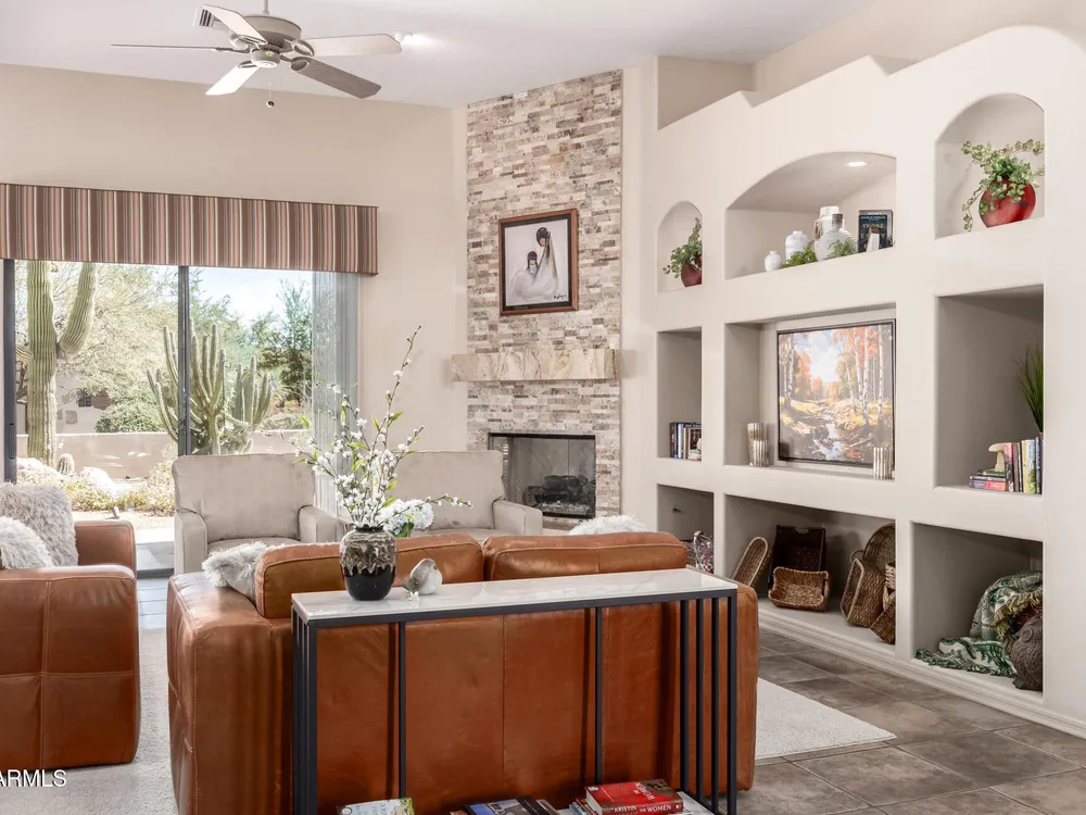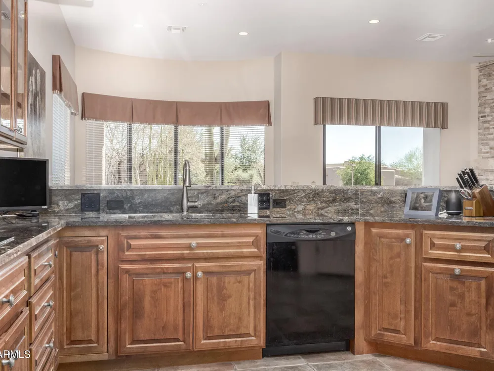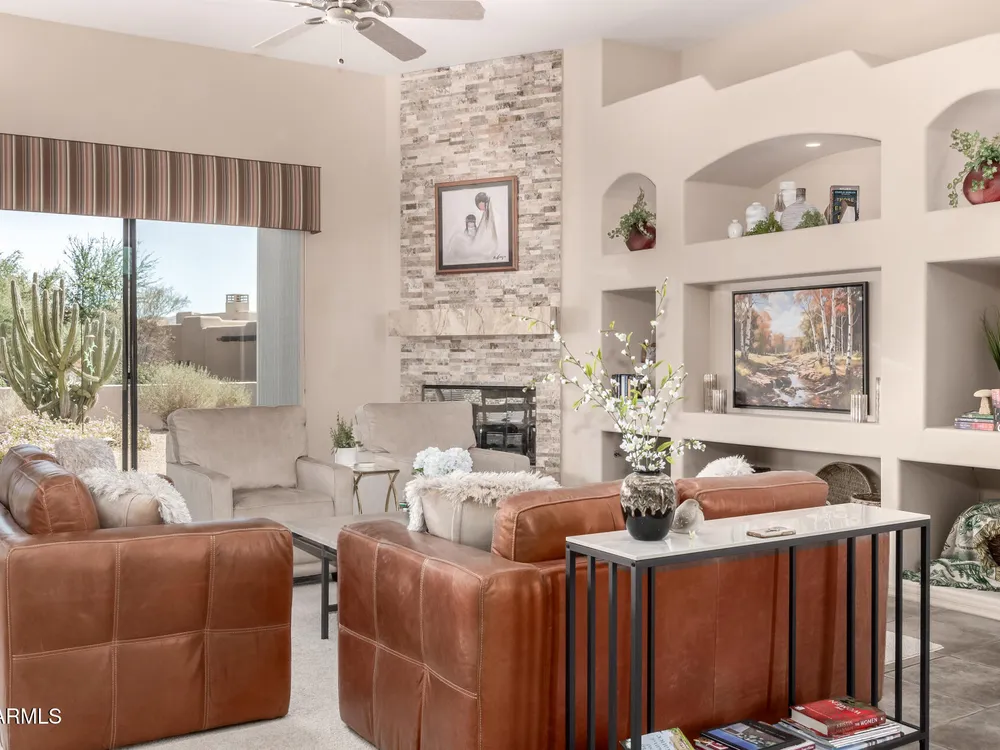 The perfect size house with a large private yard in the wonderful community of Tonto Verde. This home feels larger than the square footage. From the moment you step in the spacious entry, you will noticel how the greatroom, dining room,and open kitchen with 42'' cabinets are enhanced with abundant windows to include the beauty of the backyard and the mountains to the east. This is a very private yard with enclosed wall with room to add a pool, spa or casita. It also has a new firepit that is a perfect conversation area. The owner's suite has a huge bathroom and closet. The guest suite is an ensuite and the 3rd bedroom is presently used as a den. It also has a powder room so the guest suite doesn't have to share with other guests.The garage has storage and room for 2 cars and a golf cart.