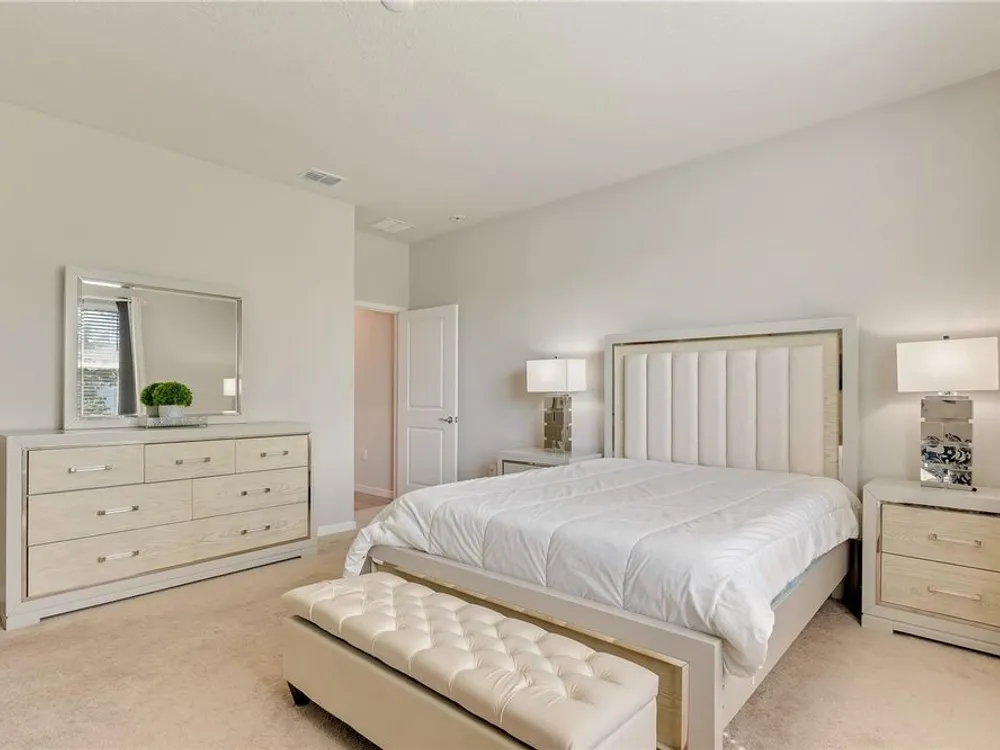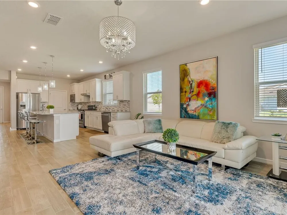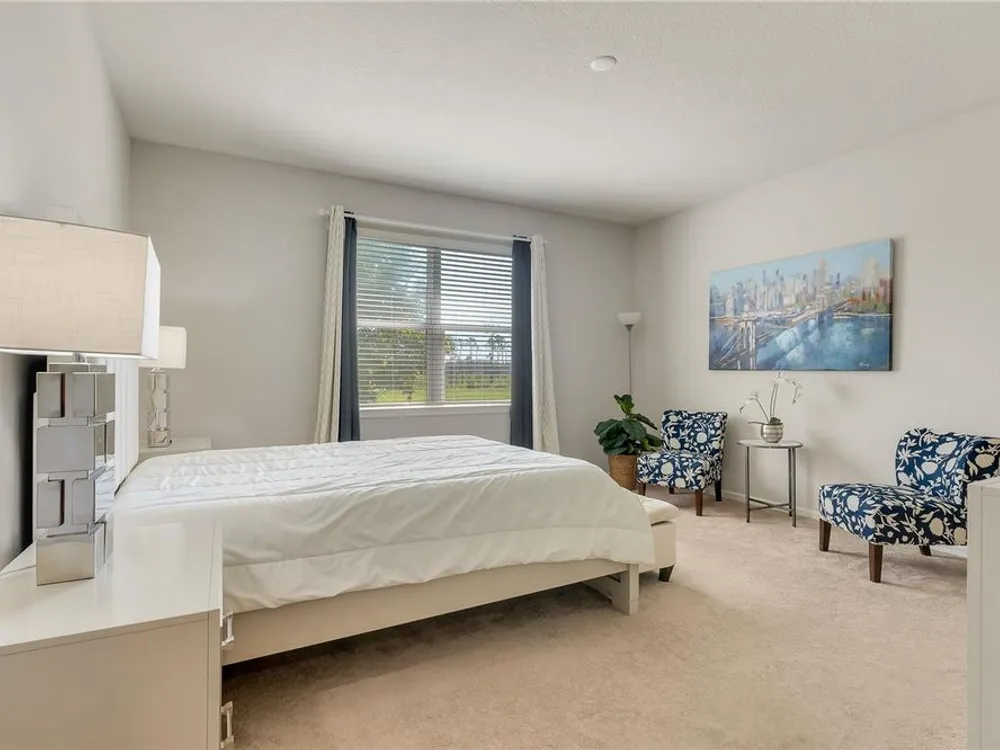 MOTIVATED SELLER - Fall in love with the elegance of this exceptional corner home, offering sweeping water views in the prestigious 55+ natural gas enclave of Del Webb Sunbridge. Just minutes from the vibrant heart of Lake Nona in Orlando, this gated community provides unmatched access to Orlando International Airport, top-tier medical facilities including UCF Lake Nona and VA Orlando Health Care hospitals, renowned golf courses, fine dining, and premier shopping. This exquisite Mainstay Grand Model, gently lived in for only two months annually as a second home, remains in pristine, near-new condition. The thoughtfully designed floor plan features four spacious bedrooms and three full baths, highlighted by a serene first-floor primary suite with tranquil water views. Culinary enthusiasts will appreciate the expansive kitchen, showcasing an oversized 8-foot island and generous walk-in pantry. An extended covered lanai, set against a peaceful backdrop of water and conservation, invites effortless entertaining and quiet reflection alike. The upstairs retreat includes a large loft, perfect for guests, along with an additional bedroom and full bath. Residents of Del Webb Sunbridge enjoy access to an array of resort-caliber amenities, including a 27,000-square-foot clubhouse, state-of-the-art fitness center, sparkling pool, casual dining, sports courts, and an active social calendar curated by a dedicated Lifestyle Director. With HOA-covered landscaping and high-speed fiber optic internet, every detail is designed for comfort and convenience. Embrace a lifestyle of refined living—schedule your private tour of this remarkable home today.