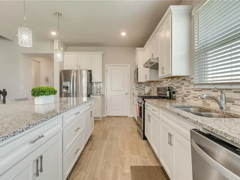 - Eat-in Kitchen, Kitchen/Family Room Combo, L-Shaped Dining Room, Living/Dining Room, Other, Main Level Primary, Split Bedrooms, Walk-In Closet(s)