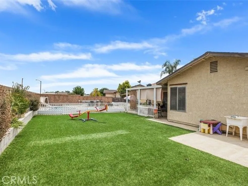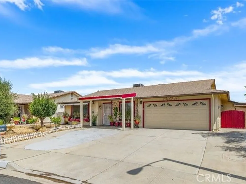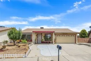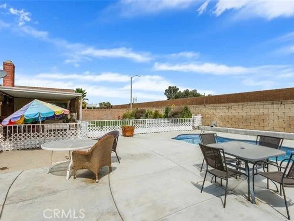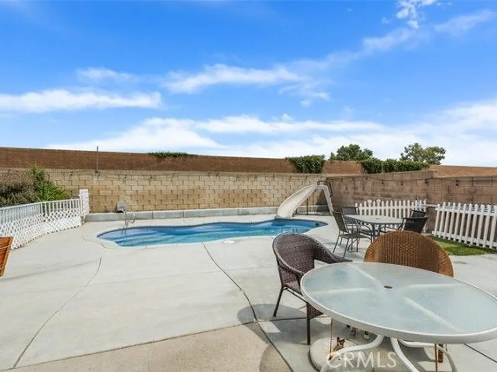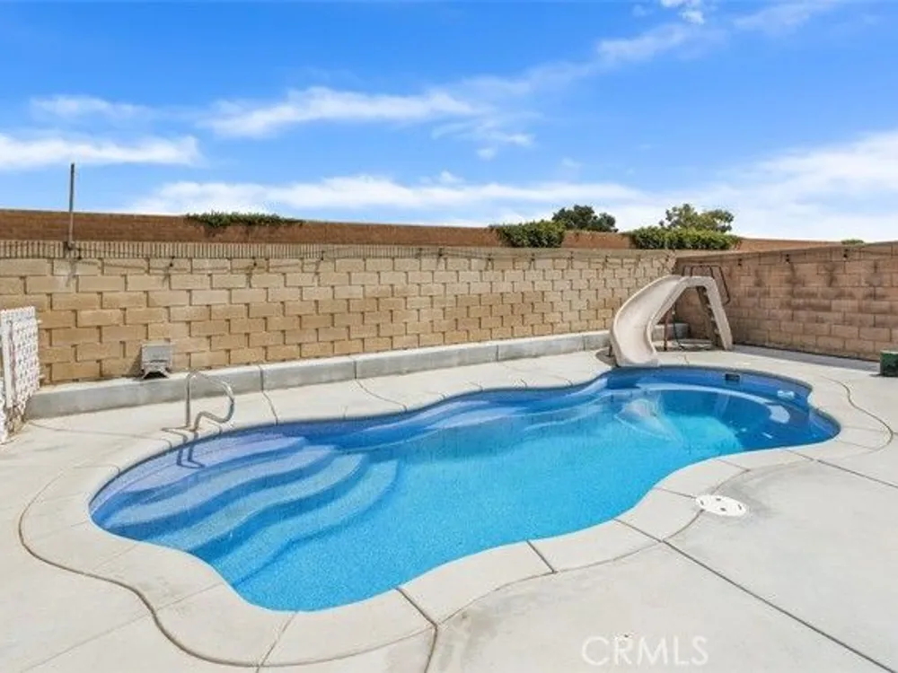 Beautiful POOL Home in a 55+ Senior Living Community! Discover the perfect balance of relaxation and recreation in this inviting senior community home. The expansive backyard is ideal for entertaining, complete with a sparkling newer pool featuring a slide, two covered patios for shade, and low maintenance artificial turf bordered by a block wall for privacy. Inside, the layout is designed with gatherings in mind, and INTERIOR FRESHLY PAINTED! A formal dining room and living room with neutral-toned laminate flooring set the stage for entertaining, while the cozy family room with a brick fireplace creates a warm retreat. The kitchen offers plenty of counter space with granite counter tops, a roomy breakfast bar, and stainless steel appliances. The primary bedroom provides peaceful views of the landscaped yard, mirrored closet doors, and plenty of natural light. The secondary bedroom is generously sized and conveniently located near the guest bath. With a newer roof, updated HVAC system, and excellent curb appeal, this home is move-in ready. Residents enjoy easy access to freeways, shopping, dining, and local churches, as well as community amenities including pickleball, fitness rooms, senior activities, and an association pool.