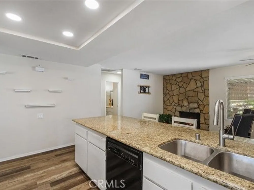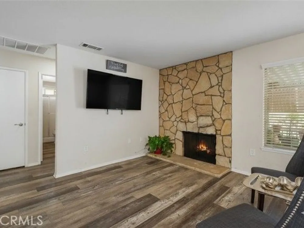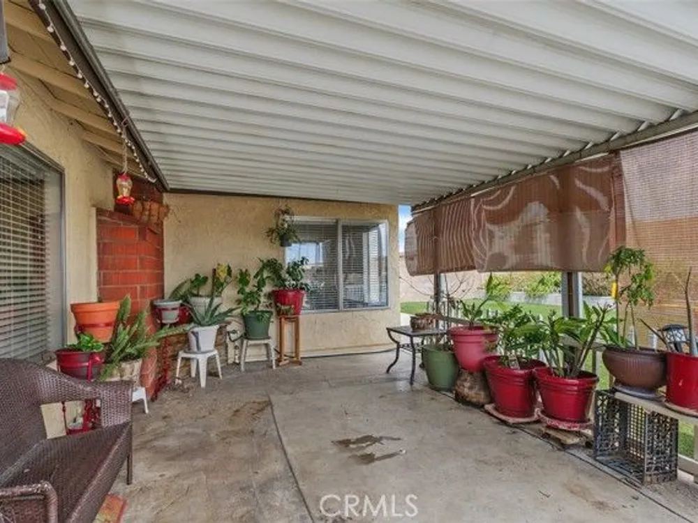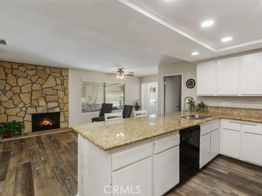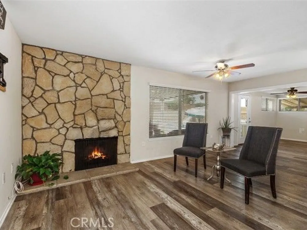 Beautiful POOL Home in a 55+ Senior Living Community! Discover the perfect balance of relaxation and recreation in this inviting senior community home. The expansive backyard is ideal for entertaining, complete with a sparkling newer pool featuring a slide, two covered patios for shade, and low maintenance artificial turf bordered by a block wall for privacy. Inside, the layout is designed with gatherings in mind, and INTERIOR FRESHLY PAINTED! A formal dining room and living room with neutral-toned laminate flooring set the stage for entertaining, while the cozy family room with a brick fireplace creates a warm retreat. The kitchen offers plenty of counter space with granite counter tops, a roomy breakfast bar, and stainless steel appliances. The primary bedroom provides peaceful views of the landscaped yard, mirrored closet doors, and plenty of natural light. The secondary bedroom is generously sized and conveniently located near the guest bath. With a newer roof, updated HVAC system, and excellent curb appeal, this home is move-in ready. Residents enjoy easy access to freeways, shopping, dining, and local churches, as well as community amenities including pickleball, fitness rooms, senior activities, and an association pool.