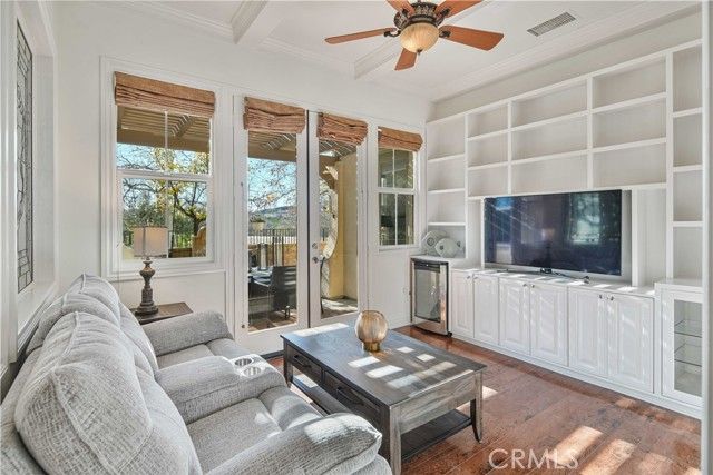 Welcome to this stunning Belcaro residence located in an elegant 55+ guard-gated community offering true resort-style living and No Mello Roos! Designed to live like a single-story, all essential living spaces are conveniently located on the main floor. A gated courtyard entry with a tranquil fountain and spacious seating patio warmly welcomes you. Inside, the expansive primary suite on the main level features two generous walk-in closets and a spa-like ensuite bath with dual vanities, a step-in shower, and a soaking tub. A beautifully appointed den/office with custom leaded glass provides the perfect work-from-home or reading retreat. The open-concept main living area seamlessly connects the living room, dining area, kitchen, and den, highlighted by a cozy fireplace, neutral tile flooring, fresh interior paint, recessed lighting, and plush neutral carpet. The first floor also includes a laundry room, guest bath, and direct access to the attached two-car garage. An additional patio off the den offers a perfect spot for BBQs and outdoor dining. An electric stair lift is included for added convenience if needed. Upstairs a spacious secondary suite features a large bedroom with ensuite bath plus a huge bonus room(could be 3rd bedroom with modification), ideal for visiting guests, extended family, or a live-in caregiver. This home is immaculate, light-filled, and beautifully maintained, and enjoys a highly desirable end-of-cul-de-sac location with a larger open grassy area and no homes directly facing it offering exceptional privacy. Belcaro’s impressive community amenities include a guard-gated entrance, private clubhouse with scheduled social activities, outdoor BBQ area with fireplace, pool and spa, bocce and pickleball courts, community garden, and library creating endless opportunities for recreation, connection, and relaxation.Ideally located near walking trails, shopping, dining, gardens, and convenient access to the 5 Freeway, this home offers the perfect blend of comfort, luxury, and lifestyle.
