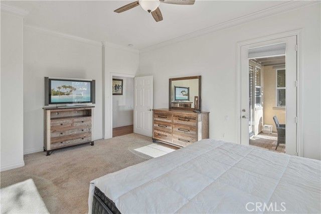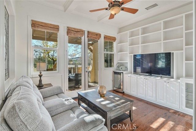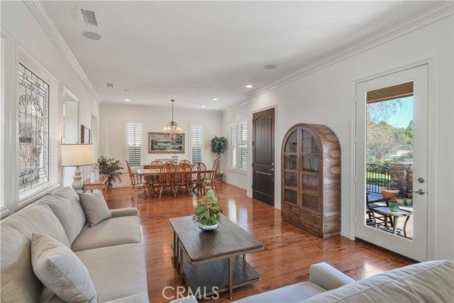 Welcome to this stunning Belcaro residence located in an elegant 55+ guard-gated community offering true resort-style living and No Mello Roos! Designed to live like a single-story, all essential living spaces are conveniently located on the main floor. A gated courtyard entry with a tranquil fountain and spacious seating patio warmly welcomes you. Inside, the expansive primary suite on the main level features two generous walk-in closets and a spa-like ensuite bath with dual vanities, a step-in shower, and a soaking tub. A beautifully appointed den/office with custom leaded glass provides the perfect work-from-home or reading retreat. The open-concept main living area seamlessly connects the living room, dining area, kitchen, and den, highlighted by a cozy fireplace, neutral tile flooring, fresh interior paint, recessed lighting, and plush neutral carpet. The first floor also includes a laundry room, guest bath, and direct access to the attached two-car garage. An additional patio off the den offers a perfect spot for BBQs and outdoor dining. An electric stair lift is included for added convenience if needed. Upstairs a spacious secondary suite features a large bedroom with ensuite bath plus a huge bonus room(could be 3rd bedroom with modification), ideal for visiting guests, ex