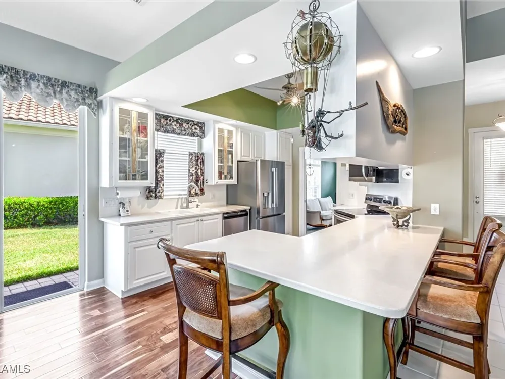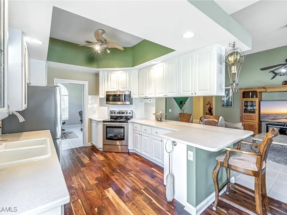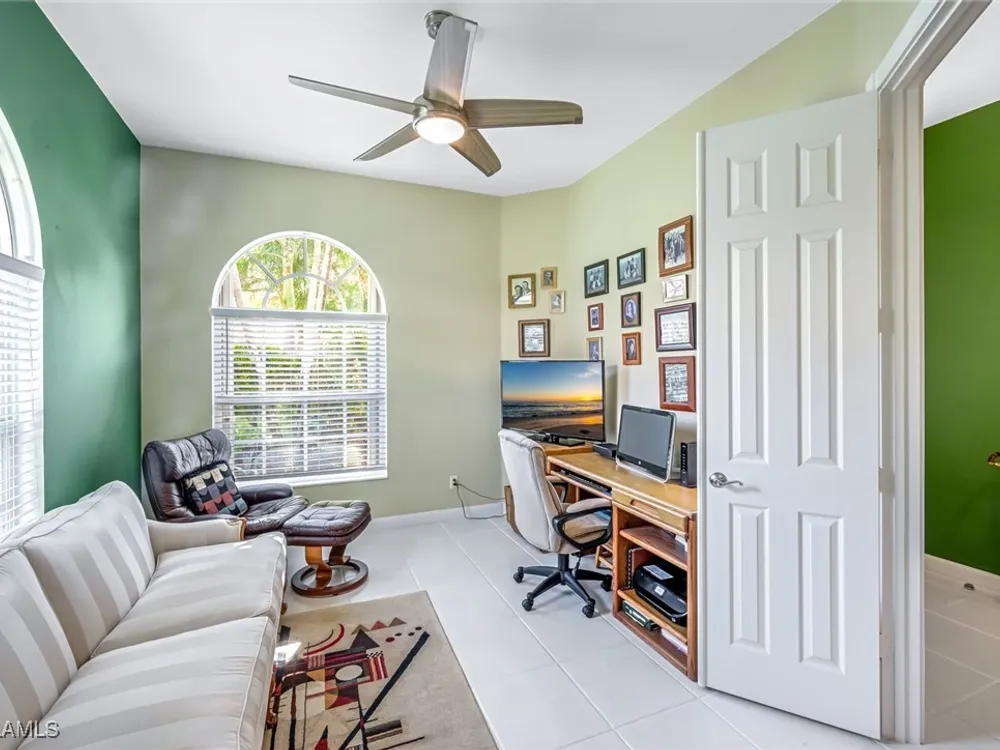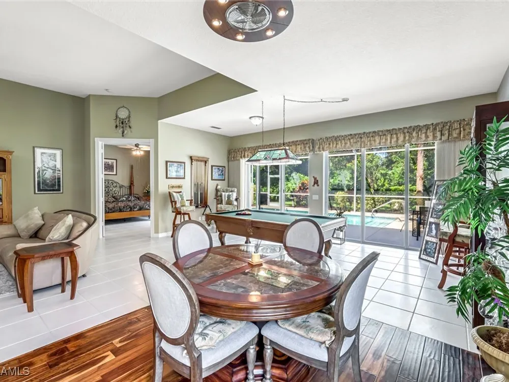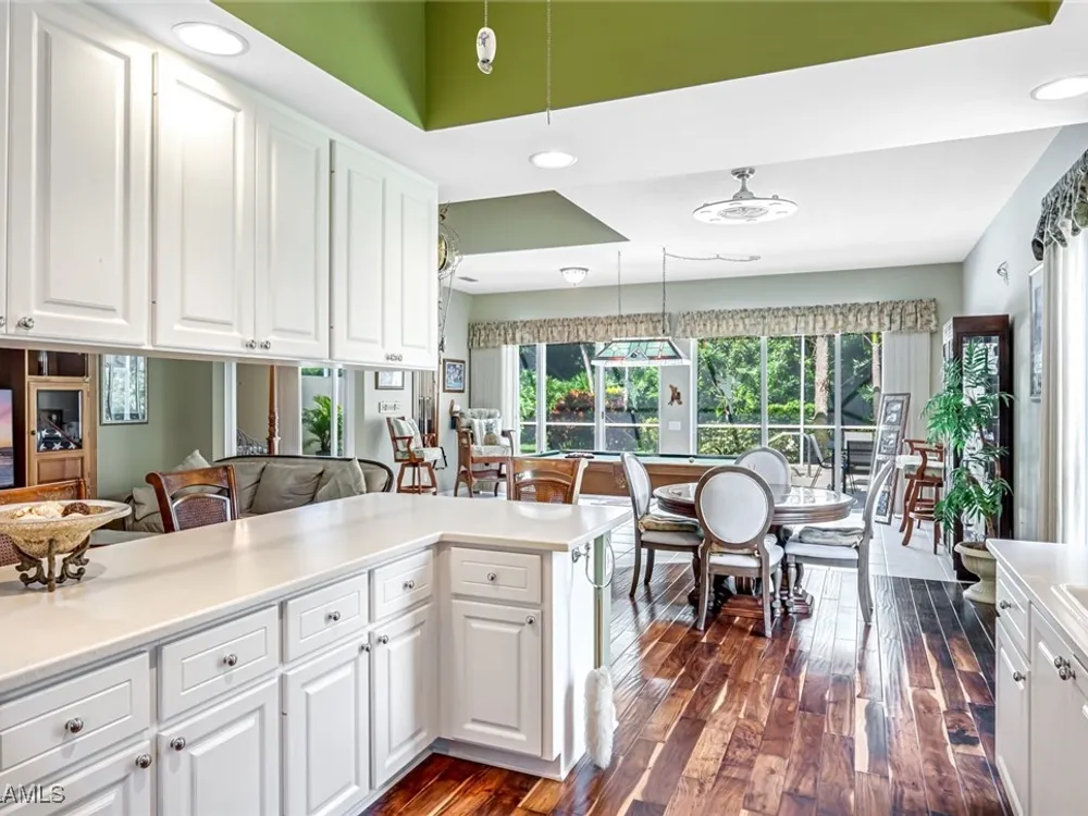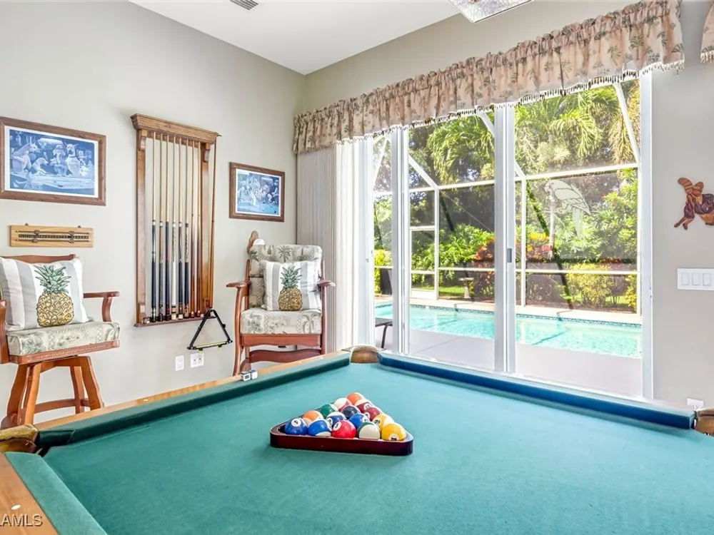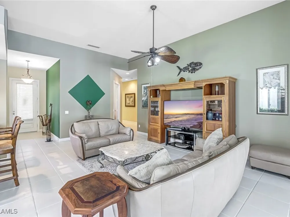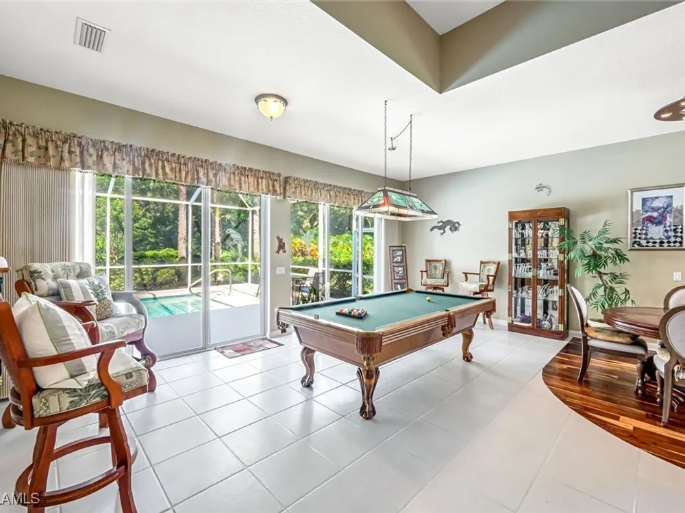 Feast your eyes on this Gorgeous Oakmont model 3 Bedroom and a Den home with the rarely available Extended Living area, which is conveniently located near the Front Entry Gate and only a short stroll to the Town Center. This home features tile throughout the living areas and a high-quality wood floor in the chef’s kitchen complete with stainless appliances and Corian countertops. Enjoy entertaining your family and friends by your own private heated pool adorned by lush tropical landscaping. There are upgraded accordion shutters for your peace of mind. The Washer and Dryer and Refrigerator were purchased in 2025. Located in one of Naples' most sought-after neighborhoods, residents enjoy access to exclusive amenities including Resort style pool, lap pool, Towncenter, Tennis, pickleball, bocce, fitness center, Restaurant, Beauty and Nail Salons, Car Wash, Gas Station and Post Office. Close to Naples’ sandy beaches, wonderful shopping, and dining, every convenience is within reach. LOW FEES include Amenities Galore, Landscape Care and HDTV and High-Speed Internet. Relax and enjoy the Naples lifestyle, come and see for yourself what Resort Living is like.