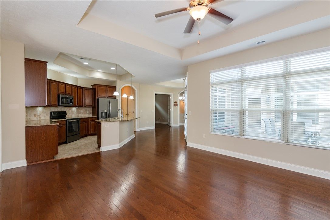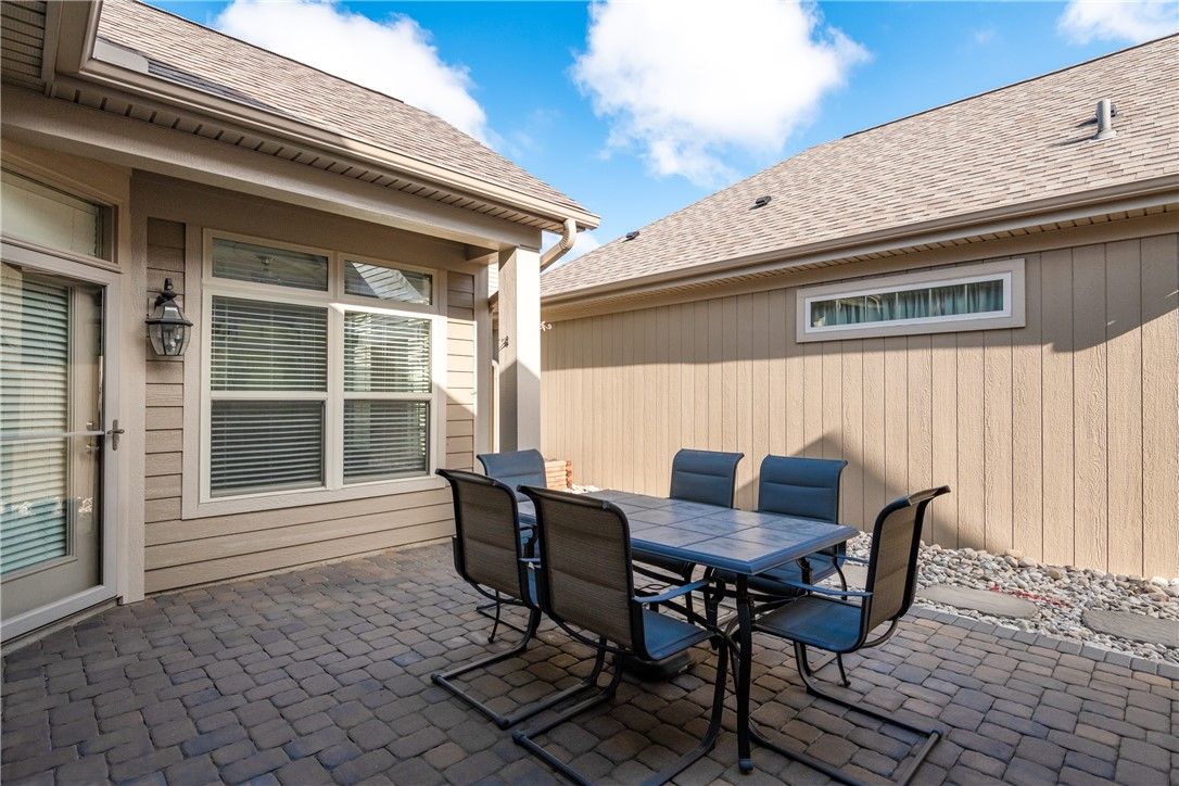 Discover unparalleled comfort and sophisticated living within this distinguished Beavercreek condominium, meticulously designed for an elevated lifestyle. This exquisite single-story abode offers 2,063 square feet of thoughtfully arranged living space, ideal for relaxation and entertaining. The expansive, open layout cultivates an inviting ambiance for tranquil evenings and social gatherings. Enjoy modern convenience with a meticulously appointed kitchen featuring a dishwasher, garbage disposal, microwave, range, refrigerator, and a water softener. The kitchen further boasts rich cabinetry, granite countertops, and a functional island, seamlessly connecting to other living areas. The inviting living area is enhanced by a warm fireplace and rich hardwood flooring, creating a comforting atmosphere. With two generously proportioned bedrooms and two full bathrooms, this home assures paramount comfort and privacy. The primary bathroom offers dual vanities and a tiled walk-in shower. A dedicated laundry room provides efficiency for household chores. Step beyond to a private, gated stone patio, offering an exclusive outdoor retreat. Graced with a desirable Beavercreek neighborhood locale, this property provides effortless access to local amenities and a vibrant community atmosphere. This condominium represents a singular opportunity to embrace a refined and effortlessly luxurious lifestyle.