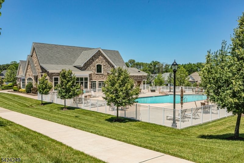Experience the best of 55+ living in this expanded Bridgeford model, situated on one of Tapestry at Montgomery's largest and most desirable lots. Perfectly positioned directly across from the clubhouse, pool, and tennis courts, this home offers immediate access to community amenities while maintaining a sense of quiet seclusion. The bright interior is thoughtfully designed for both comfort and functionality. The front entry is flanked by living and dining rooms perfect for formal entertaining. A granite-clad kitchen, with generous cabinetry and a center island, serves as the heart of the home; it opens to the spacious family room featuring vaulted ceiling, gas fireplace, custom built-ins, surround sound and sliders that lead out to a private paver patio. This outdoor space provides a peaceful retreat with views of mature trees and a tranquil bio-basin, offering a level of privacy rarely found in the community. The first-floor primary suite features dual walk-in closets, a spa-like en-suite bath, and laundry. Upstairs, a versatile custom loft with built-in cabinetry provides the ideal home office or library, accompanied by two additional bedrooms and a full bath for guests. Practical highlights include a two-car garage, full daylight basement, a new HVAC system, and energy-efficient solar panels. Located just minutes from Princeton and the new Montgomery Promenade (openings scheduled for summer), this home combines sophisticated comfort with a premier Skillman location.