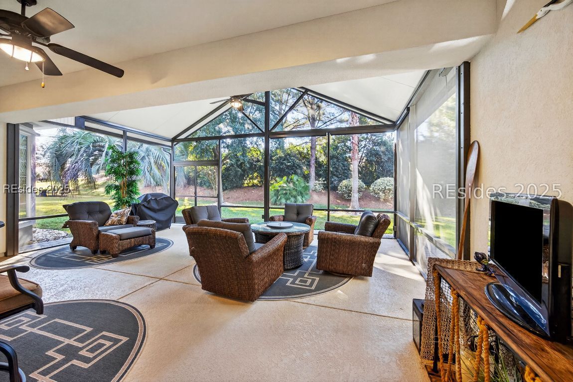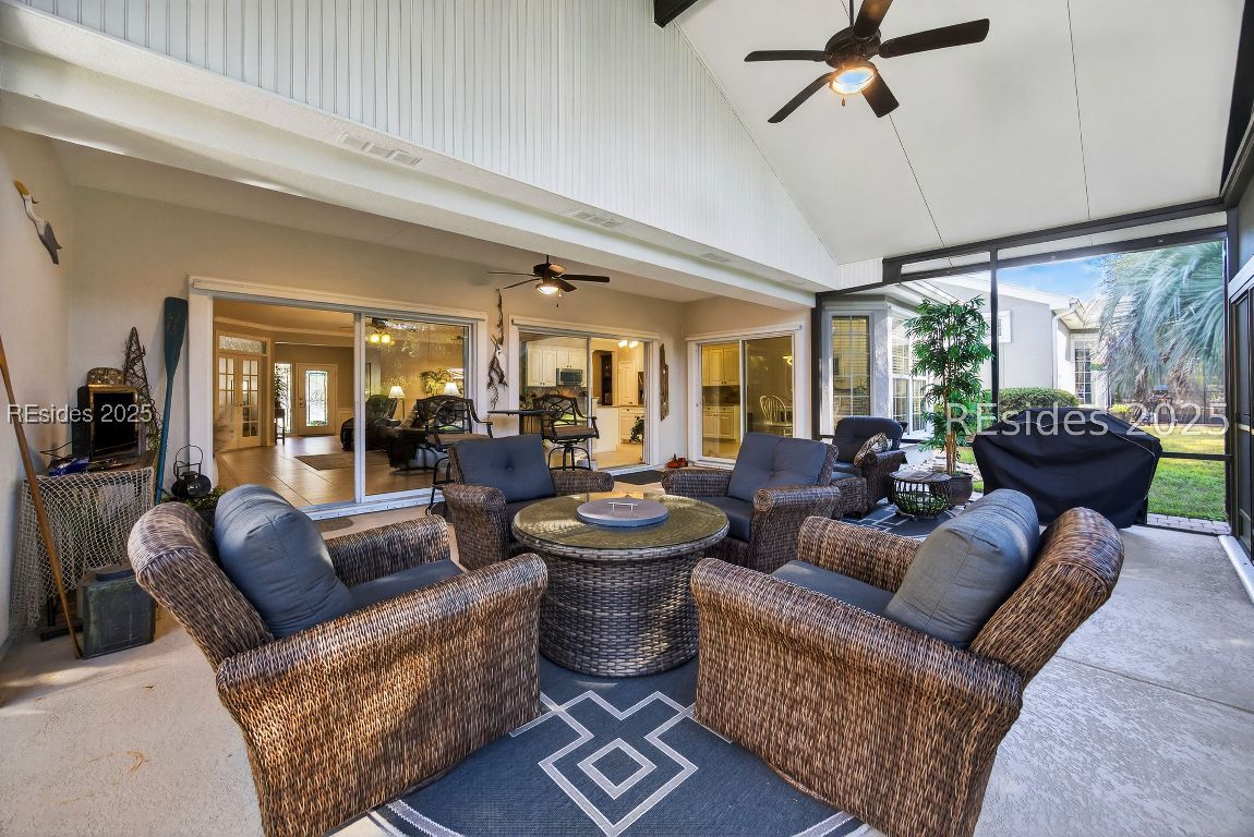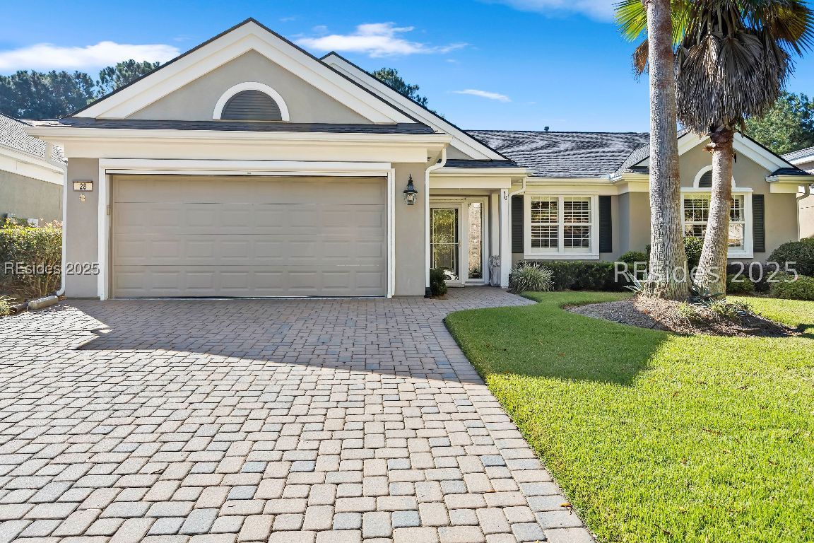Here's your opportunity to own one of Sun City Hilton Head's most popular floor plans - the Dogwood model, beautifully maintained and thoughtfully upgraded throughout. This 2-bedroom, 2-bath home with a den combines comfort, style, and functionality in one of Bluffton's most desirable active-adult communities. From the moment you arrive, you'll notice the attention to detail - an oversized paver driveway and entry, fresh 50-year roof (2020), solar attic fan (2019), permanent attic stairs, and a Marathon hot water heater designed for efficiency and longevity. The home's exterior and landscape reflect pride of ownership, offering wonderful curb appeal on a quiet, well-established street. Inside, you'll find a light-filled, open layout with fresh interior paint, smooth ceilings, crown molding, window casings, and plantation shutters throughout. The spacious kitchen features a butler's pantry, modern appliances, and ample cabinet space, making it ideal for entertaining or everyday living. The bay windows in the breakfast area and primary suite bring in beautiful natural light, creating a warm, inviting atmosphere. The den provides the perfect space for a home office, hobby room, or guest area, while the large covered and screened lanai extends your living space outdoors - perfect for relaxing and enjoying the Lowcountry lifestyle year-round. Additional features include ceiling fans, upgraded fixtures, and thoughtful storage solutions. Every detail has been carefully maintained, making this home truly move-in ready. Living in Sun City Hilton Head means enjoying an unmatched lifestyle with resort-style amenities, including three golf courses, multiple fitness centers, indoor and outdoor pools, pickleball and tennis courts, walking trails, restaurants, and over 100 social clubs and activities. Conveniently located near Bluffton's shopping, dining, and beaches, Sun City offers everything you need for an active, connected, and fulfilling life. This Dogwood model has it all - location, condition, and upgrades.