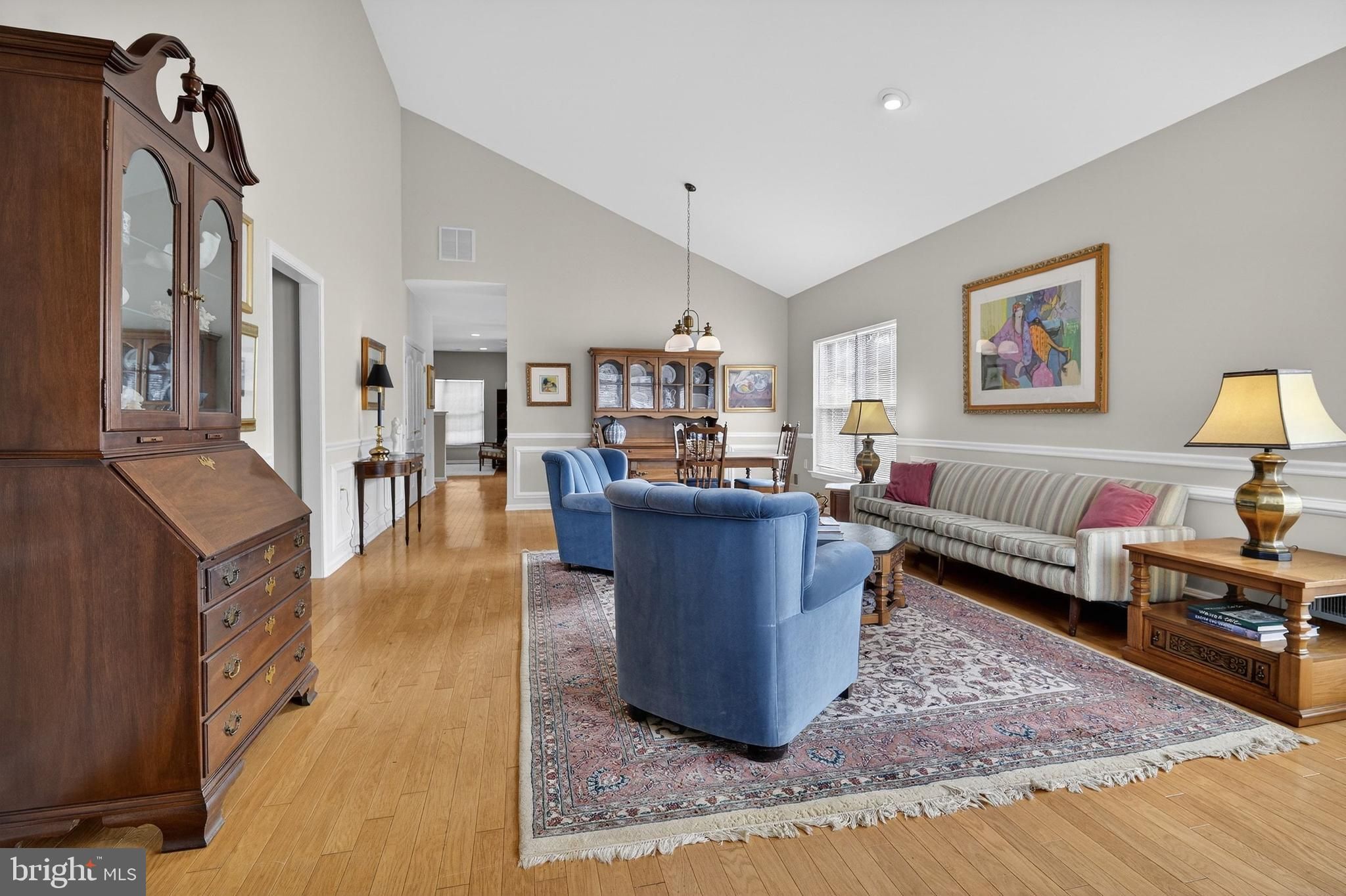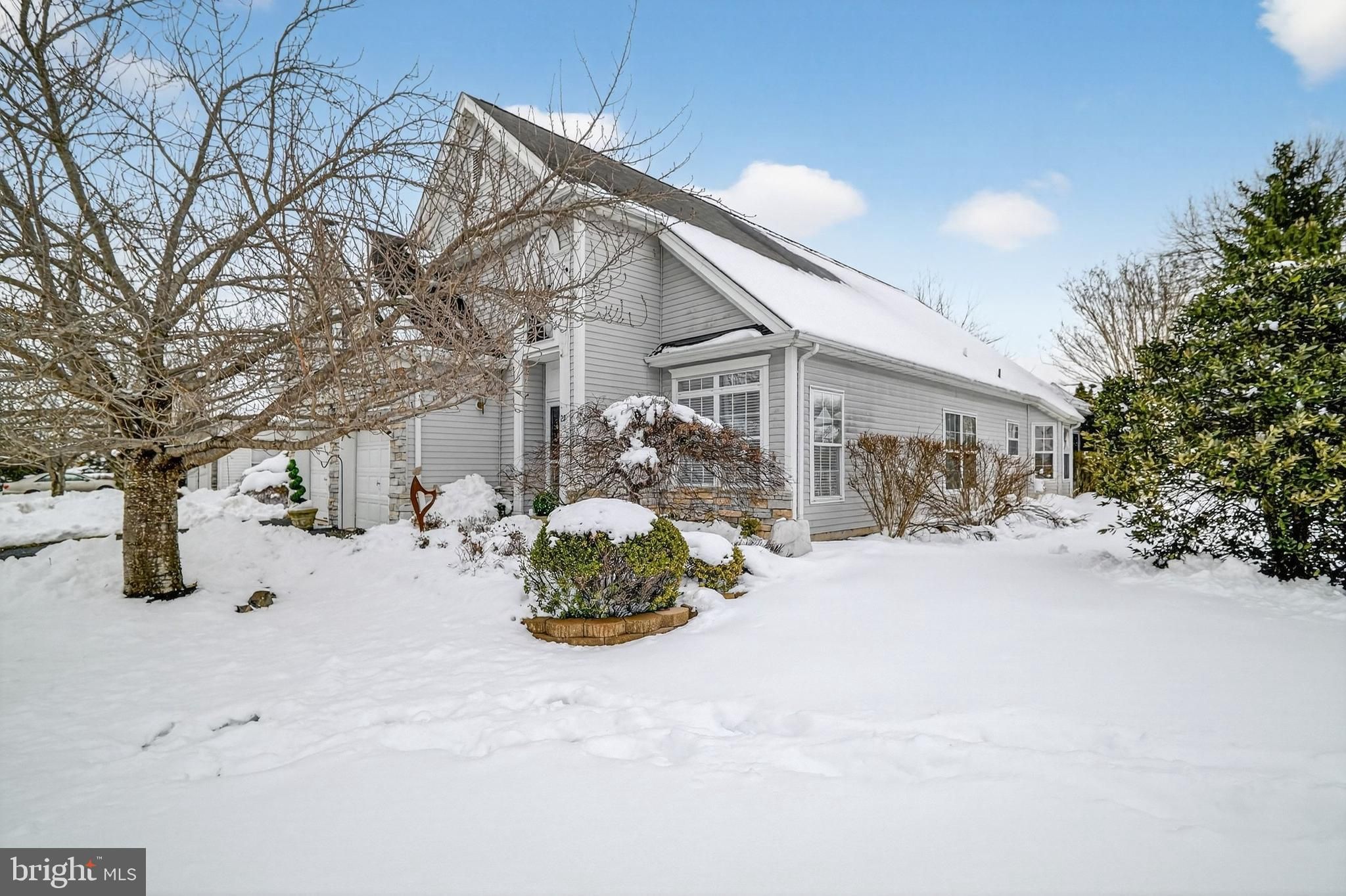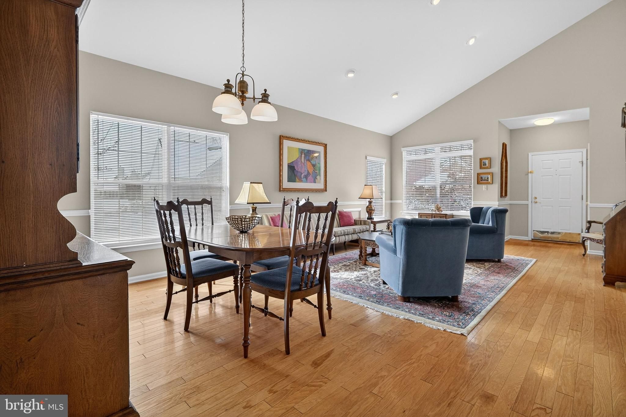 Welcome to this beautifully maintained Coventry model, ideally situated on a corner lot in the highly desirable 55+ community of Village Grande. Freshly painted and with a brand new roof being installed, this home offers both peace of mind and move-in-ready appeal. Step inside to discover an elegant and thoughtfully designed layout. The open-concept living and dining areas feature gleaming hardwood floors, & vaulted ceilings creating a warm and welcoming space for entertaining or everyday comfort. The kitchen is a standout with a sunlit dining area, center island, and a walk-in pantry—perfect for the home chef. The kitchen flows seamlessly into the family room which offers a comfortable gathering space. A bright and inviting sunroom home provides the perfect space for morning coffee, reading, or simply enjoying the natural light year-round and opens to a lovely patio bordered by mature evergreens—an ideal setting for relaxing and enjoying a bit of privacy. The primary suite offers two generous walk-in closets and an ensuite bath with dual vanities, an oversized shower with seat, soaking tub, and ample linen storage. A second bedroom, full bath, and a convenient laundry room complete the main level. Enjoy all that Village Grande has to offer—indoor and outdoor pools, fitness center, sauna, tennis courts, clubhouse, billiards, library, and scenic walking paths. Conveniently located near shopping, dining, NJ Transit, and the NJ Turnpike, this home offers the perfect blend of comfort, low-maintenance living, and an active lifestyle.