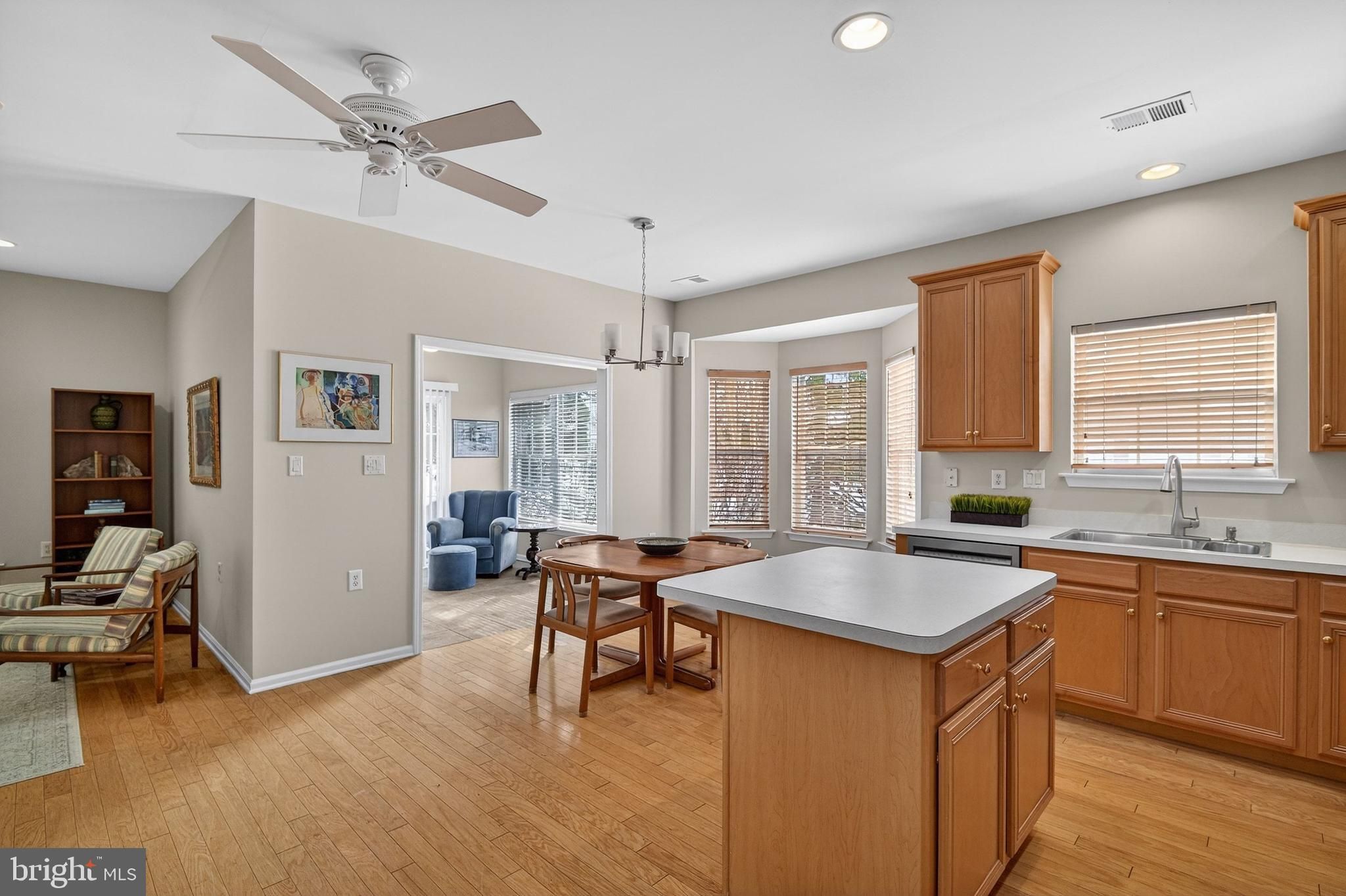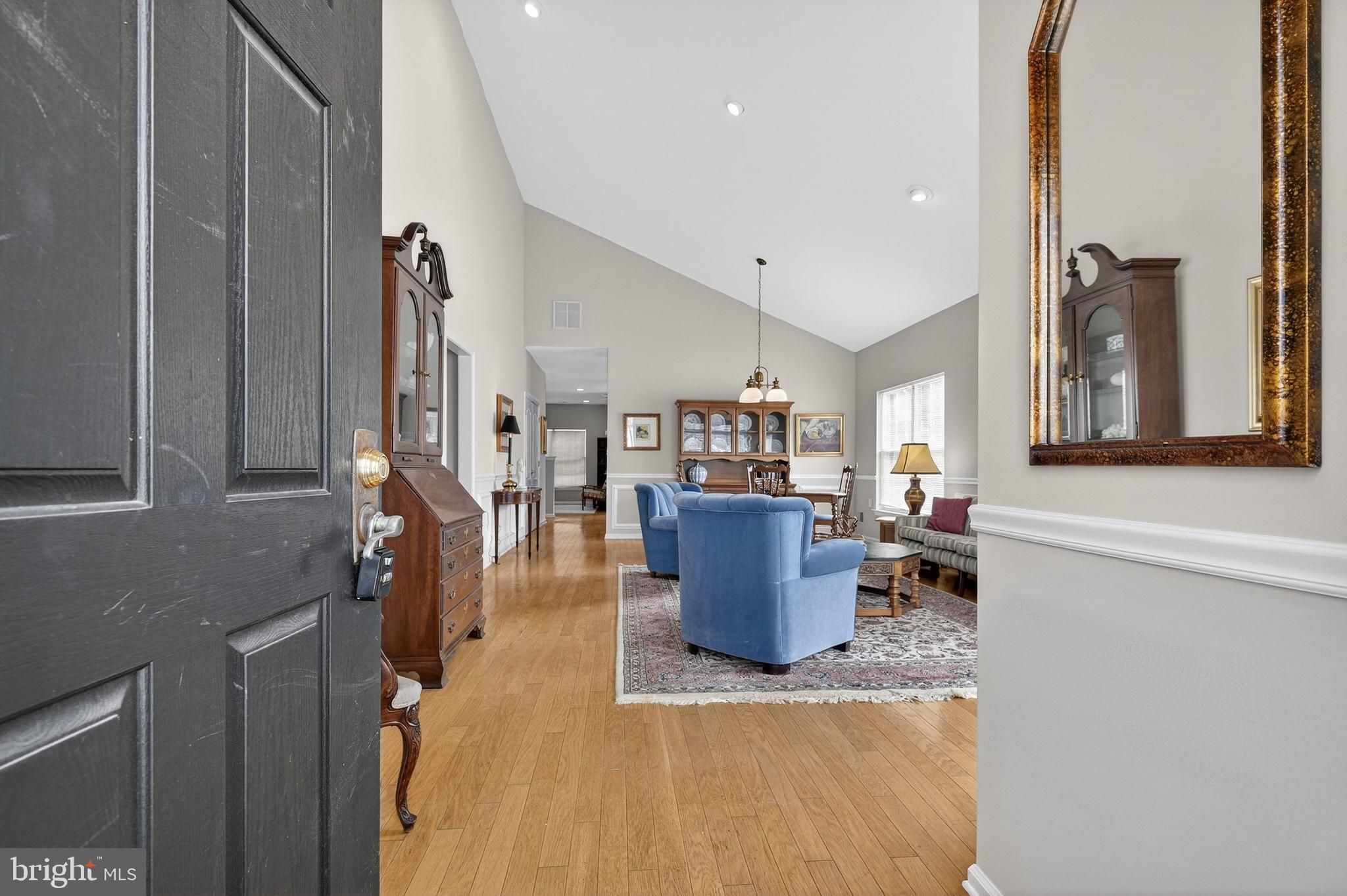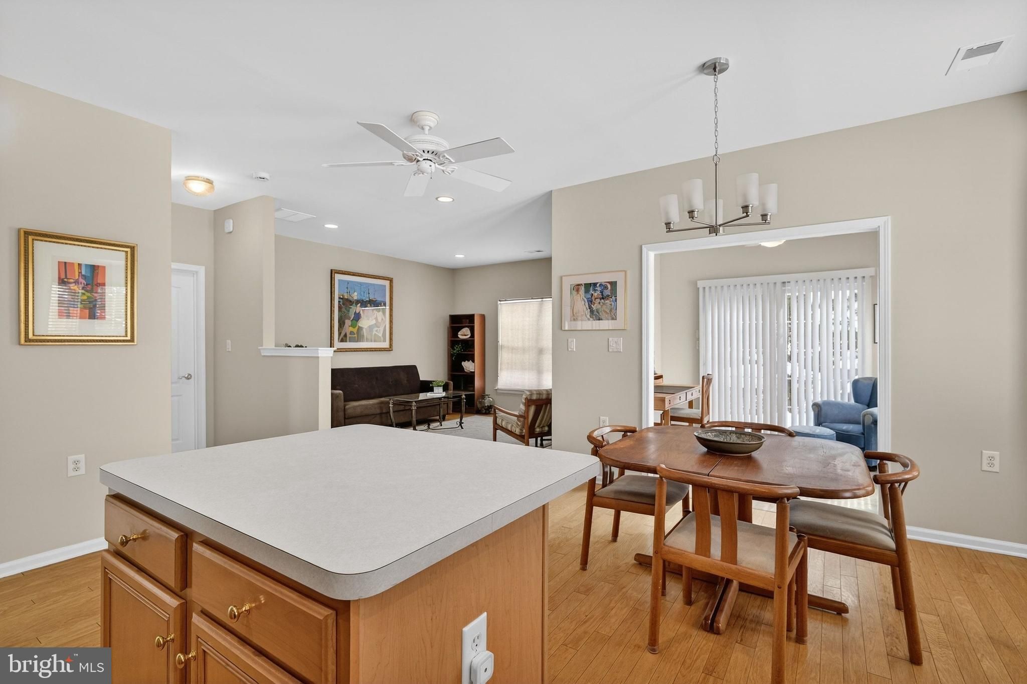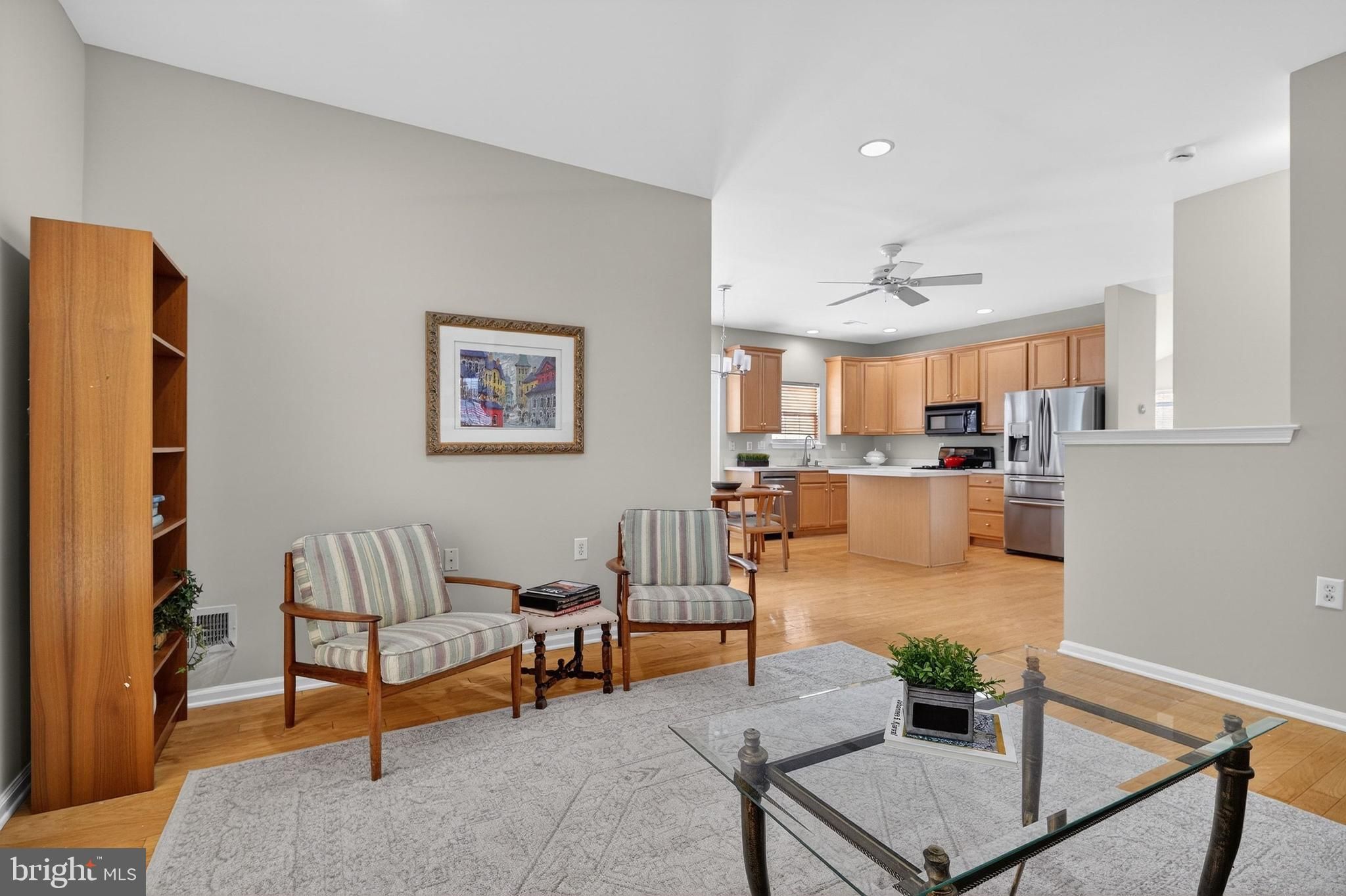 Welcome to this beautifully maintained Coventry model, ideally situated on a corner lot in the highly desirable 55+ community of Village Grande. Freshly painted and with a brand new roof being installed, this home offers both peace of mind and move-in-ready appeal. Step inside to discover an elegant and thoughtfully designed layout. The open-concept living and dining areas feature gleaming hardwood floors, & vaulted ceilings creating a warm and welcoming space for entertaining or everyday comfort. The kitchen is a standout with a sunlit dining area, center island, and a walk-in pantry—perfect for the home chef. The kitchen flows seamlessly into the family room which offers a comfortable gathering space. A bright and inviting sunroom home provides the perfect space for morning coffee, reading, or simply enjoying the natural light year-round and opens to a lovely patio bordered by mature evergreens—an ideal setting for relaxing and enjoying a bit of privacy. The primary suite offers two generous walk-in closets and an ensuite bath with dual vanities, an oversized shower with seat, soaking tub, and ample linen storage. A second bedroom, full bath, and a convenient laundry room complete the main level. Enjoy all that Village Grande has to offer—indoor and outdoor pools, fitness center, sauna, tennis courts, clubhouse, billiards, library, and scenic walking paths. Conveniently located near shopping, dining, NJ Transit, and the NJ Turnpike, this home offers the perfect blend of comfort, low-maintenance living, and an active lifestyle.