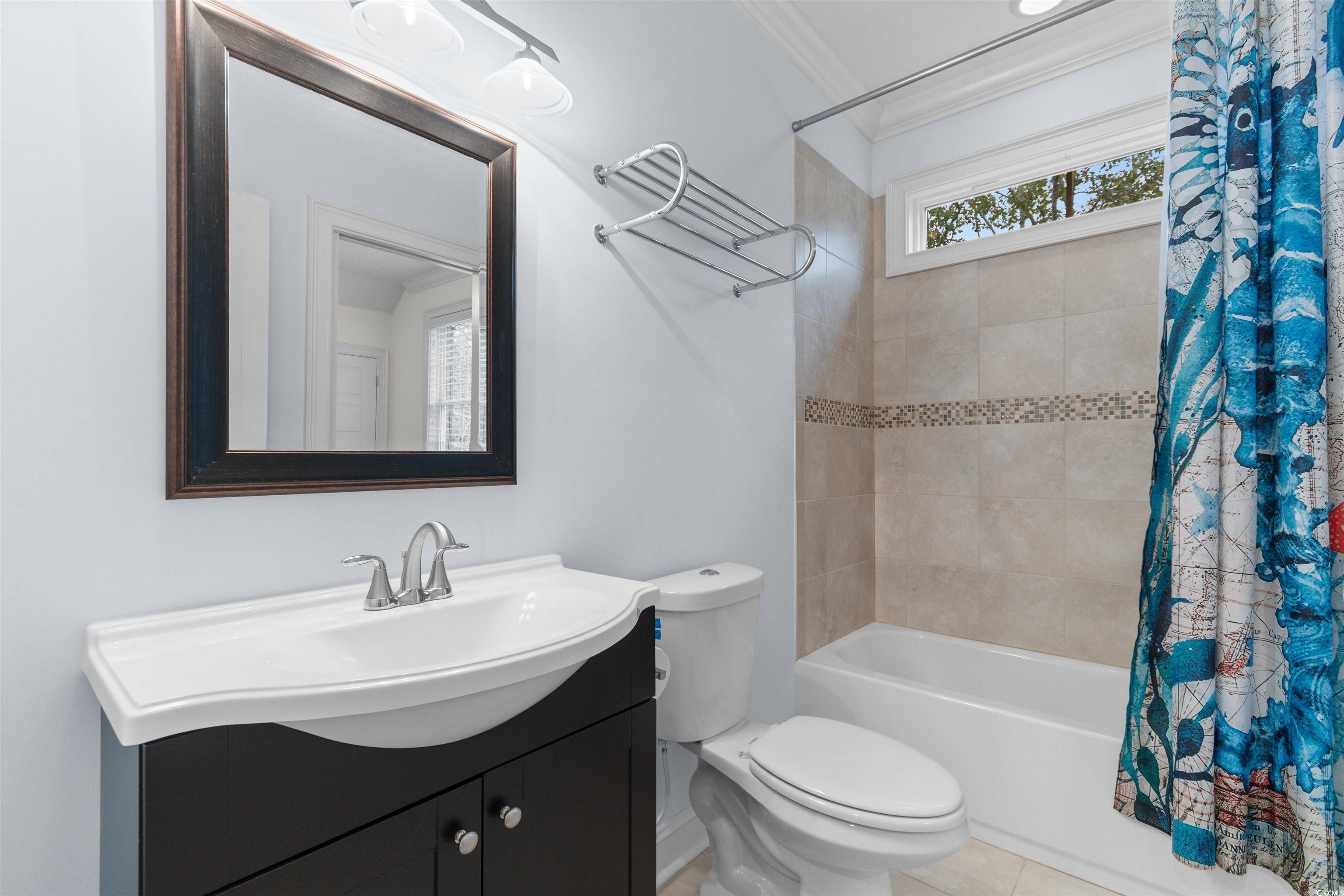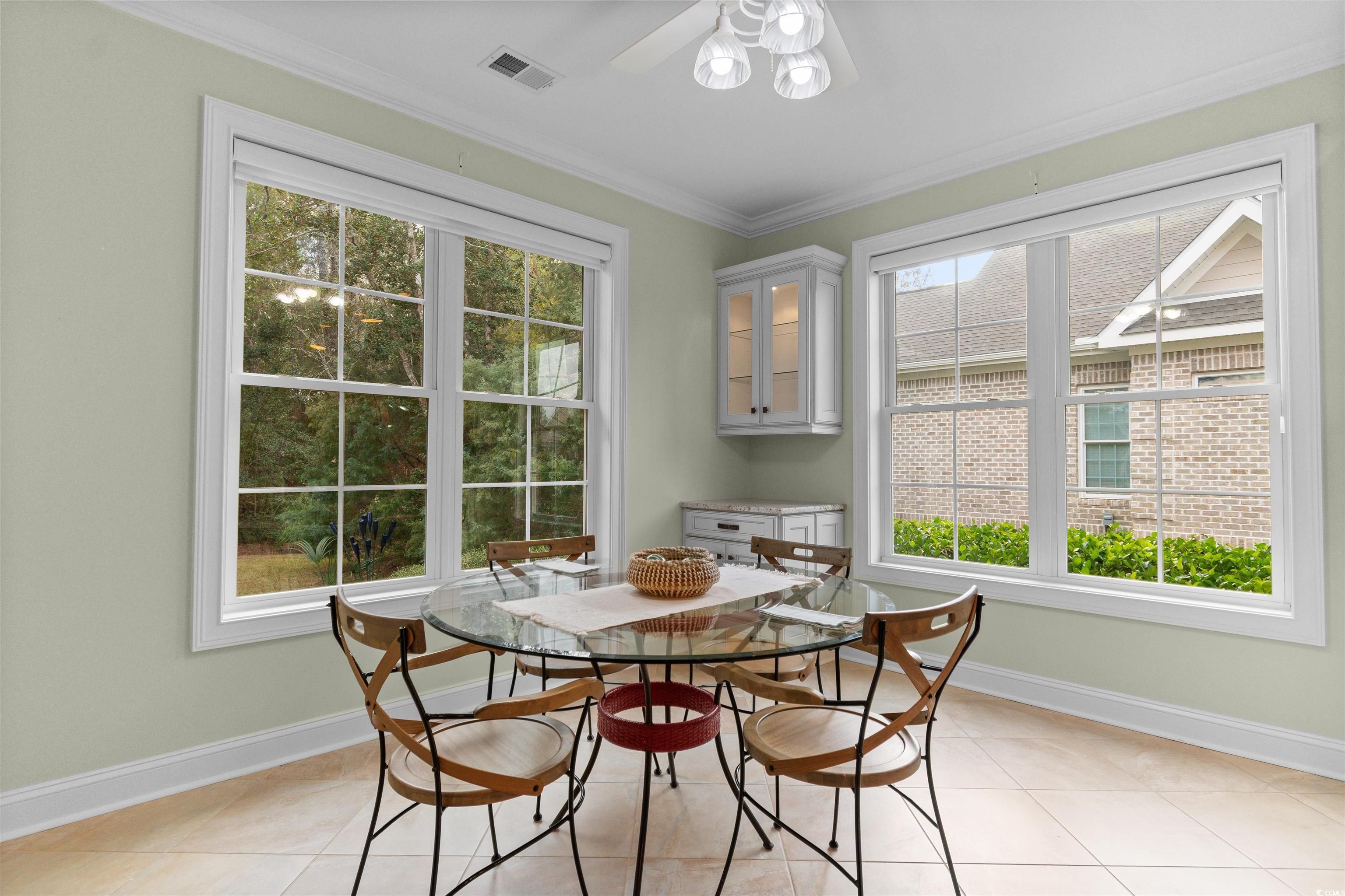 Imagine coming home to a place that feels like a retreat—where natural light pours through tall windows, the scent of dinner drifts from an inviting kitchen, and the backyard delivers calm seclusion with a spacious porch perfect for gatherings. This custom-built Quest Properties home in Waverly Bay blends craftsmanship with comfort, creating a refined yet welcoming space ideal for everyday living and effortless entertaining. Step inside to find crown molding throughout, bullnose corners, and cathedral ceilings that elevate the home’s elegant feel. The newly painted living area centers around a cozy natural gas fireplace—an inviting focal point to unwind or host guests—while the formal dining room features classic wainscoting for timeless charm. The main-floor primary suite offers convenience and luxury with dual walk-in closets and a spacious two-head tiled shower. Upstairs, two guest bedrooms each boast private ensuites, providing comfort and privacy for family or visitors. A flexible bonus room—perfect as an office, fourth bedroom, or media space—is pre-plumbed for a wet bar or additional half bath, allowing you to tailor the space to your lifestyle. Enjoy year-round relaxation in the large four-seasons porch overlooking a wooded backdrop. The yard is generous and pool-ready, with a concrete pad for grilling or gathering, plus an oversized garage, hot/cold outdoor shower, and a 220-amp outlet ready for a hot tub. Located in the gated community of The Bays, you’ll enjoy exceptional amenities including two pools (one a lap pool), a clubhouse with fitness room, newly painted pickleball courts, tennis court, basketball, volleyball, playground, pavilion and picnic area, firepit gathering space, and open green space for outdoor fun, pets, and play. In the sought-after Prince Creek area of Murrells Inlet, you’ll be near the MarshWalk, golf, beaches, dining, and everyday conveniences. Don’t miss the chance to make this impeccably maintained, move-in-ready home your own—schedule your showing today.
