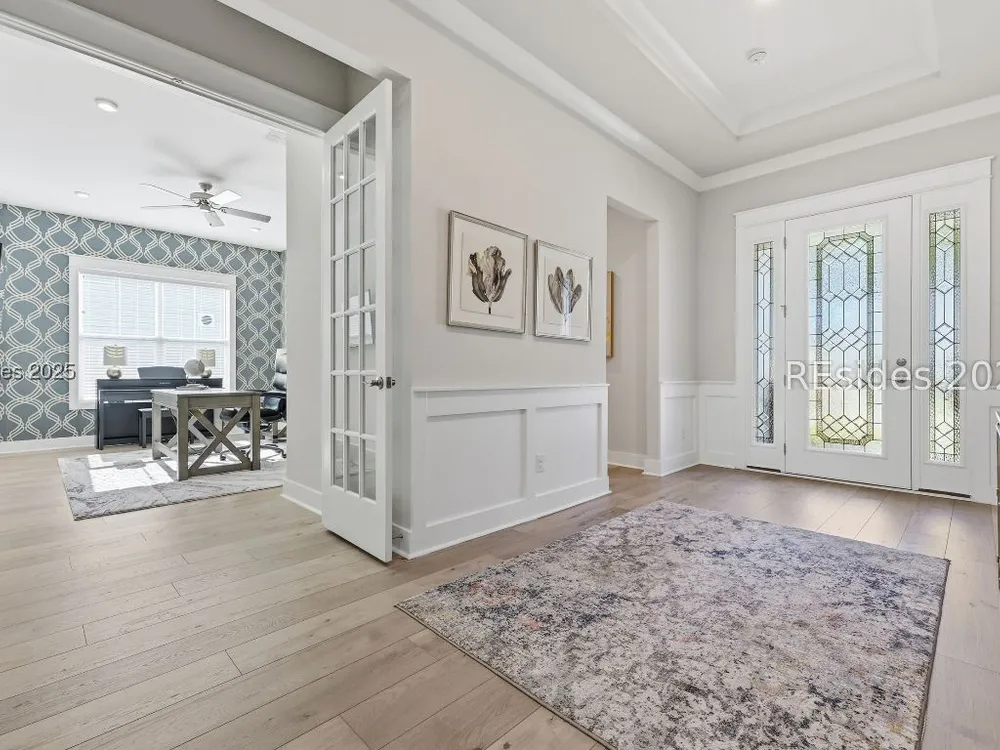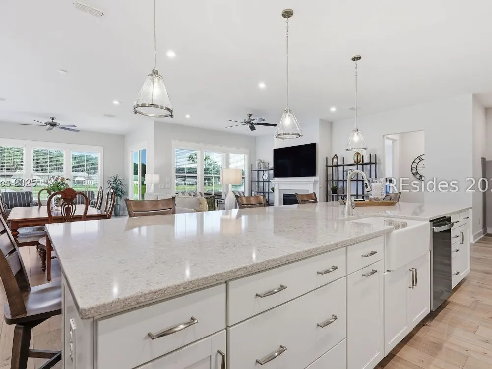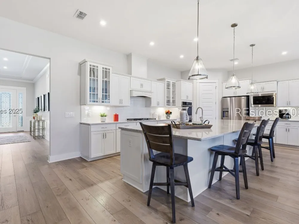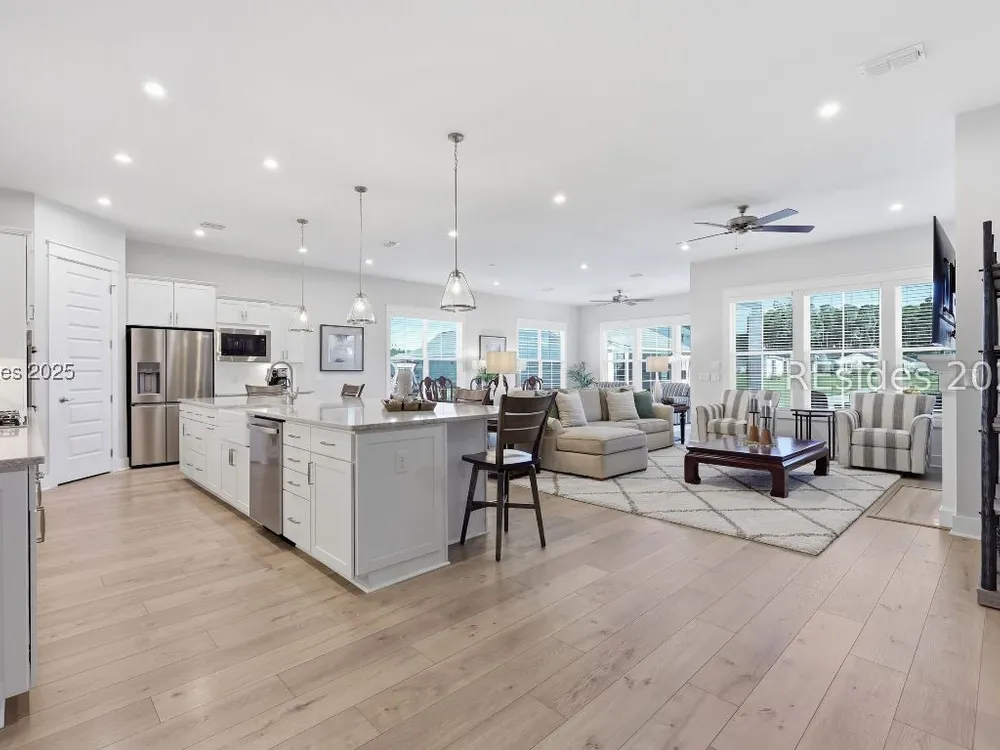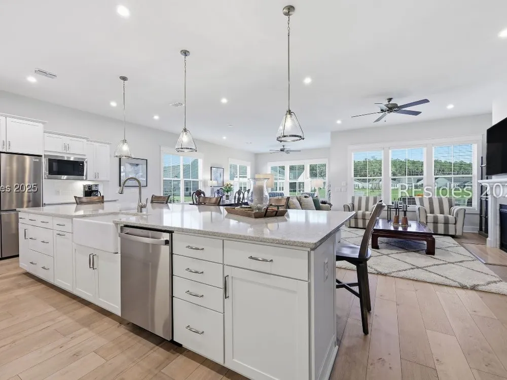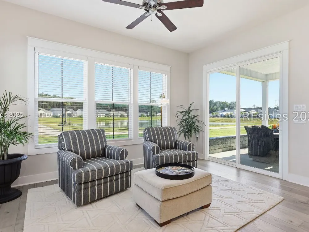 Why wait to build when perfection is ready now? This stunning San Sebastian model is filled with thoughtful upgrades and designer touches. Perfectly positioned on a premier homesite with serene lagoon and fountain views, this light-filled home offers elegance, comfort, and easy livability. The flexible layout includes an office or den, while the spacious primary suite features a large walk-in shower and generous closet. With tall ceilings, a grand entryway, neutral palette, and high-end finishes throughout, this home cannot be built again for this price. Enjoy all the benefits of new without the wait-established neighbors, no construction traffic, and an ideal location in fast-growing New Riverside near shopping, dining, spa, and more. Close to HHI, Bluffton & Savannah. WELCOME HOME!