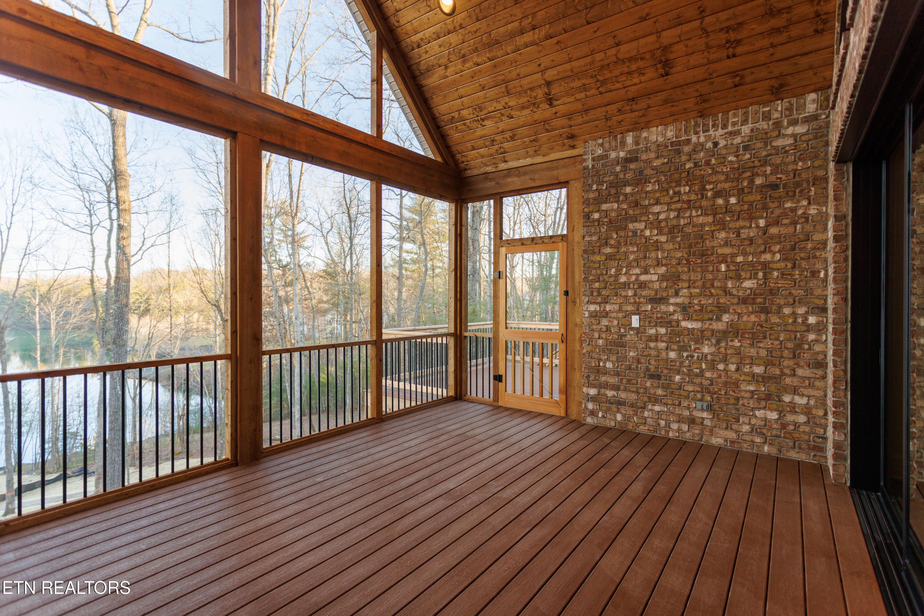 Experience the best of Fairfield Glade living in this stunning, brand-new lakefront home with a private dock. Built by Fairfield Glade's premier builder, this French Country home is located on a peaceful cul-de-sac with incredible lake and mountain views. The main level features an open, flowing layout designed for easy living. The spacious Great Room and screened porch provide a perfect vantage point for enjoying the views. The main-level Primary Suite features a beautiful Roman-style walk-in shower, providing a spa-like experience. Everything you need is on the main floor, including a second bedroom, an oversized garage, and a large laundry room. The lower level offers a private space for guests with a bedroom, en-suite bath, and a family room with a built-in bar. A multi-slide door leads to the lower patio, providing direct access to the lake. This home combines elegant design with a practical layout, making it an ideal choice for a comfortable and convenient retirement.