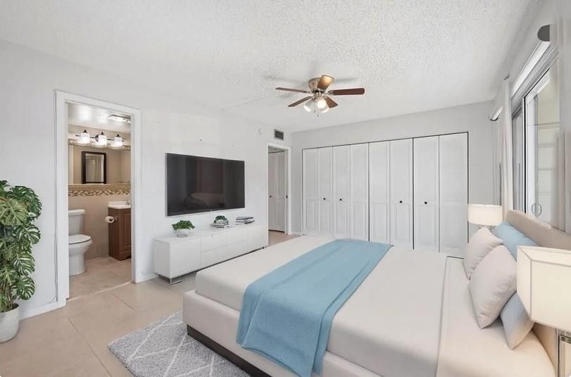 Spacious 1-bedroom, 1.5-bathroom condo conveniently located on the first floor in the gated 55+ community of Century Village. Situated near the beach, shopping, and dining, this residence offers both comfort and convenience. The condo features tile flooring throughout, a modern white kitchen with granite countertops, and stainless steel appliances. Enjoy your private screened in patio from your primary suite. The laundry room is conveniently located just steps from the unit. Community amenities include a clubhouse, swimming pool, tennis courts, courtesy bus service, and much more.