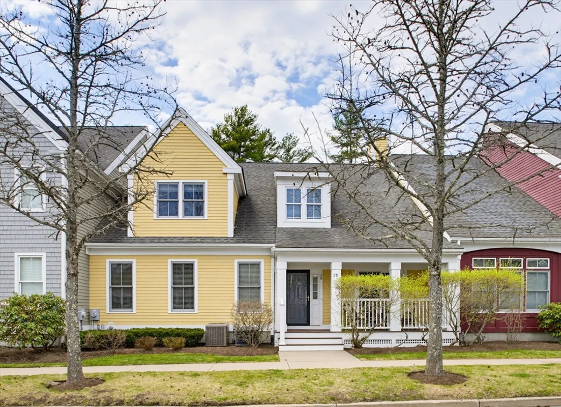 Presenting "The Dover" at Red Mill Village. From the front Farmer's Porch to the rear Private Patio that over looks the conservation land, you will love this "Dover" home style. Offering an Open Concept floor plan design featuring a large Kitchen with eat in-Dining Area, fine cabinetry, granite c-tops & ss appliances. An expansive Dining Room opens to the Living Room which features a gas fireplace surrounded by built ins and boasts two stories of ceiling height with multiple widows. Out of the ordinary American Cherry Hardwood Floors. A large 1st Floor Main Bedroom features a walk-in closet & en-suite Bath. 1st floor also hosts the Laundry area. The second floor features an over sized Loft with addnl built-ins, ideal for a Den AND a Home Office. 2 Car garage & driveway for rare additional off street parking. The Patio is enclosed and very private. Minutes from I495 with easy access to commuter rail. Enjoy a maintenance free lifestyle & heated in-ground pool this summer! Age 50+ is OK