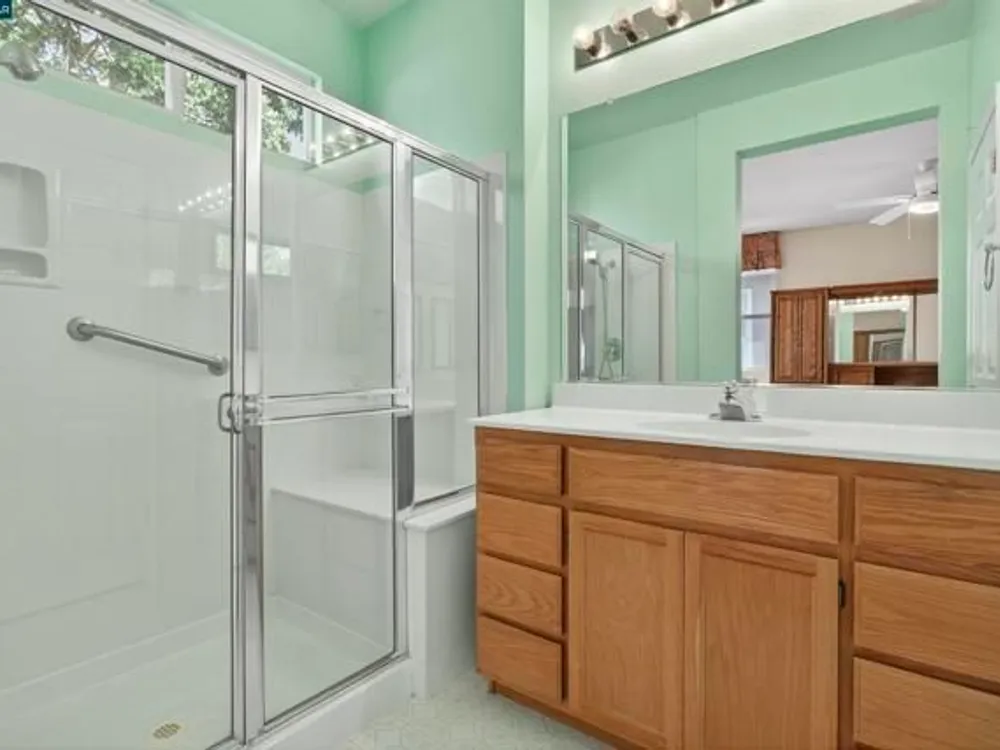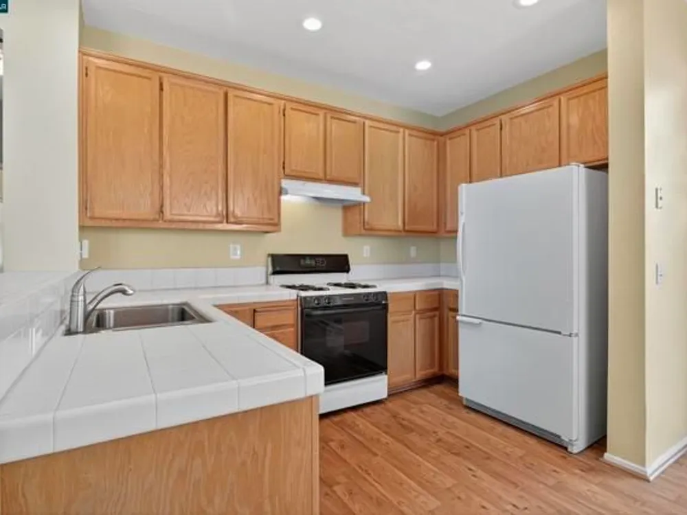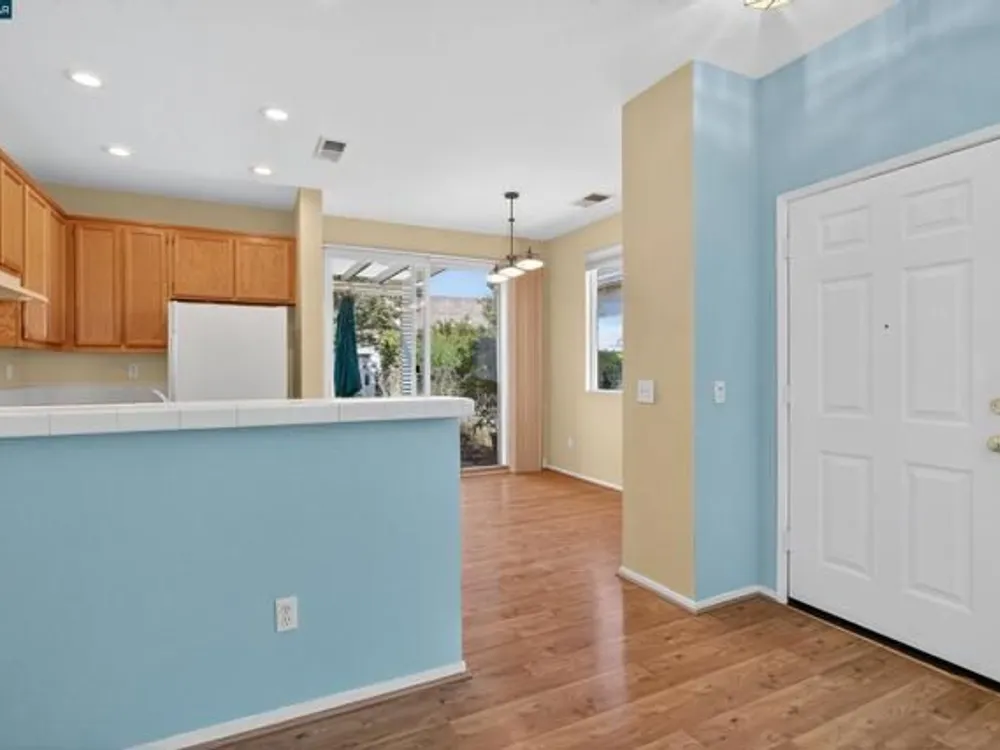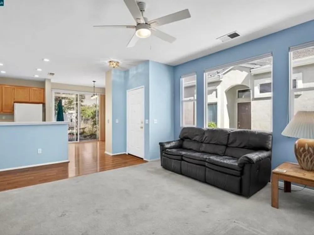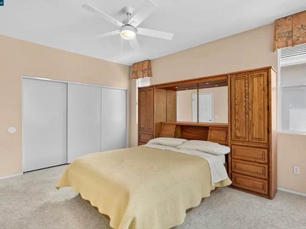 Discover comfort and convenience in this well-maintained 2-bedroom, 2-bathroom home offering 1,048 sq ft of living space. Located in a desirable gated senior community, this property features an open floor plan, an eat-in kitchen with classic tile countertops, and laminate flooring in the kitchen and hallway. Enjoy year-round comfort with central AC and heat, dual-paned windows, and newly installed ceiling fans in the living room and bedroom. The attached 2-car garage provides secure parking and extra storage. Relax or entertain in the backyard with a patio area and space for your own garden. This home is ideally located near the community pool and tennis courts, and just minutes from Brentwood Golf Club, local shopping, and freeway access.