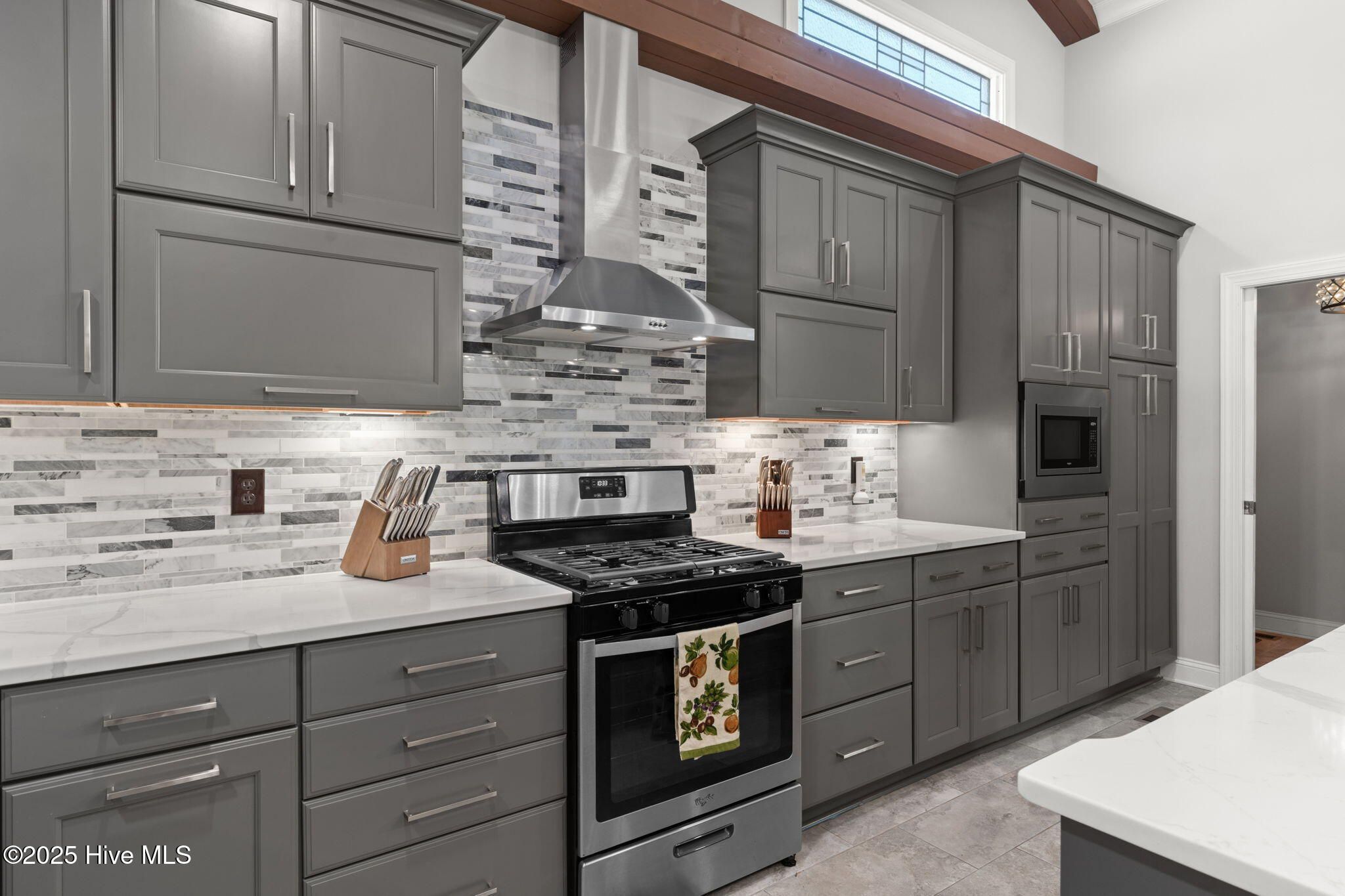 - Gas Oven, Built-In Microwave, Refrigerator, Range, Disposal, Dishwasher, Propane Water Heater, Tankless Water Heater