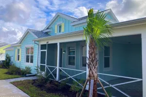 BRAND NEW CONSTRUCTION! Never lived in and turn key with a warranty; this home has it all! Welcome home to this prime location and a rare opportunity to be able to walk just a few blocks to the Latitude Margaritaville restaurants, gym, shops, open entertainment center and pool! The highlights of this tropical cottage include a two car garage, vaulted ceilings with an open concept design. The kitchen features white cabinetry, quartz countertops , Smart LG Studio Counter Depth- 3-Door- French Door refrigerator and a kitchen island (7ft x 4ft) great for bar stools and entertainment alike. Feel the openness of the living room with the high ceilings, plenty of windows throughout with natural light and being a corner cottage home, it has the privacy you need! The master bedroom features its own bathroom and walk-in closet! Also, brand new carpet and luxury laminate floors throughout the home. (Everything is brand new!) The L shape screened in porch has a combined length of 42ft with plenty of space for a garden table/chairs and potted plants. The front of the home features private sidewalks and a tiki-hut in the center of the common area. This fabulous cottage home is perfect for snowbirds, a couple who love the serenity, yet has the option to walk to all the Margaritaville entertainment! All information recorded in the MLS is intended to be accurate but cannot be guaranteed.