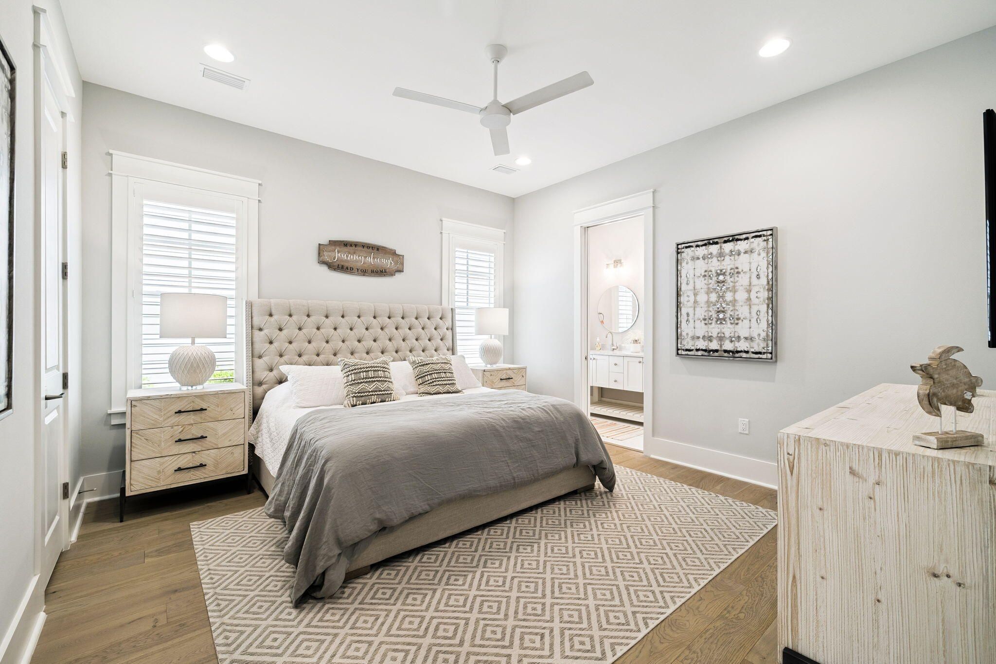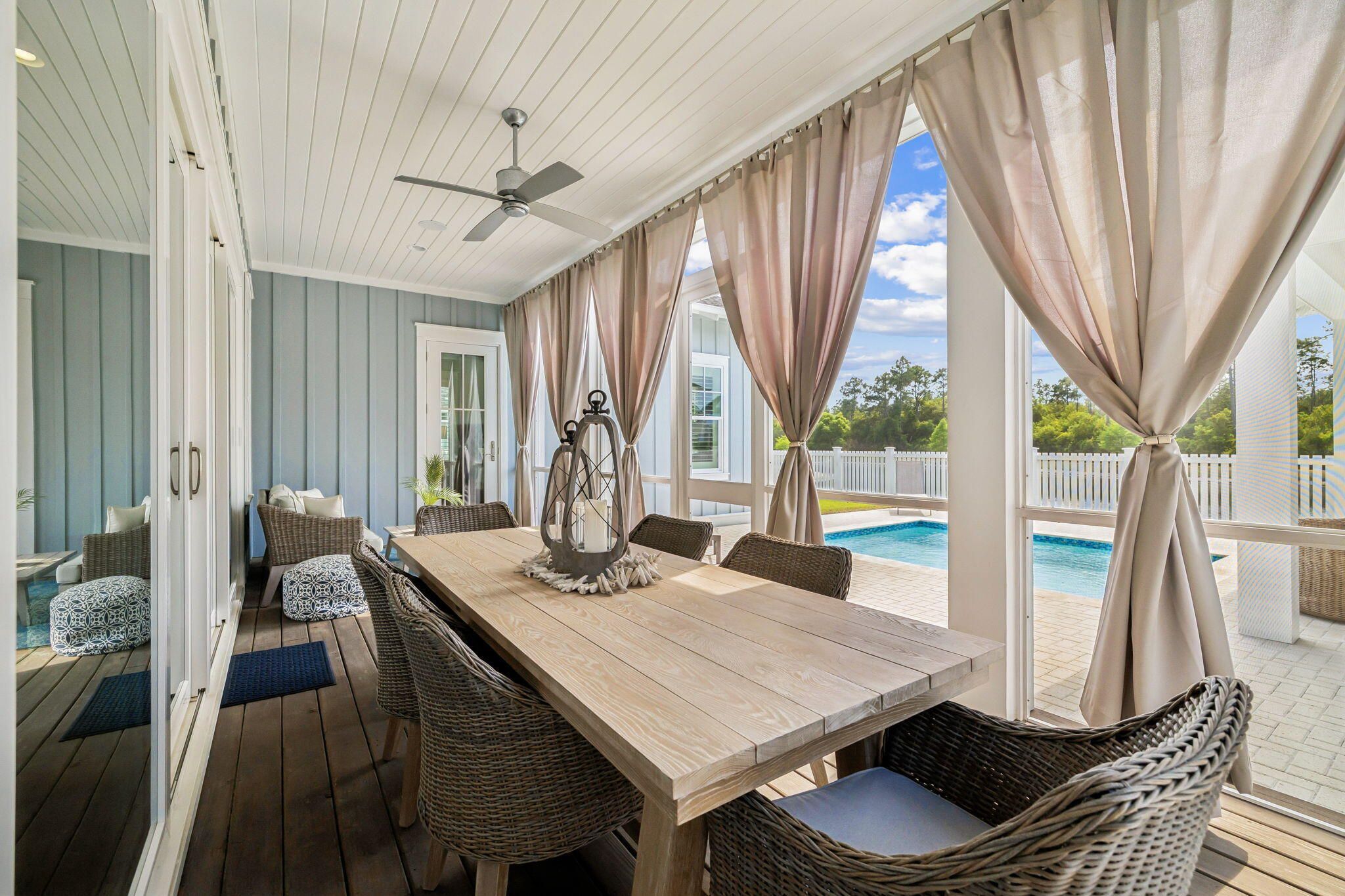 Located in Watersound Origins, 280 Log Landing Street features the sought-after Eliot plan by Romair Construction, offering 3 bedrooms, 3 bathrooms, and 2,261 square feet of thoughtfully designed single-level living. Positioned on a west-facing pond lot, the home captures beautiful sunset views and a sense of privacy that is hard to replicate. The outdoor space is a standout, designed for both relaxation and entertaining. A private heated pool and cabana with fireplace create a natural extension of the living area, while custom gutters add long-term functionality. The pond backdrop and open setting provide a clean, unobstructed view of natural surroundings and an easy, low-maintenance outdoor experience. Inside, the home is professionally decorated by K&J Design Group, elevated, and lightly lived in as a second residence. Ten-foot ceilings, a 16ft sliding door to porch, hardwood flooring, and a well-executed open layout create a comfortable flow from the main living area to the kitchen and outdoor spaces. The kitchen is equipped with upgraded quartz countertops, a Bosch appliance package including a gas range, refrigerator, and dishwasher, and a large walk-in pantry for additional storage. The primary suite offers a spacious retreat, complemented by bathrooms finished with Carrera marble countertops and quality fixtures throughout. Additional whole-home features include a comprehensive security and video system, Sonos surround, generous attic storage, and a two-car garage. Well maintained with active service contracts in place, the home presents as move-in ready and can be offered fully furnished, providing an easy transition for a second home or full-time residence. A strong combination of layout, condition, and setting makes this a standout opportunity within Watersound Origins.