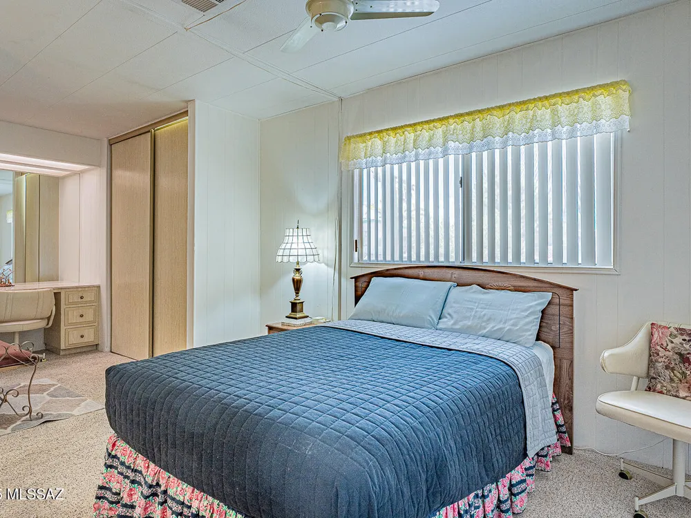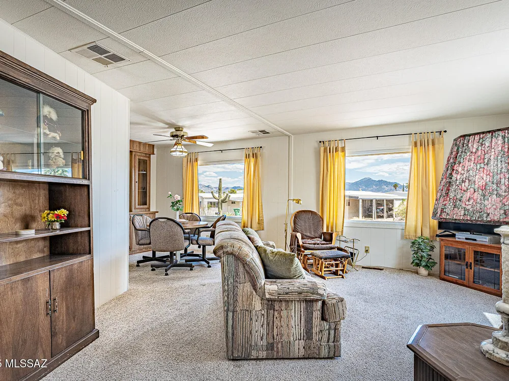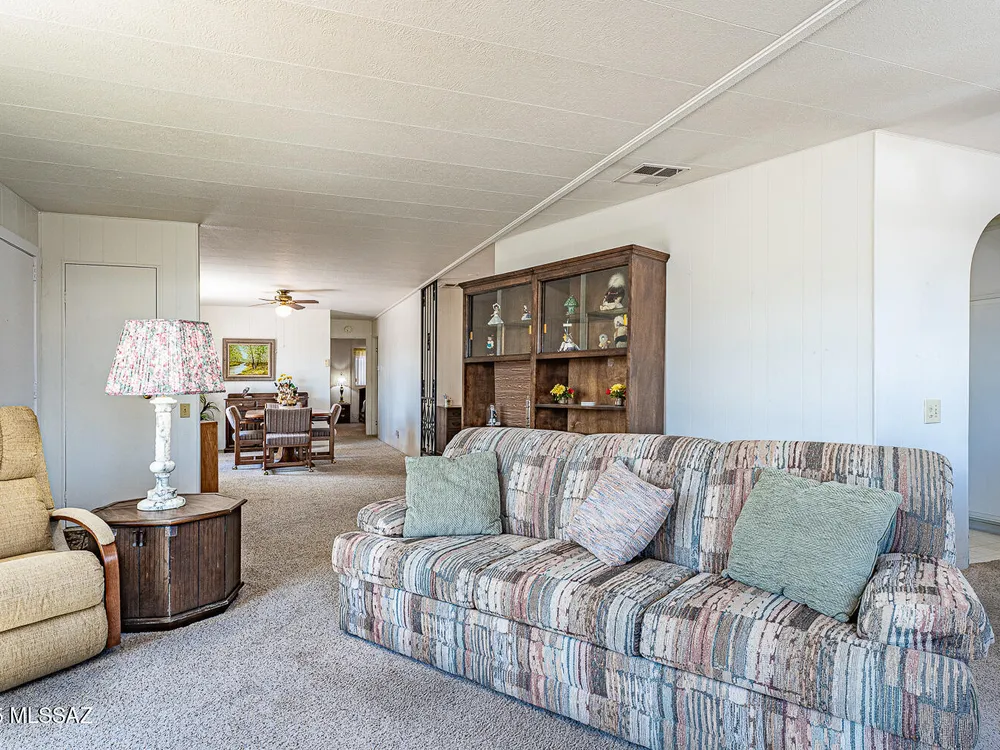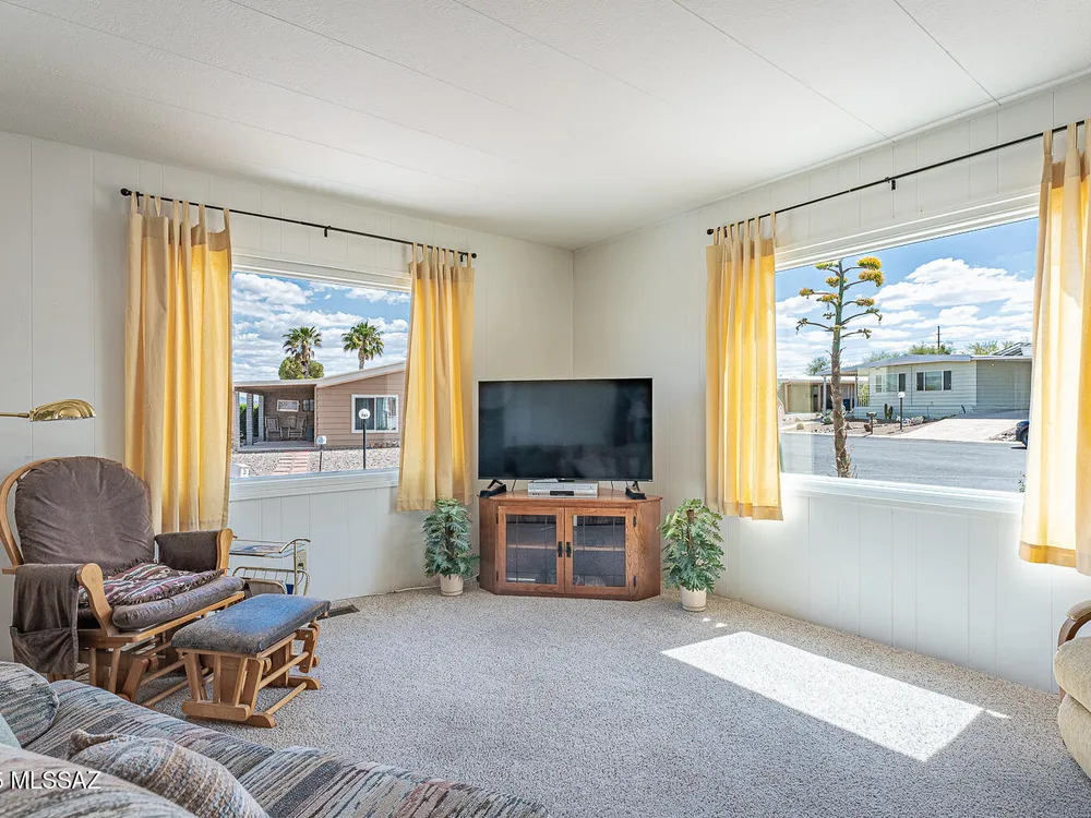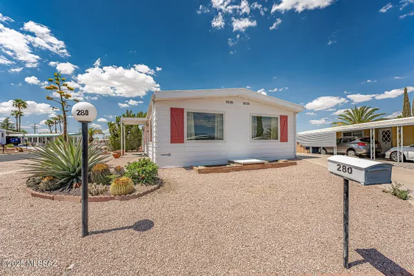This home is located on a big corner lot in Pueblo Estates with really nice curb appeal. Come on into the home and you will see that it is in great shape and obviously well-loved by the former owner. The new Anderson Windows showcase the mountain view from the living and breakfast nook area. A large great room includes a dedicated dining area for those fun neighborhood parties. The bedrooms are large and have exceptionally large closets reaching to the ceiling. The home comes fully furnished for no extra cost. A covered area outside can be used as carport or shady place to sit & enjoy the mountain view. The HOA pays for trash pickup and hosts events at the clubhouse with a pool, library, hot tub, shuffleboard & meeting room. Come visit today! Funding thru Anchor/Bill Swain. 520-975-7575.