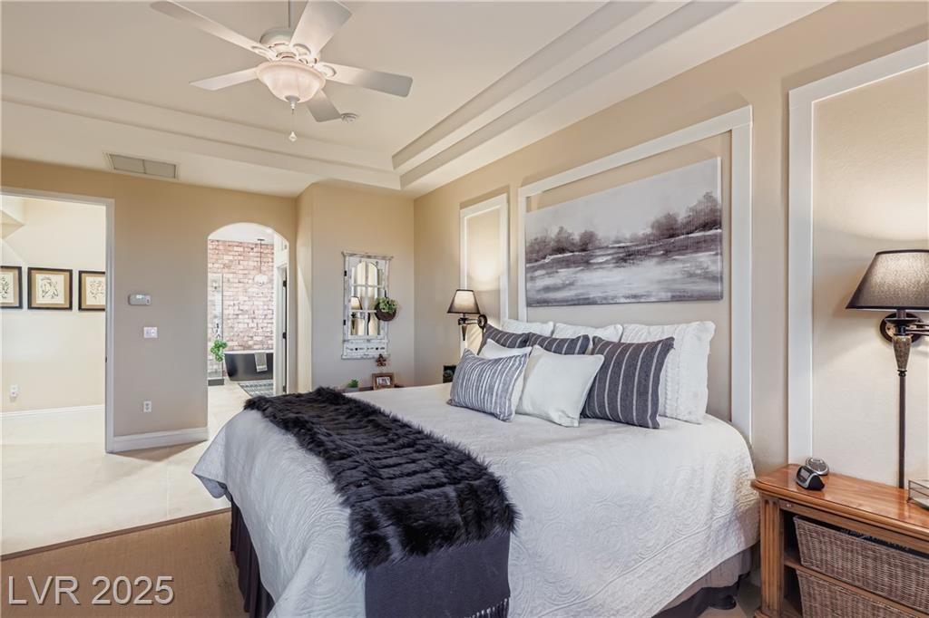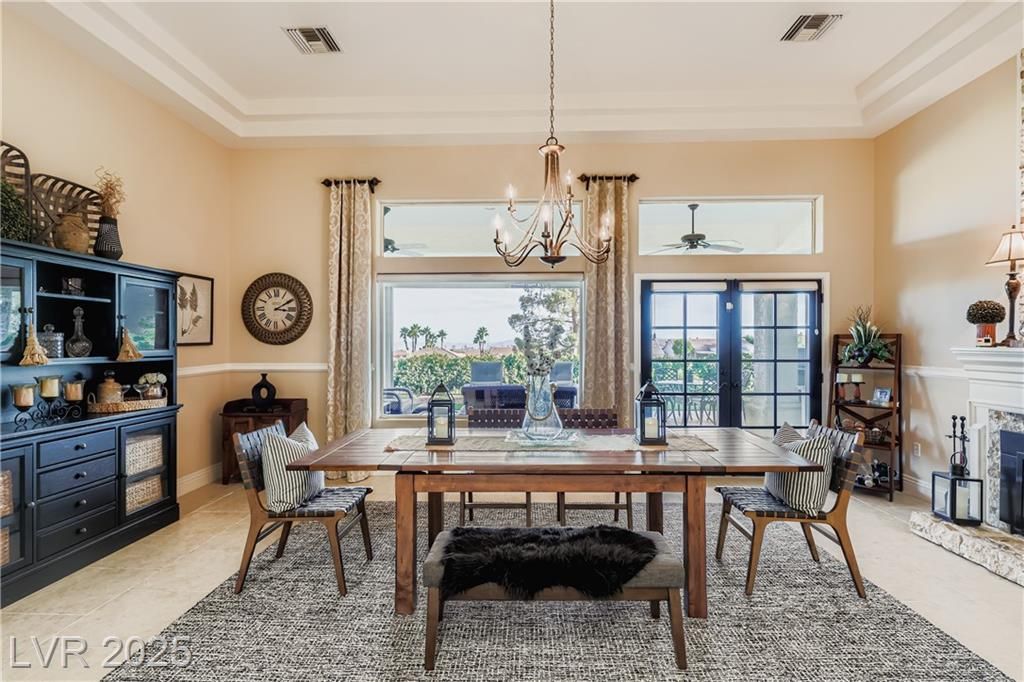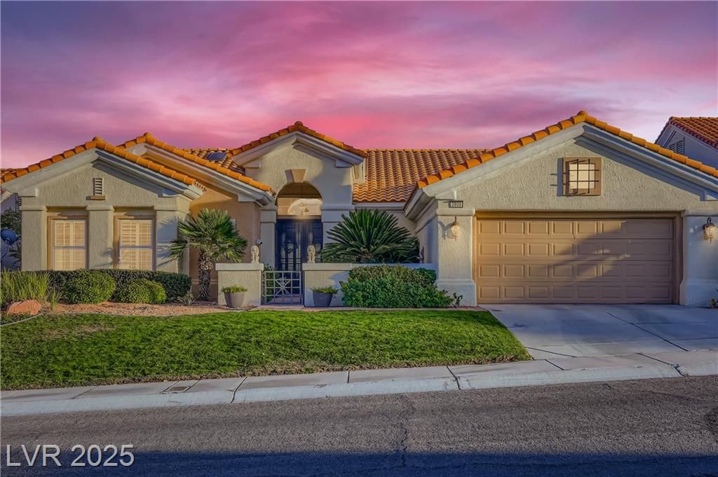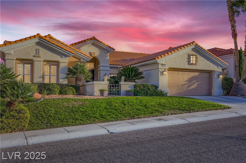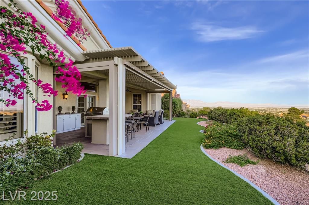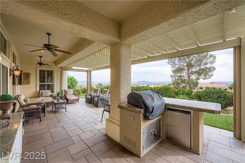 THIS ONE STORY HOME IS SITUATED IN THE AGE RESTICTED COMMUNITY OF SUN CITY SUMMERLIN. LIVE ON TOP OF THE WORLD WITH A PANORAMIC VIEW OF SUNRISE AND NEW YEARS EVE FIREWORKS! ENTER THROUGH GATED COURTYARD WITH LUSH LANDSCAPING AND WATER FOUNTAIN. FRONT ENTRY HAS DOUBLE SECURITY DOORS ANDGLASS PANE WOOD DOORS. FORMAL DINING ROOM WITH DOUBLE FRENCH DOORS AND ELECTRIC FIREPLACE WITH STONE WALL. UPGRADED KITCHEN WITH BUILT IN SUB-ZERO REFRIGERATOR, STAINLESS STEEL APPLIANCES, 2-SIDED GRANITE COMPOST SINK WITH PULL DOWM FAUCET, GRANITE COUNTERTOPS WITH SEPARETE BAR REFRIGERATOR, TRASH COMPACTOR, RECESSED LIGHTING. KITCHEN CABINETS W/PULL OUT SELVES. FAMILY ROOM AND PRIME BEDROOM HAVE BUILT IN STORAGE BENCH UNDER BAY WINDOWS. DOUBLE PRIME BEDROOMS SEPARATEDFROM EACH OTHER. PRIME BATH HAS FREE-STANDING TUB WITH WALL OF PORCELAIN BRICK LOOK TILE AND LEATHER LOOK GRANITE COUNTERTOP. EVERY CLOSET HAS BUILTIN SELVES FOR STORAGE.