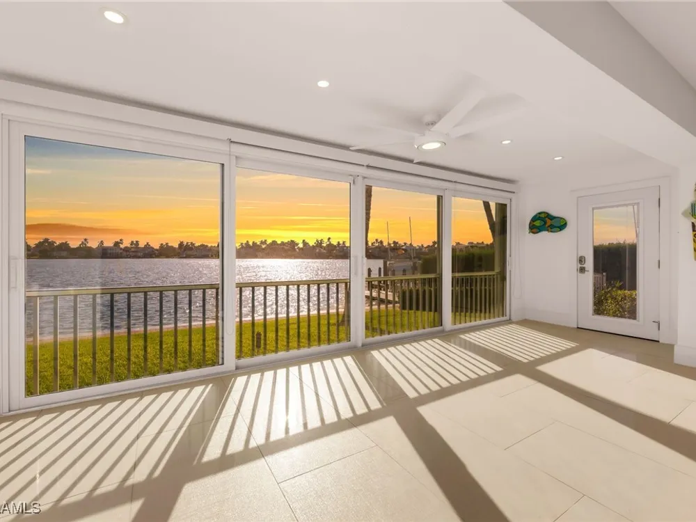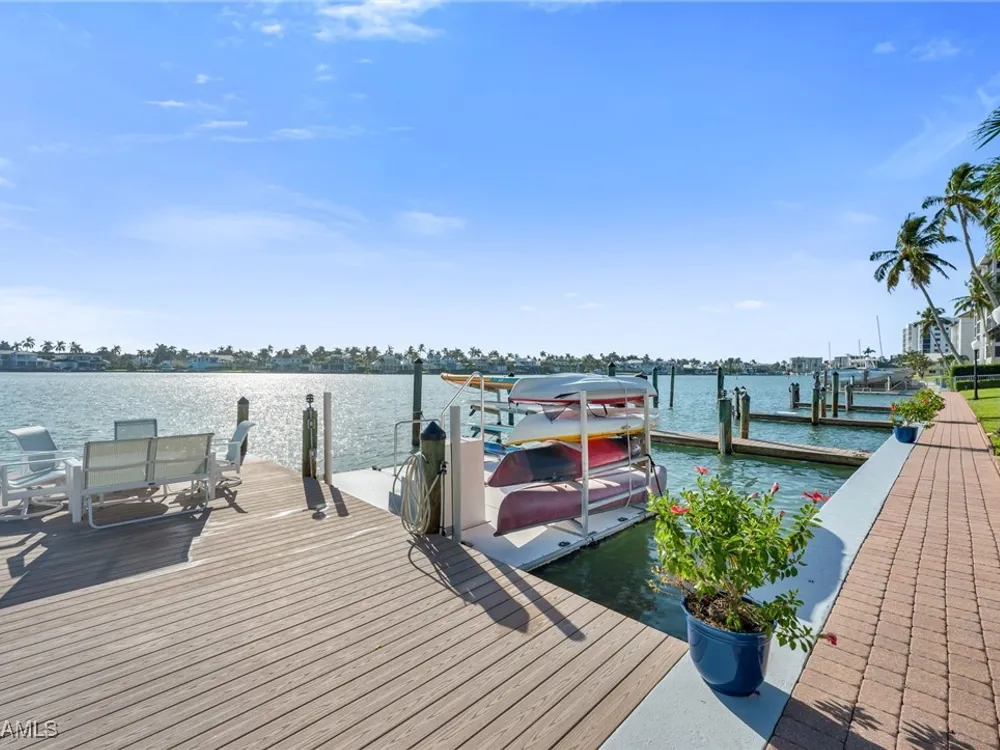 Large dogs welcome! This freshly remodeled, move-in-ready home offers over $340K in high-end renovations, including hurricane glass and flood barriers for peace of mind. Enjoy available large boat slips (30' - 45') and a kayak launch with no bridge to the Gulf, just ¼ mile north of Doctors Pass. Wake up to unobstructed Moorings Bay views, where dolphins play outside your lanai sliders and sunrises light up the water. Inside, discover a custom kitchen with top-tier appliances, a versatile second bedroom with a king-size Murphy bed, and elegant finishes throughout. Relax by the 51’ saltwater pool, stroll to Miramar Beach access across the street, and enjoy the friendly, small community vibe. Close to Venetian Village and downtown Naples, this home combines modern safety, comfort, and coastal charm—a rare opportunity to live the Naples lifestyle right on the bay.