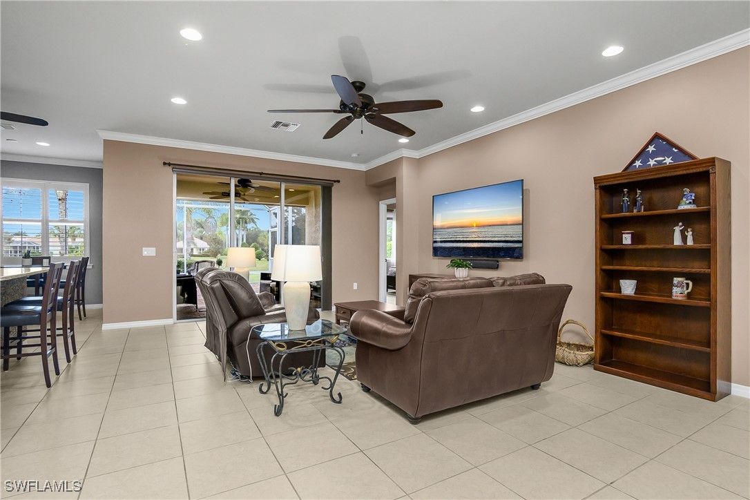 Welcome home to this beautifully upgraded Vernon Hill floor plan in the amenity rich community of Village Walk of Bonita Springs, perfectly positioned on a private corner west-facing lakefront lot where you can relax on your extended lanai and enjoy breathtaking sunset views. Thoughtful upgrades are found throughout, starting with the kitchen featuring granite countertops, tile backsplash, stone-accented bar, a plantation shutter in the eat in kitchen, and a built-in desk, making it as functional as it is inviting. This home offers a bright, open feel with crown molding in the main living areas, recessed lighting, a glass-insert front door, and light tile flooring throughout main living areas and complemented by luxury vinyl plank flooring in all bedrooms—no carpet. Both the primary and guest baths feature custom tile and glass walk-in showers, while the primary suite includes a barn-door style entry to the bathroom and a spacious walk-in closet, offering exceptional storage and convenience. Additional highlights include a fresh exterior paint (2024), an epoxy-coated garage floor, electric storm shutters on the lanai, and manual shutters for the remainder of the home. Village Walk of Bonita Springs, a 24 hr guard-gated community, is a resort-style community known for its vibrant social scene and full-time lifestyle director. HOA fees include lawn care, irrigation, cable, and internet, allowing you to truly enjoy a maintenance-free lifestyle. The picturesque lakefront town center offers a restaurant, resort-style pool and lap pool, state of the art fitness center, tennis, pickle ball, bocce, basketball, kid's playground, gas station, ice cream parlor, bagel shop, salon, and touch less car wash. Village Walk was designed for connection and outdoor living, with miles of scenic walking paths, lakes, butterfly park, and charming pedestrian bridges. Just across the street, Crew Flint Pen Strand Trails provide 1,500 acres of preserved nature with walking, biking, and equestrian trails. Ideally located only 4 miles to I-75, 20 minutes to RSW Airport, 25 minutes to Bonita Springs's beautiful beaches, and minutes from the upcoming Midtown Bonita shopping and dining destination.