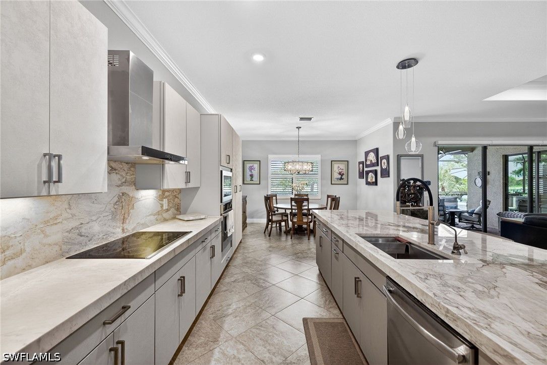 Impressive Summerville floor plan offering 3 bedrooms plus a den, 3 baths, enhanced with over $100,000 in upgrades and improvements—creating a truly move-in ready, elevated living experience. From the moment you enter, the home showcases quality craftsmanship and thoughtful design throughout. The kitchen has been beautifully transformed with an expanded island, striking hard marble countertops, upgraded cabinetry, new induction cooktop, and a premium LG refrigerator—serving as both a functional workspace and stunning focal point. The upgrades continue throughout the home with updated custom cabinetry, sinks, plumbing fixtures and countertops in all bathrooms, a redesigned laundry room with new cabinetry and appliances, upgraded lighting and MinkaAire fans throughout the home, added recessed lighting, and plantation shutters on every window. The spacious primary suite features dual walk-in closets, offering both functionality and generous storage. Designed for both comfort and peace of mind, the home includes a whole house Generac generator, roll-down hurricane shutters, surge protection, and a full security system with cameras and alarms. Additional features include an epoxied 3-car garage floor with built-in storage and a well-appointed outdoor kitchen with a Bull gas grill—perfect for entertaining. Enjoy ideal western exposure with breathtaking sunset views from your lanai, offering the perfect setting to unwind at the end of the day. Located in Bonita National with a social membership included in the HOA fee, residents experience resort-style living at its finest with a stunning resort pool, multiple dining options, state-of-the-art fitness center, tennis courts, membership approved bocci and pickle ball courts awaiting final government approval and a championship golf course located in the community. This is an exceptional opportunity to own a highly upgraded home in one of Southwest Florida’s most sought-after communities. A refined lifestyle awaits-be sure to experience the video and immersive 3D tour; this is an offering not to be missed.